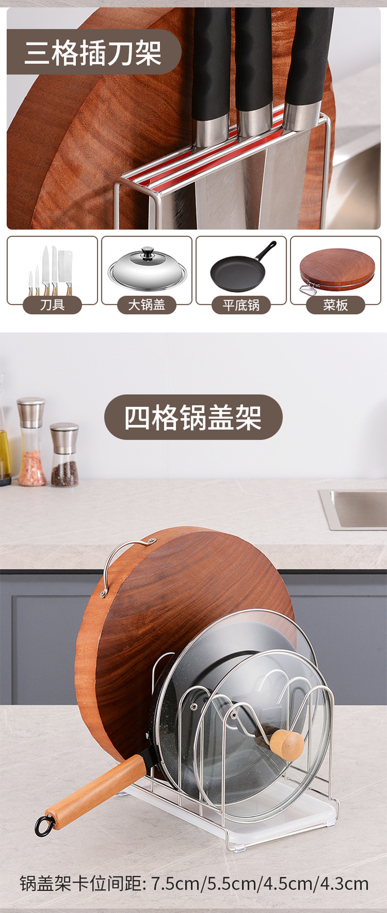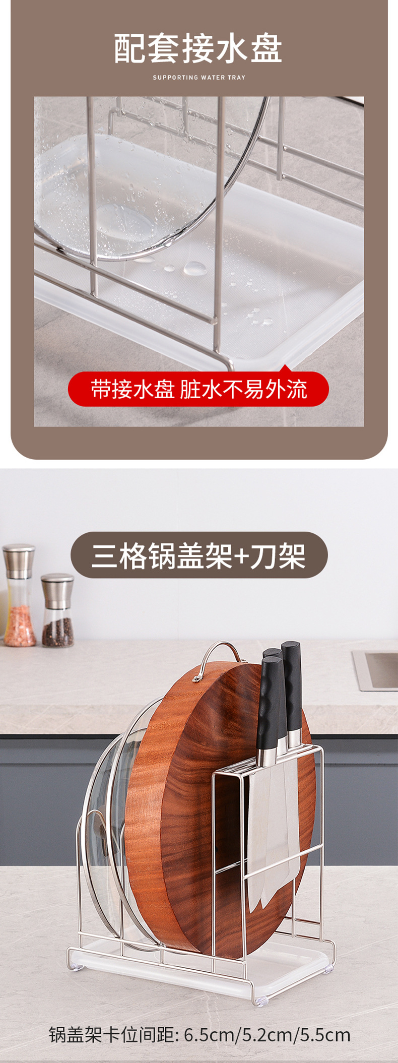 스테인레스 스틸 냄비 뚜껑 랙 주방 냄비 뚜껑 배치기 다기능 나이프 커팅 보드 다기능 스토리지 랙