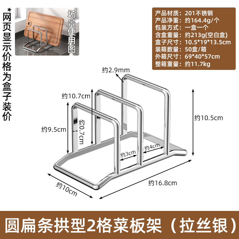 • 원형 납작 아치형 2단 도마 거치대 (헤어라인 실버) 박스 포장