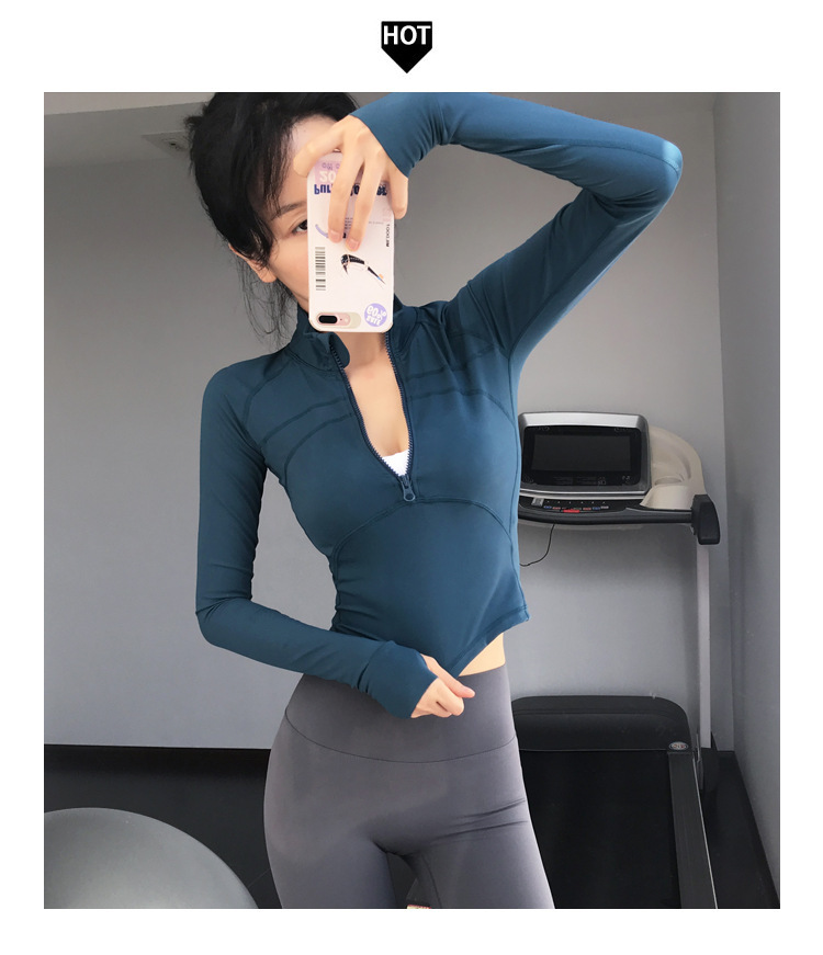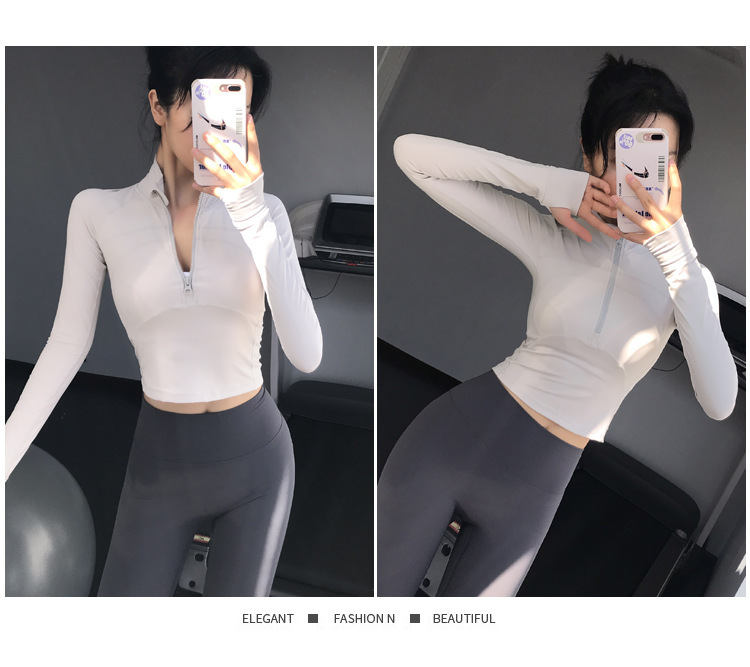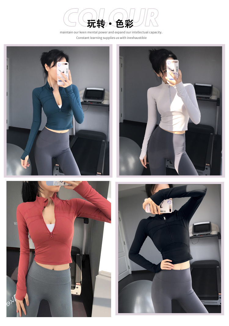 2025 반지퍼 스트레이트 숄더 슬림핏 스포츠 탑 크롭탑 타이트 러닝 속건성 신축성 요가복 피트니스 긴팔