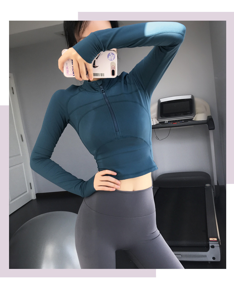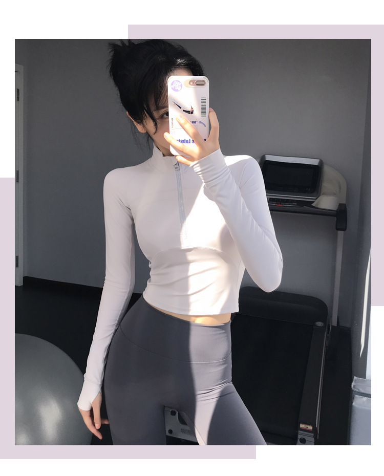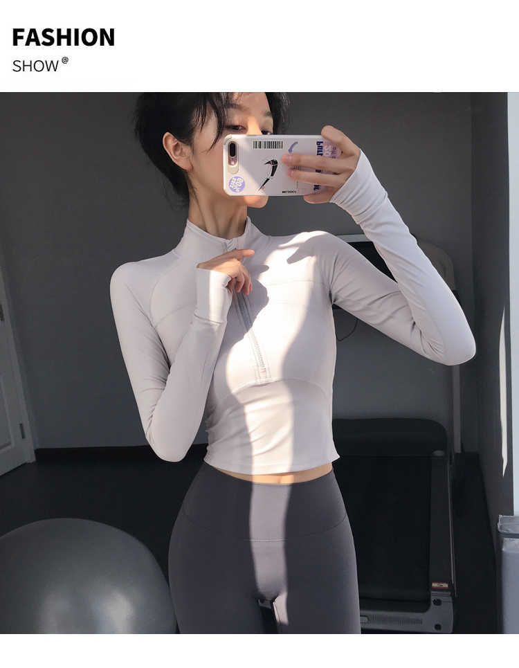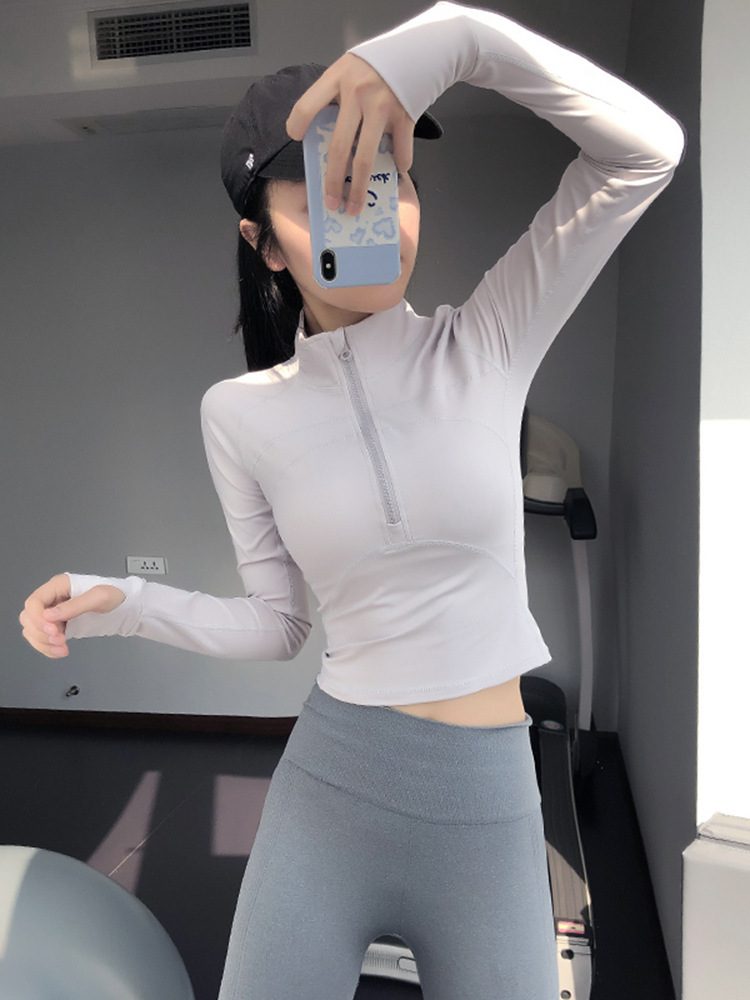 2025 반지퍼 스트레이트 숄더 슬림핏 스포츠 탑 크롭탑 타이트 러닝 속건성 신축성 요가복 피트니스 긴팔스토어 가기