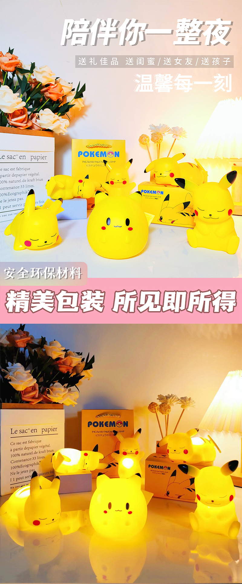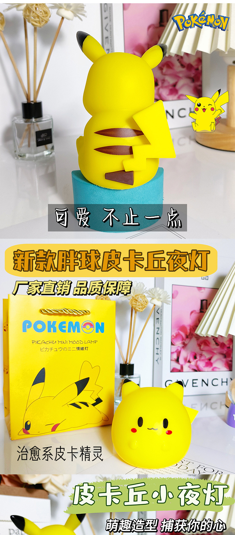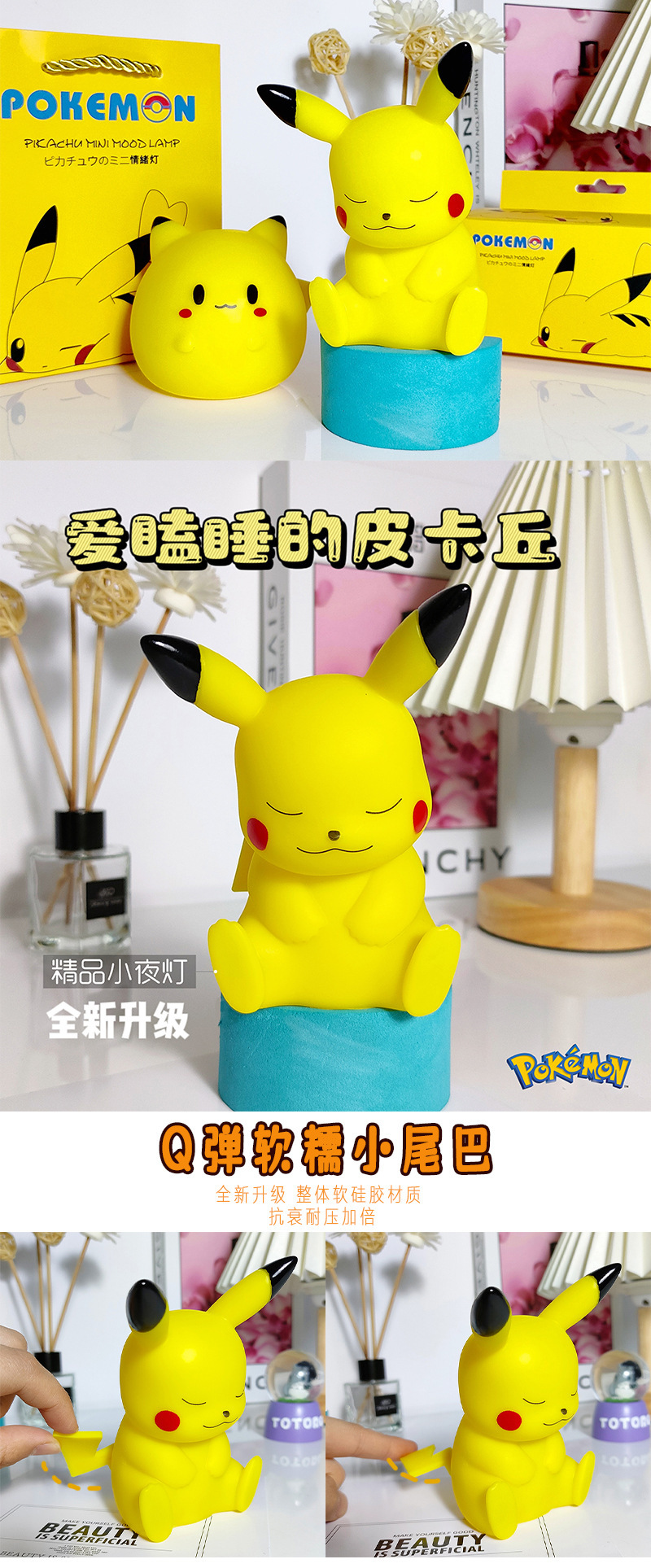 인기 테이블 램프 피카츄 무드등 고급 미니 무드등 침실 침대 옆 램프 선물 장식품 해외 직구