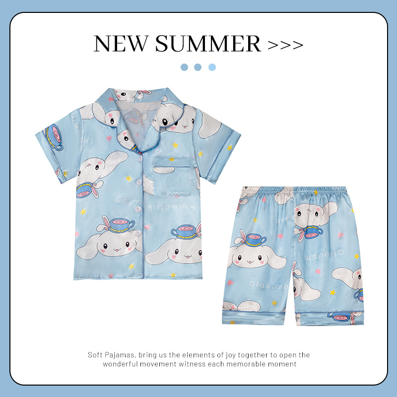 어린이 얼음 실크 잠옷 소녀 여름 반팔 실크 얇은 큰 어린이 소녀 공주 에어컨 홈 세트