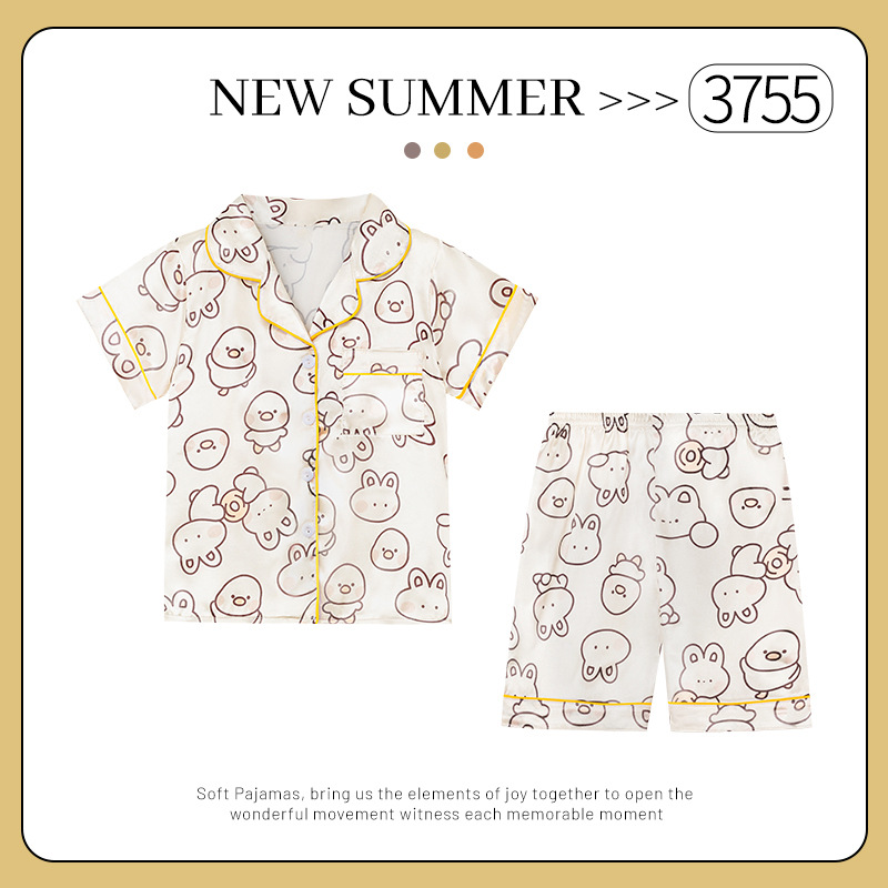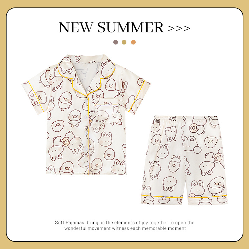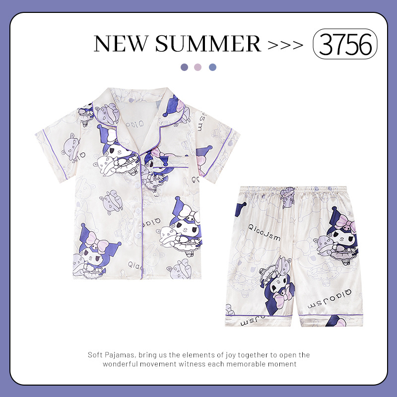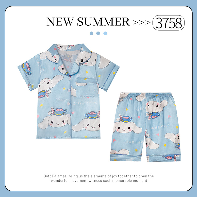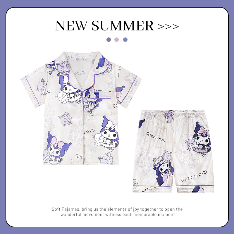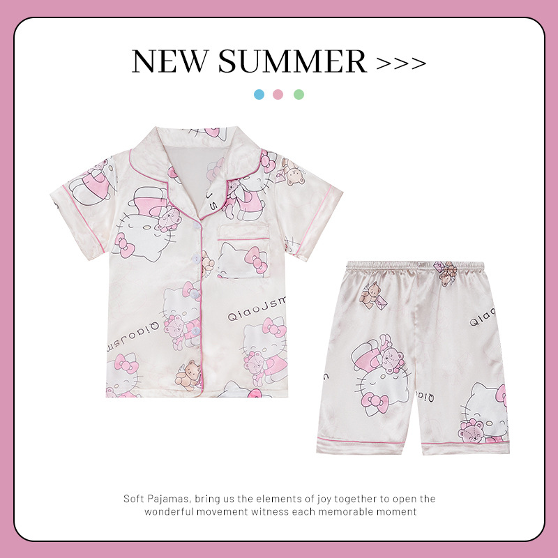 어린이 얼음 실크 잠옷 소녀 여름 반팔 실크 얇은 큰 어린이 소녀 공주 에어컨 홈 세트스토어 가기