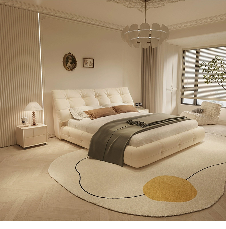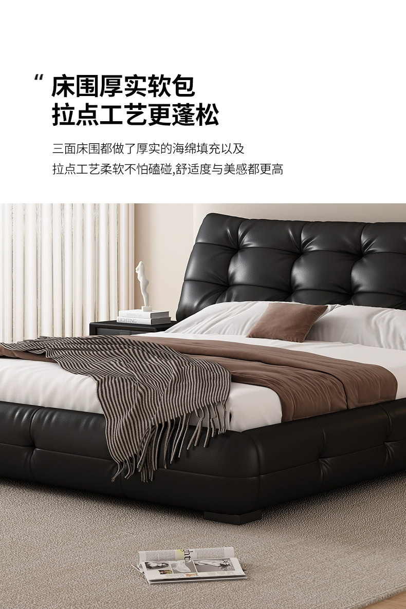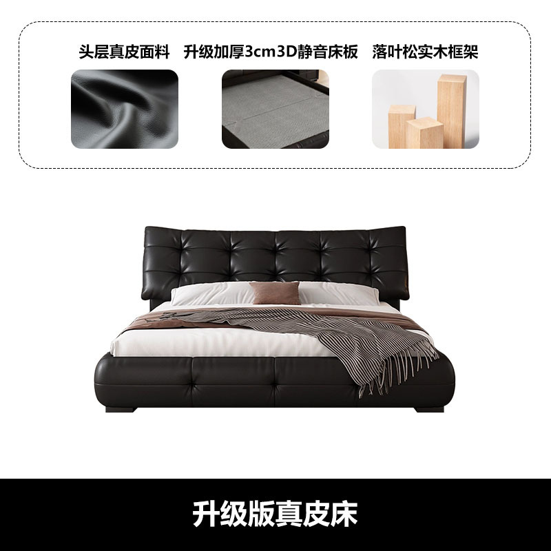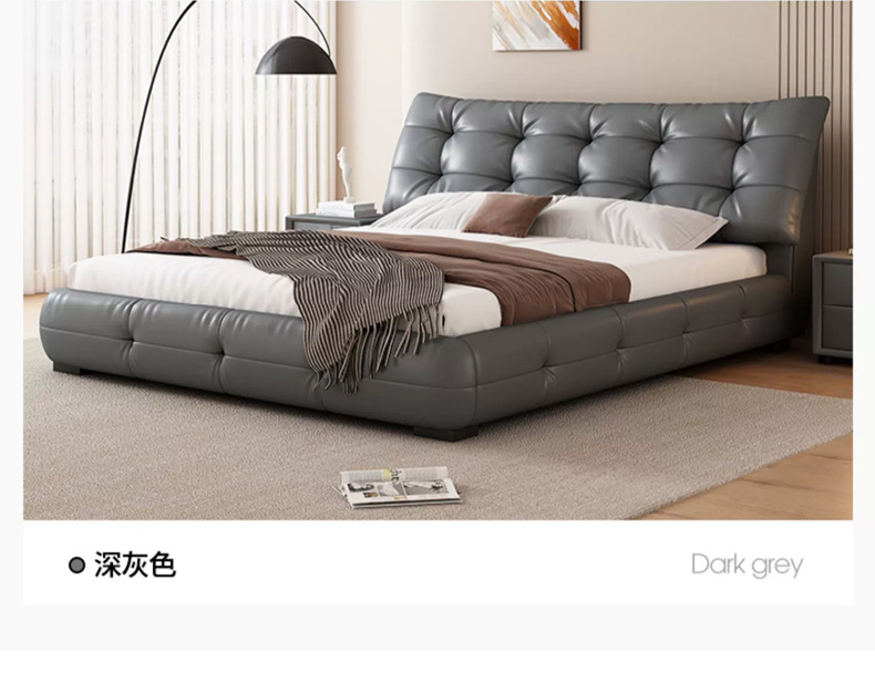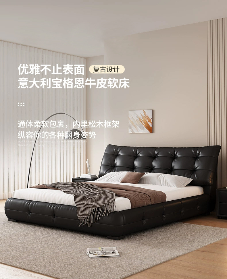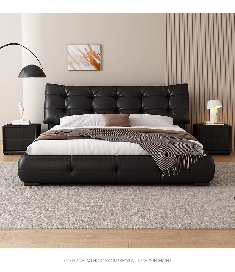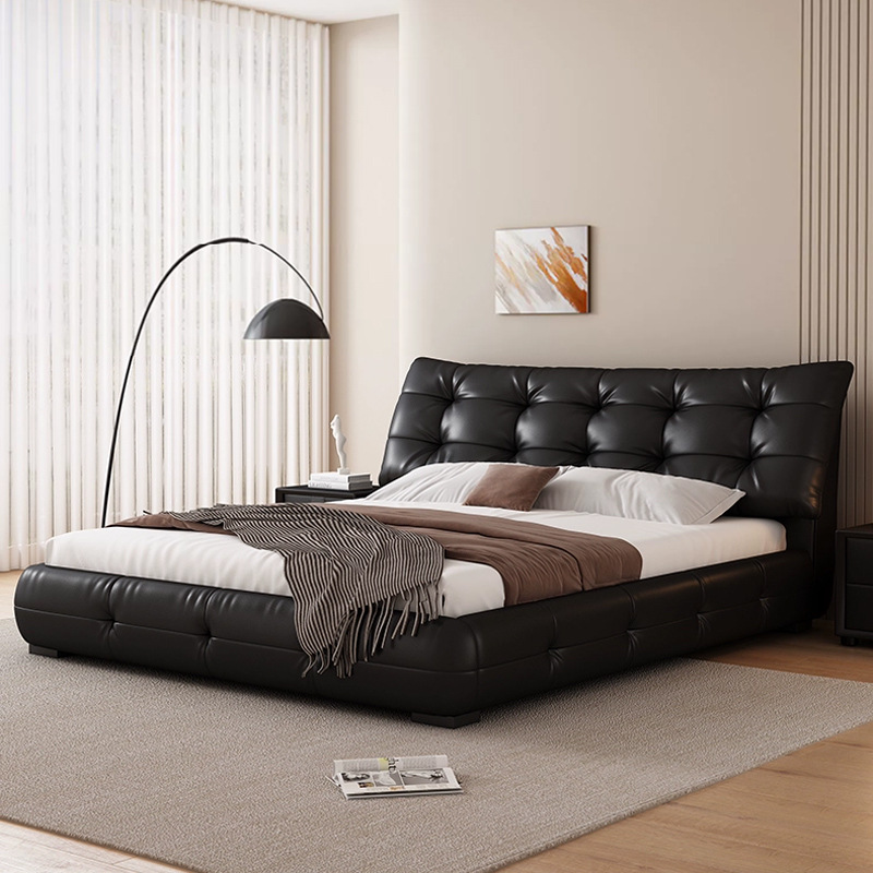 가죽 침대 현대 간단한 퍼프 더블 침대 헤드 레이어 Cowhide 이탈리아 스타일 미니멀리스트 바닥 보관 소프트 백 마스터 침실 침대