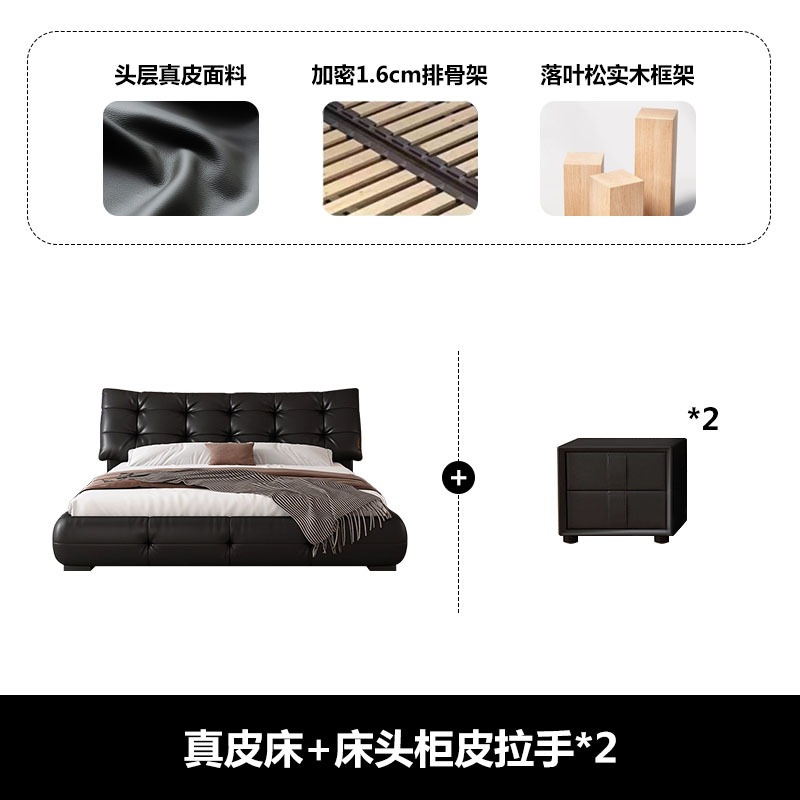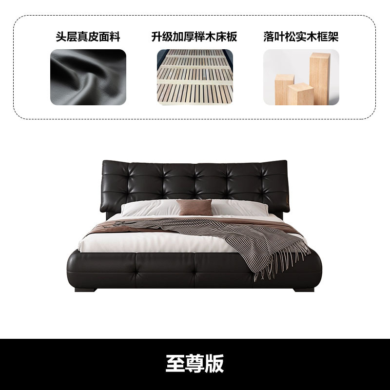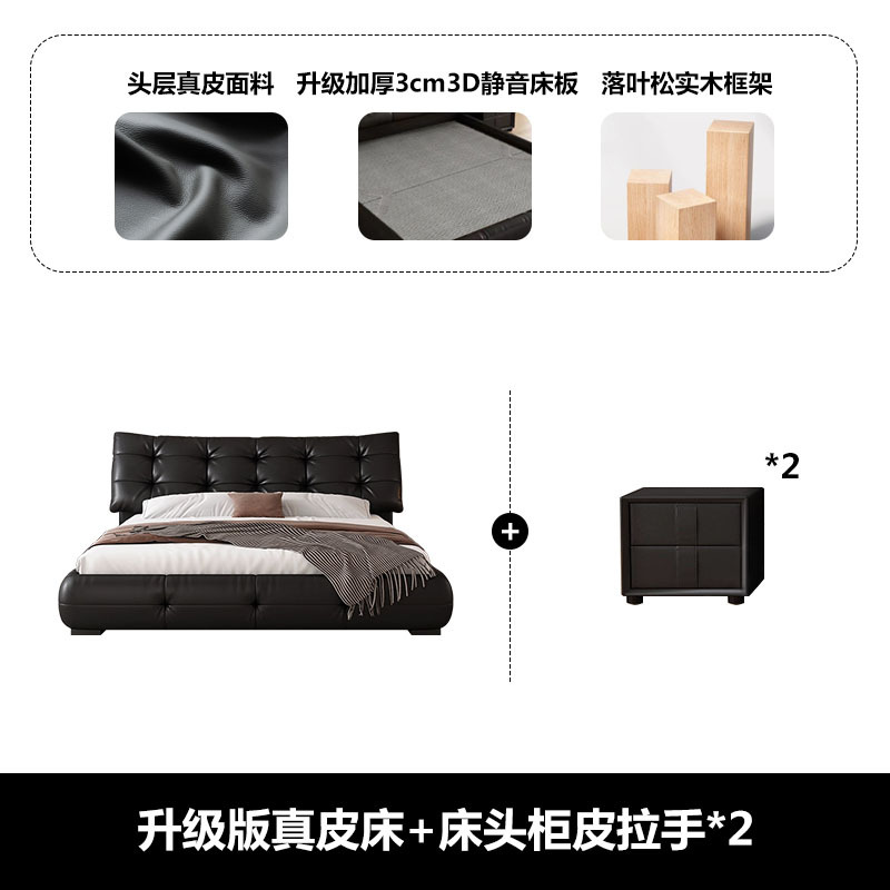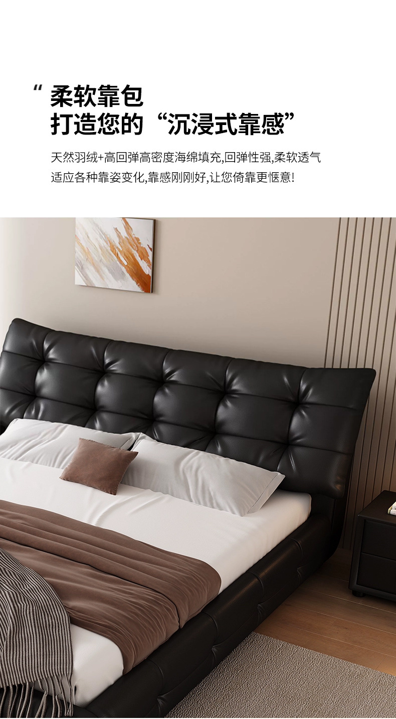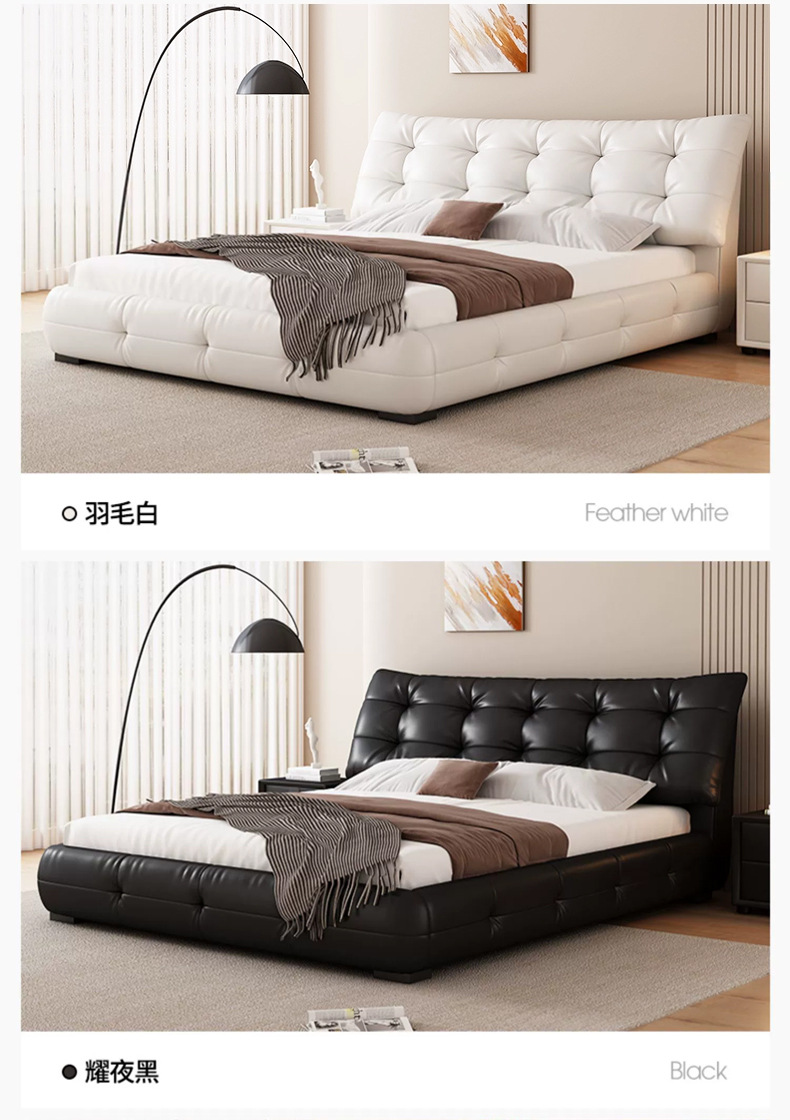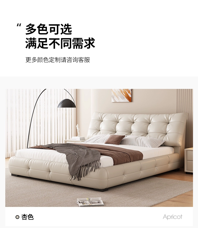 가죽 침대 현대 간단한 퍼프 더블 침대 헤드 레이어 Cowhide 이탈리아 스타일 미니멀리스트 바닥 보관 소프트 백 마스터 침실 침대