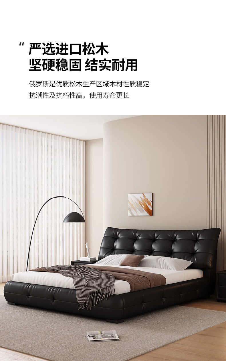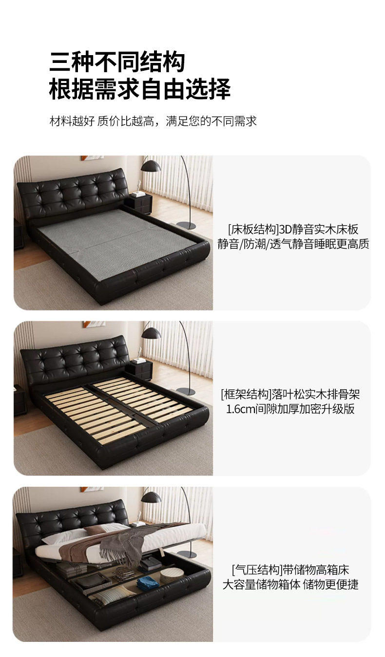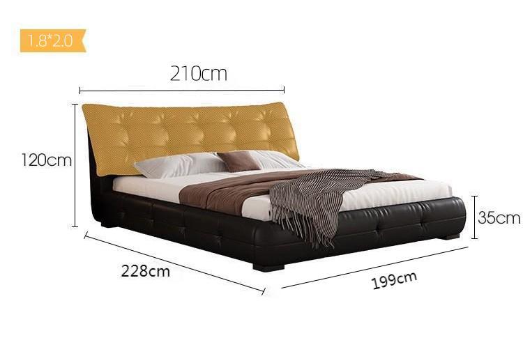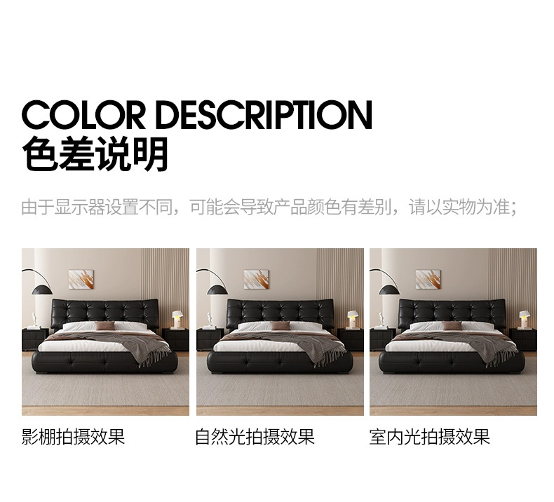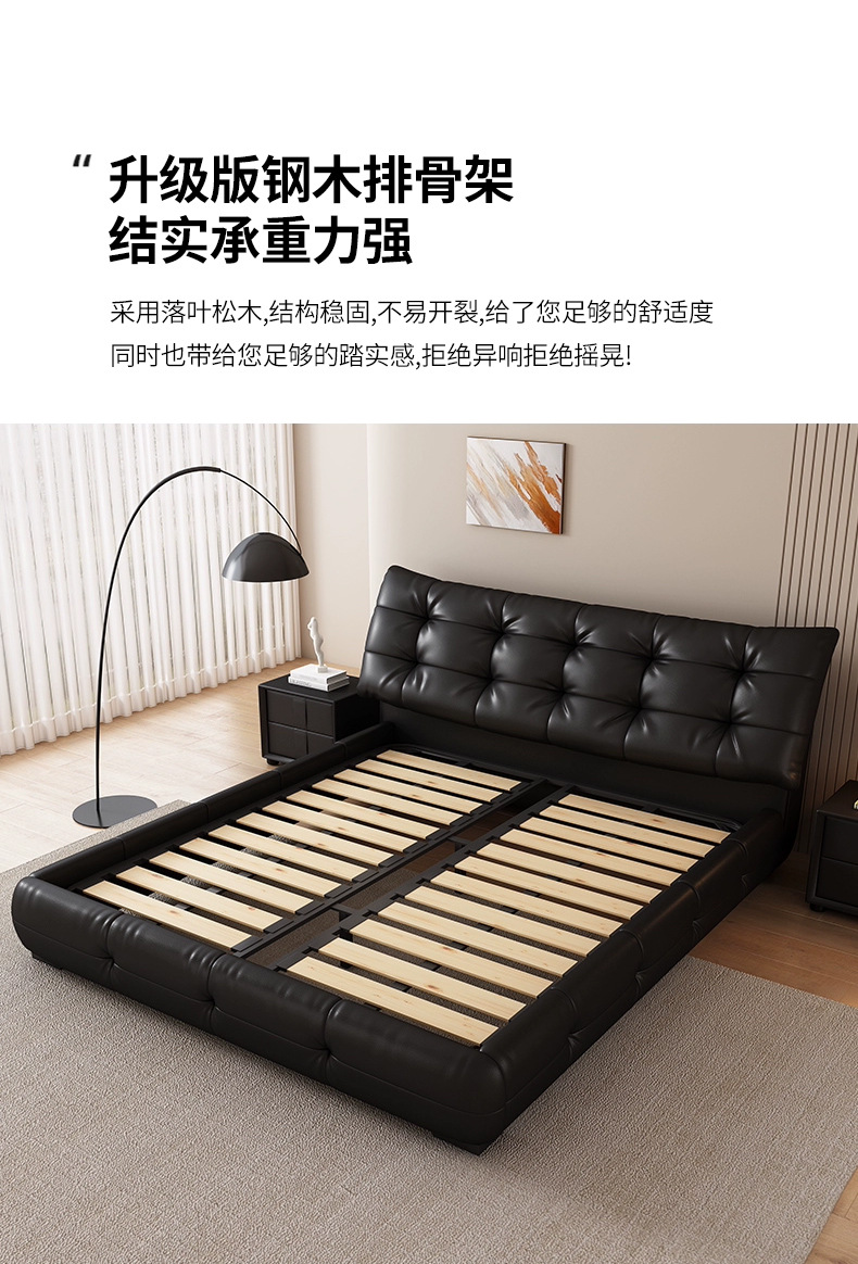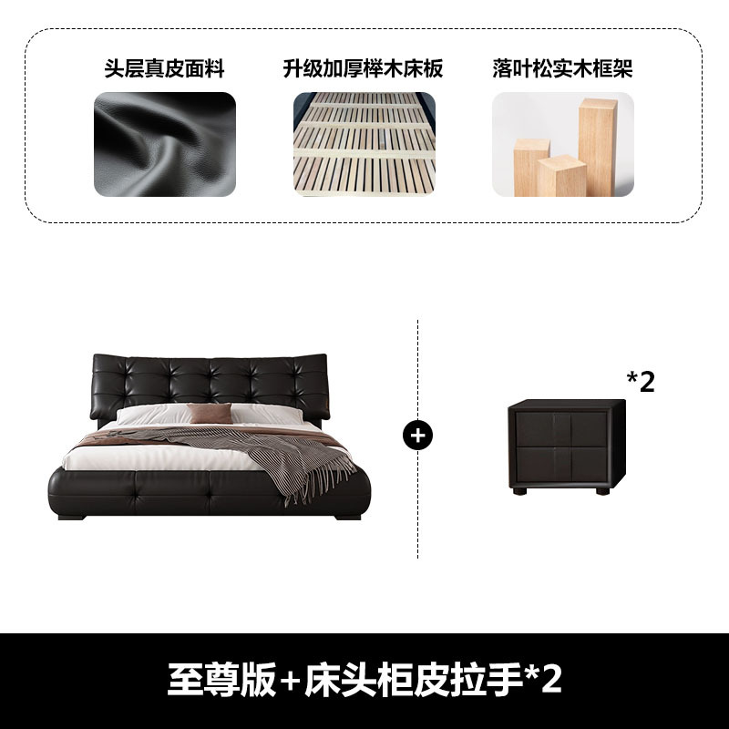 가죽 침대 현대 간단한 퍼프 더블 침대 헤드 레이어 Cowhide 이탈리아 스타일 미니멀리스트 바닥 보관 소프트 백 마스터 침실 침대