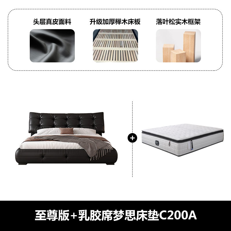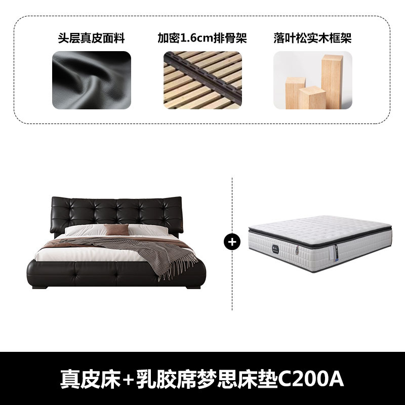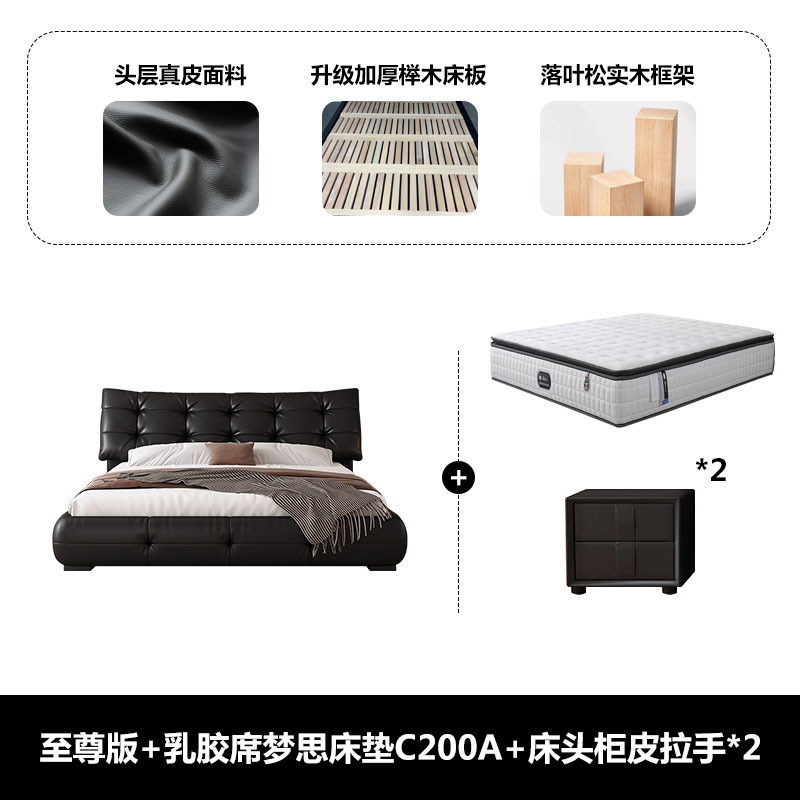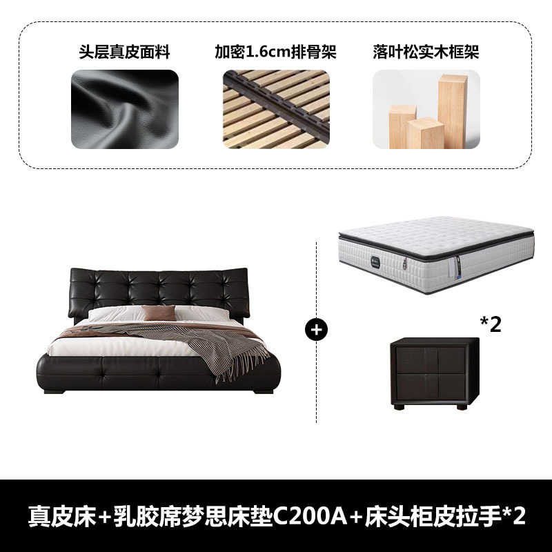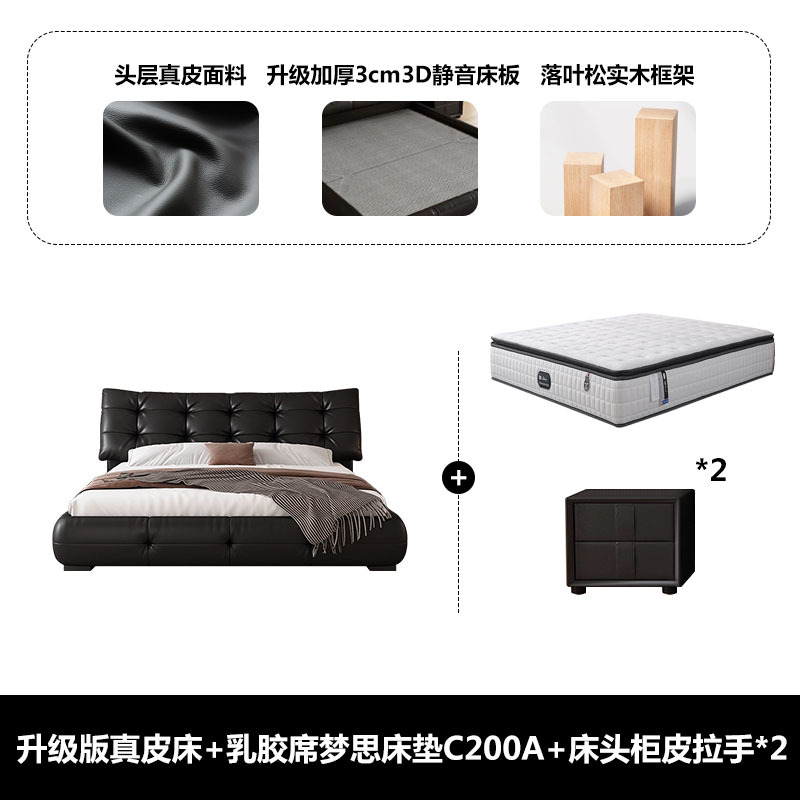 • 가죽 침대 {업그레이드된 두꺼운 암호화 간격 1.6cm 행 프레임} + 라텍스 시몬스 매트리스 C200A + 캐비닛 가죽 손잡이 2개