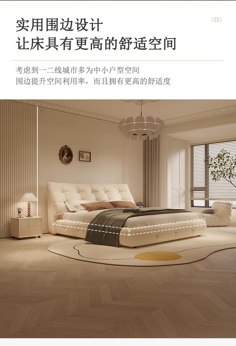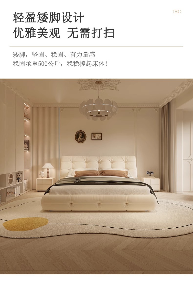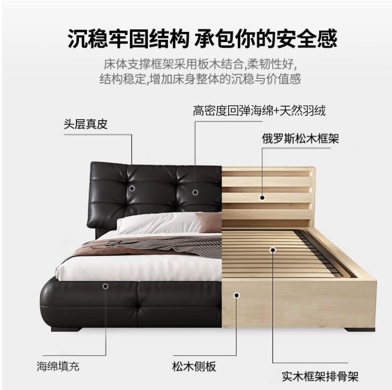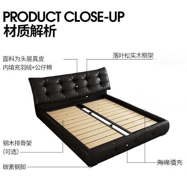 가죽 침대 현대 간단한 퍼프 더블 침대 헤드 레이어 Cowhide 이탈리아 스타일 미니멀리스트 바닥 보관 소프트 백 마스터 침실 침대스토어 가기