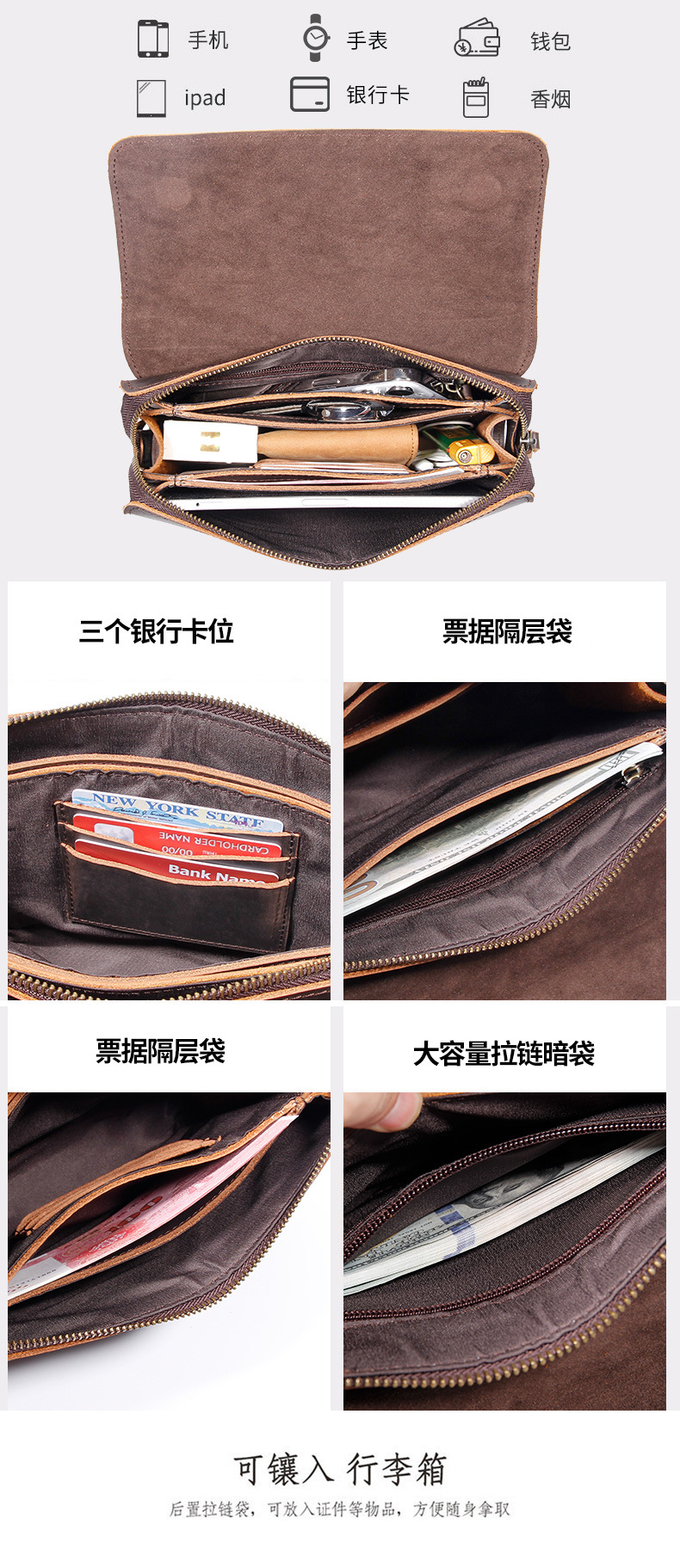 2025년 신형 1층 소가죽 남성 클러치백 천연 가죽 남성용 1층 소가죽 클러치백스토어 가기
