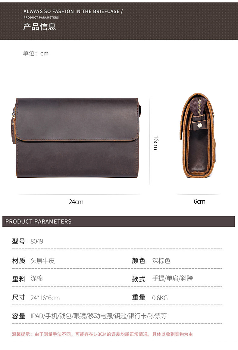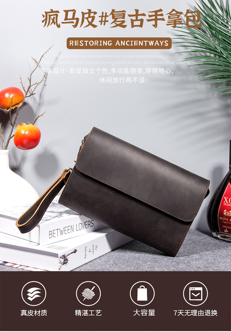 2025년 신형 1층 소가죽 남성 클러치백 천연 가죽 남성용 1층 소가죽 클러치백