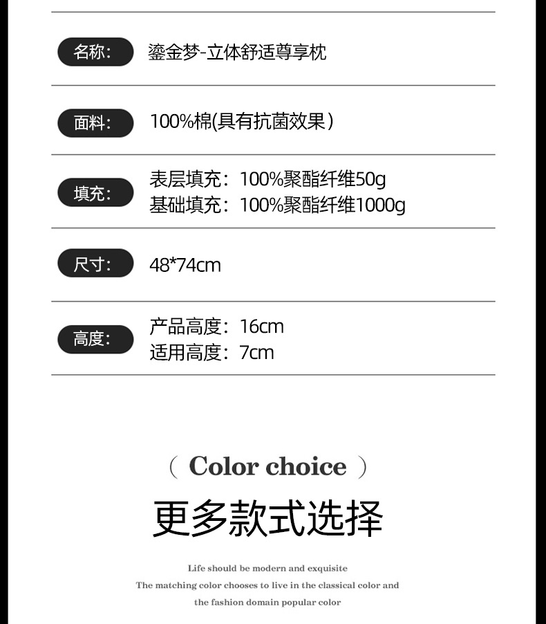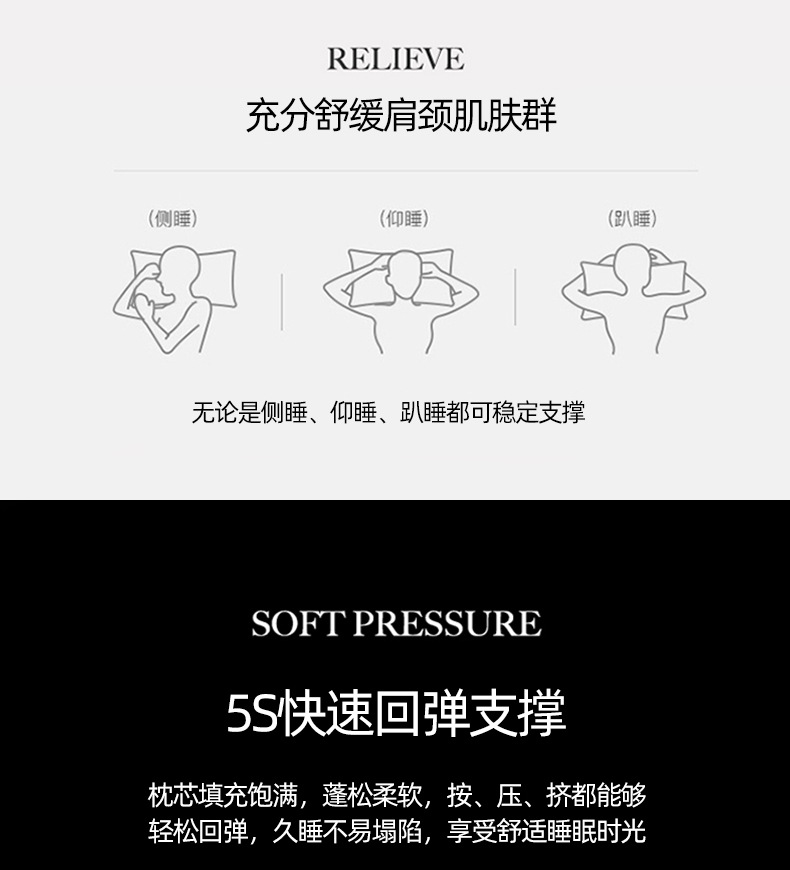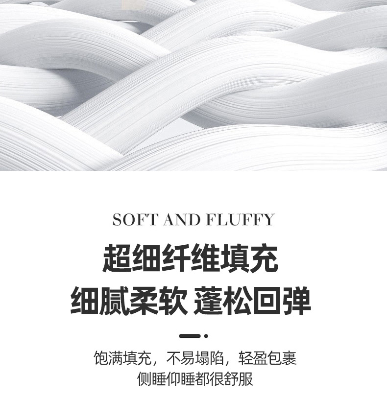 枕芯采用高端定制面料 面料本身通过特殊工艺织出特殊纹路 颜值高端大气 面料极度柔软 配合超细纤维的填充 让你仿佛置身云端 享受睡眠