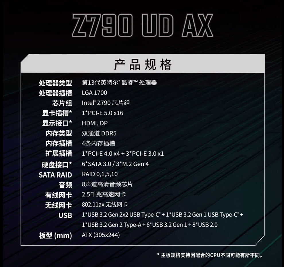 Jijia Z790 UD AX 데스크탑 컴퓨터 게임 마더보드 D5 13 세대 CPU 13600KF/13700K
