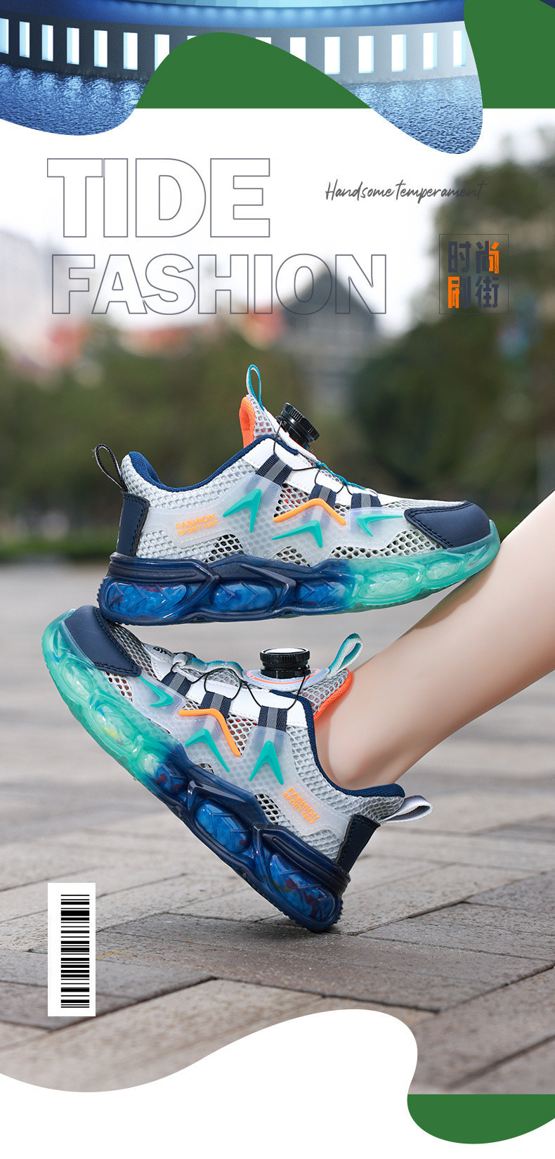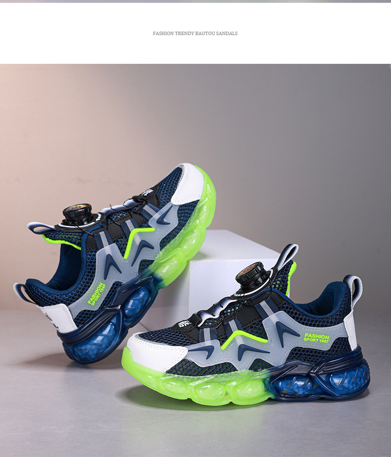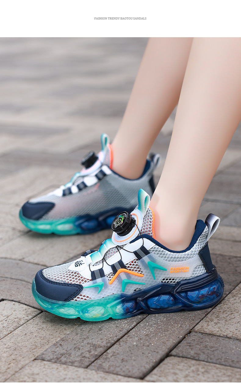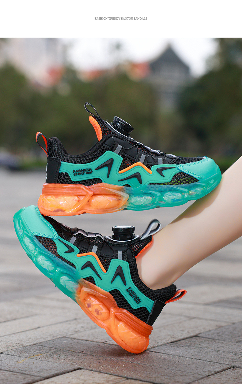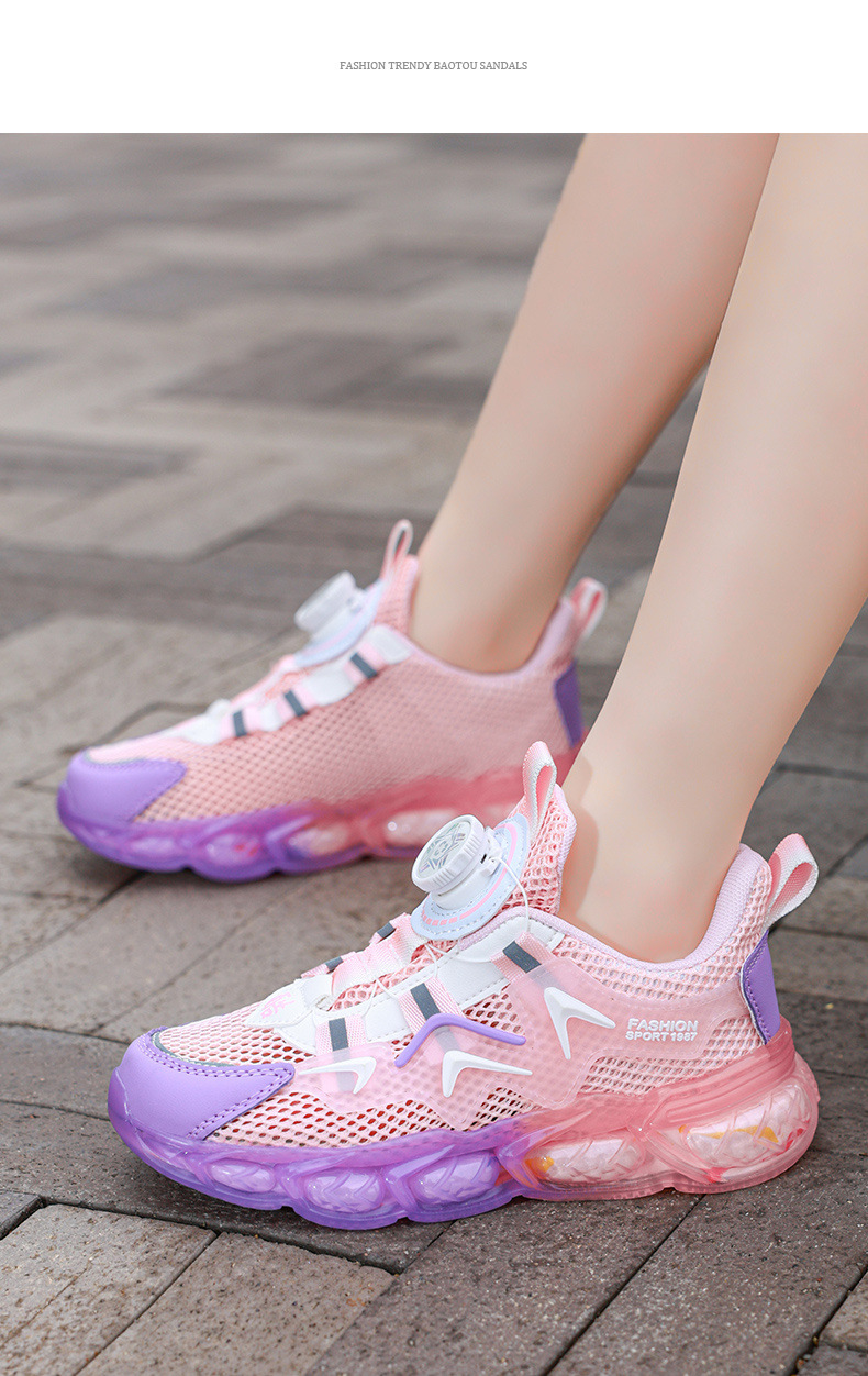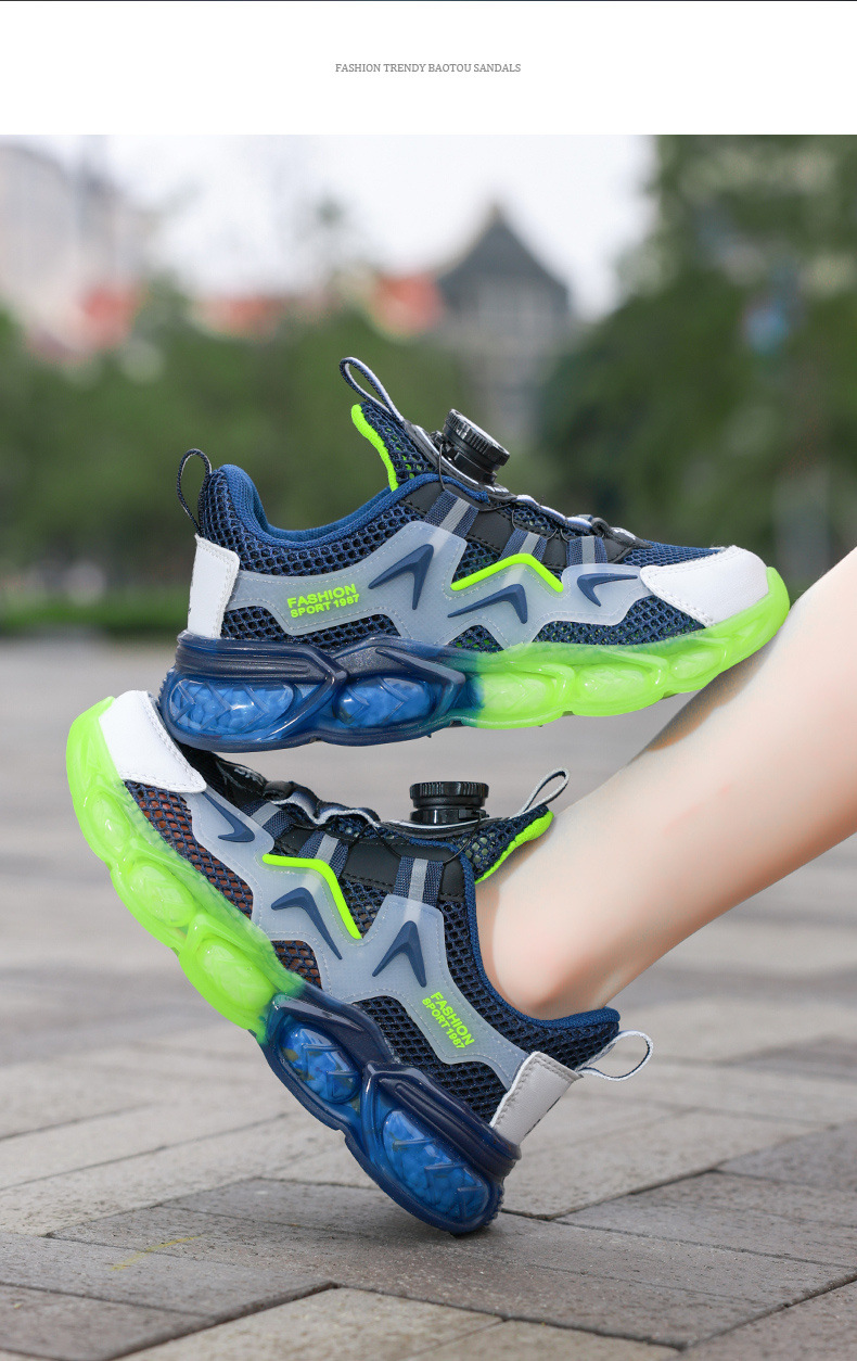 봄과 가을 어린이를위한 어린이 신발 큰 어린이를위한 캐주얼 운동화 회전 버튼 메쉬 신발 학생 미끄럼 방지 운동화