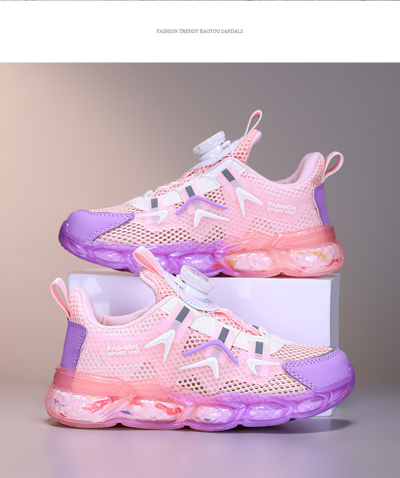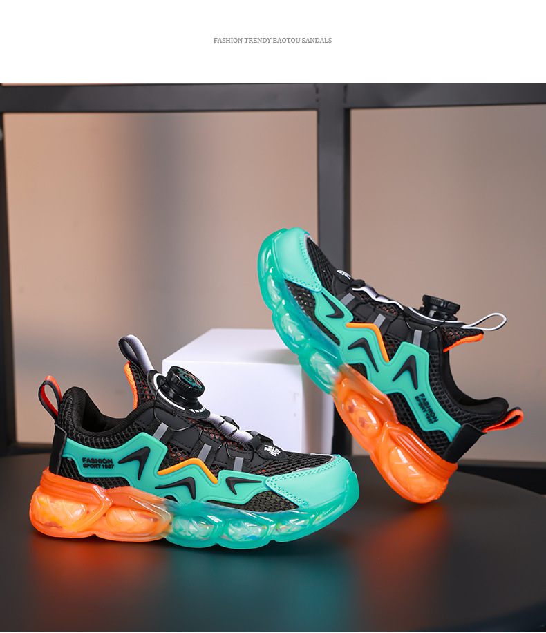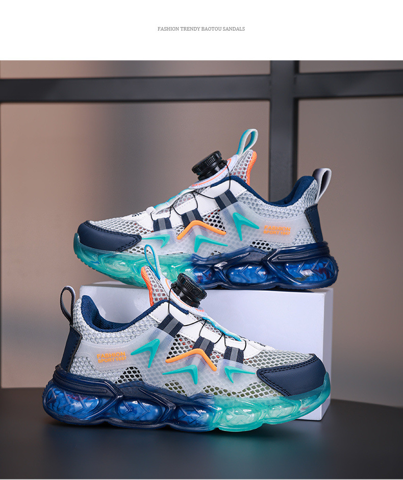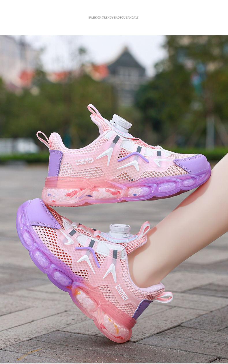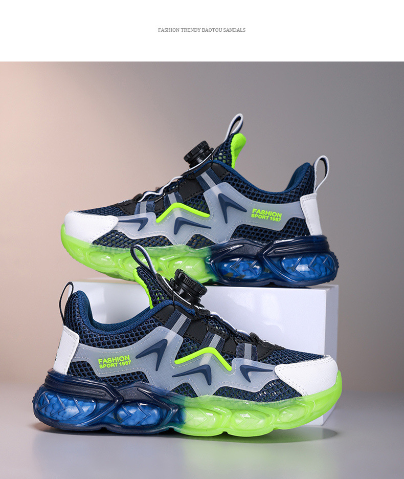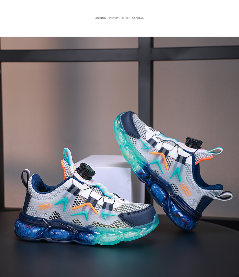봄과 가을 어린이를위한 어린이 신발 큰 어린이를위한 캐주얼 운동화 회전 버튼 메쉬 신발 학생 미끄럼 방지 운동화