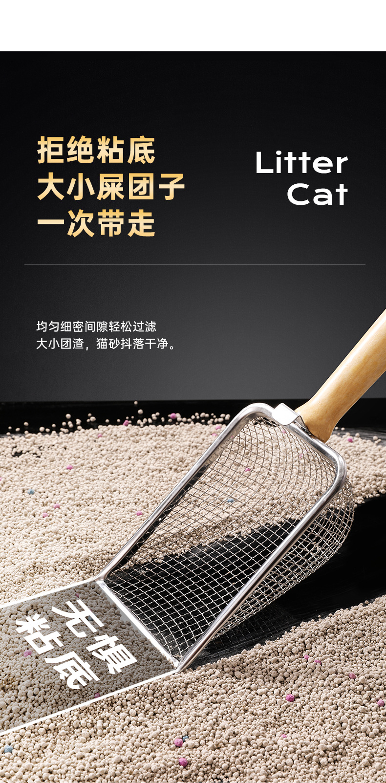 고양이 쓰레기 삽 미세 구멍 삽 스테인레스 스틸 고양이 작은 구멍 필터 모래 벤토나이트 고양이 대형 금속 삽 배설물