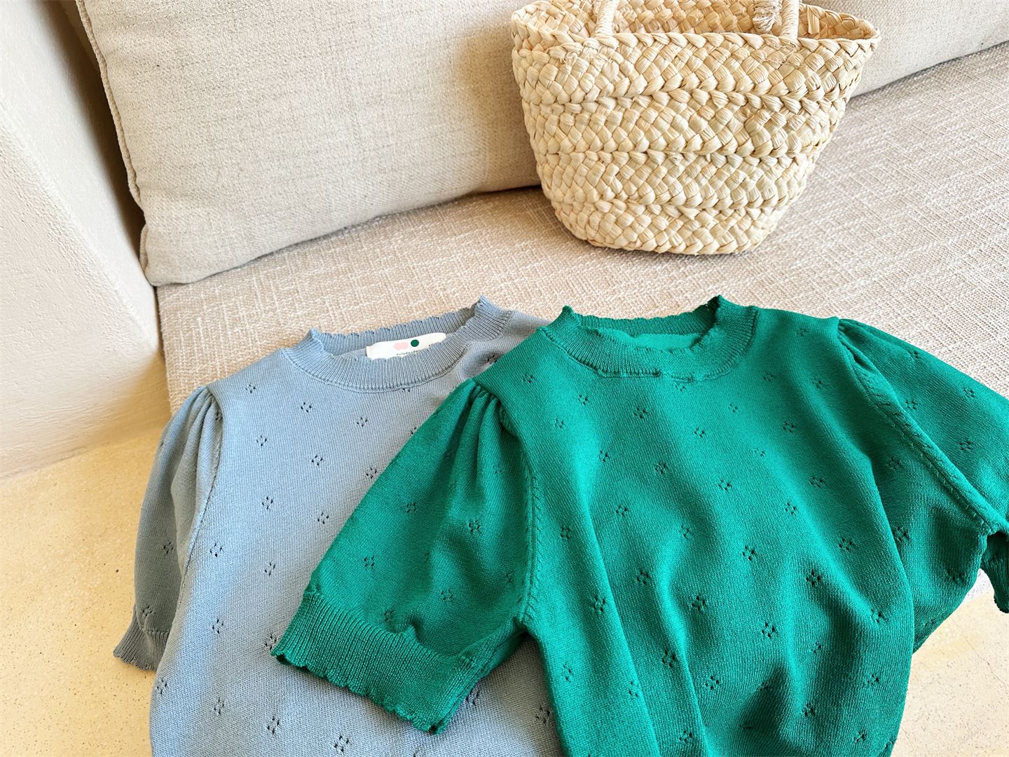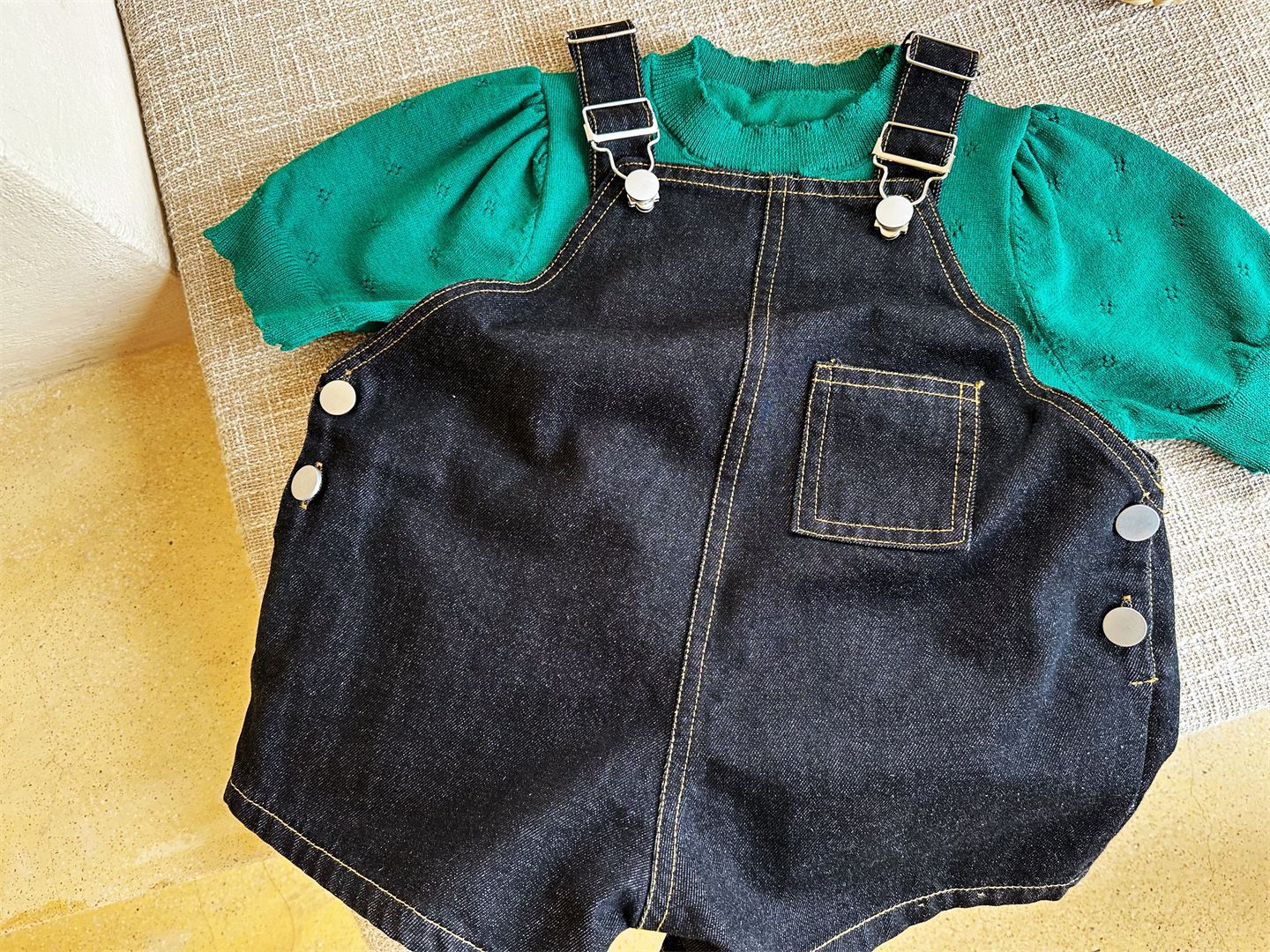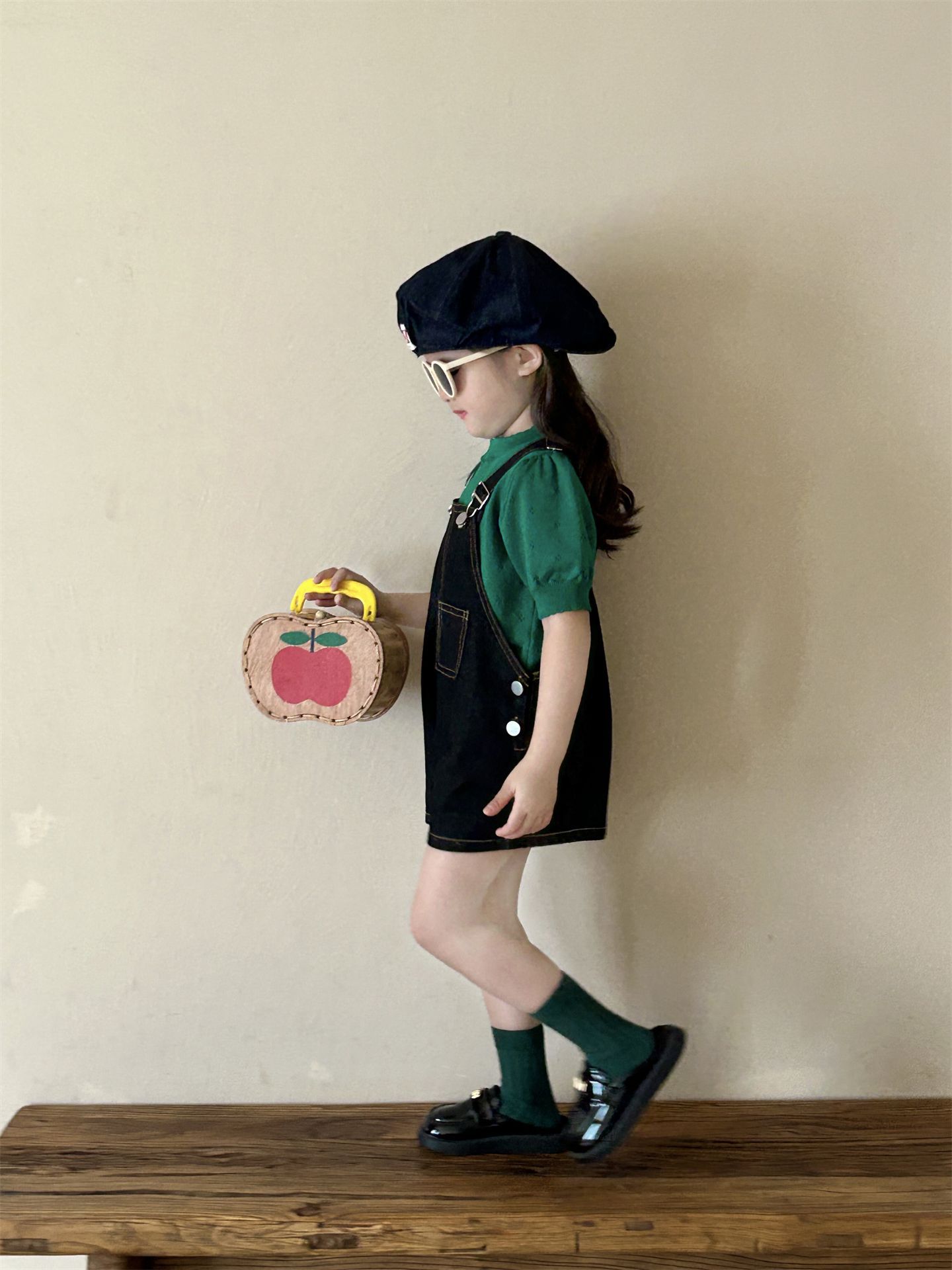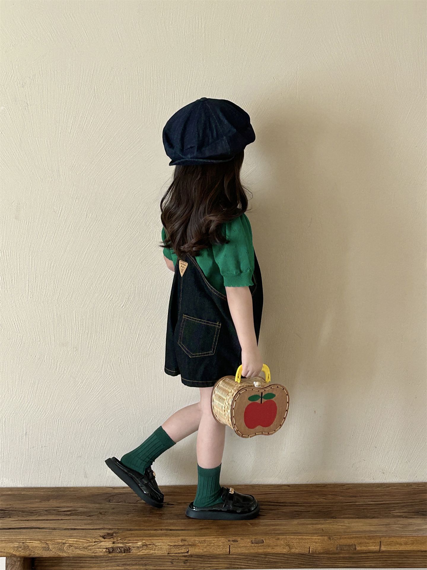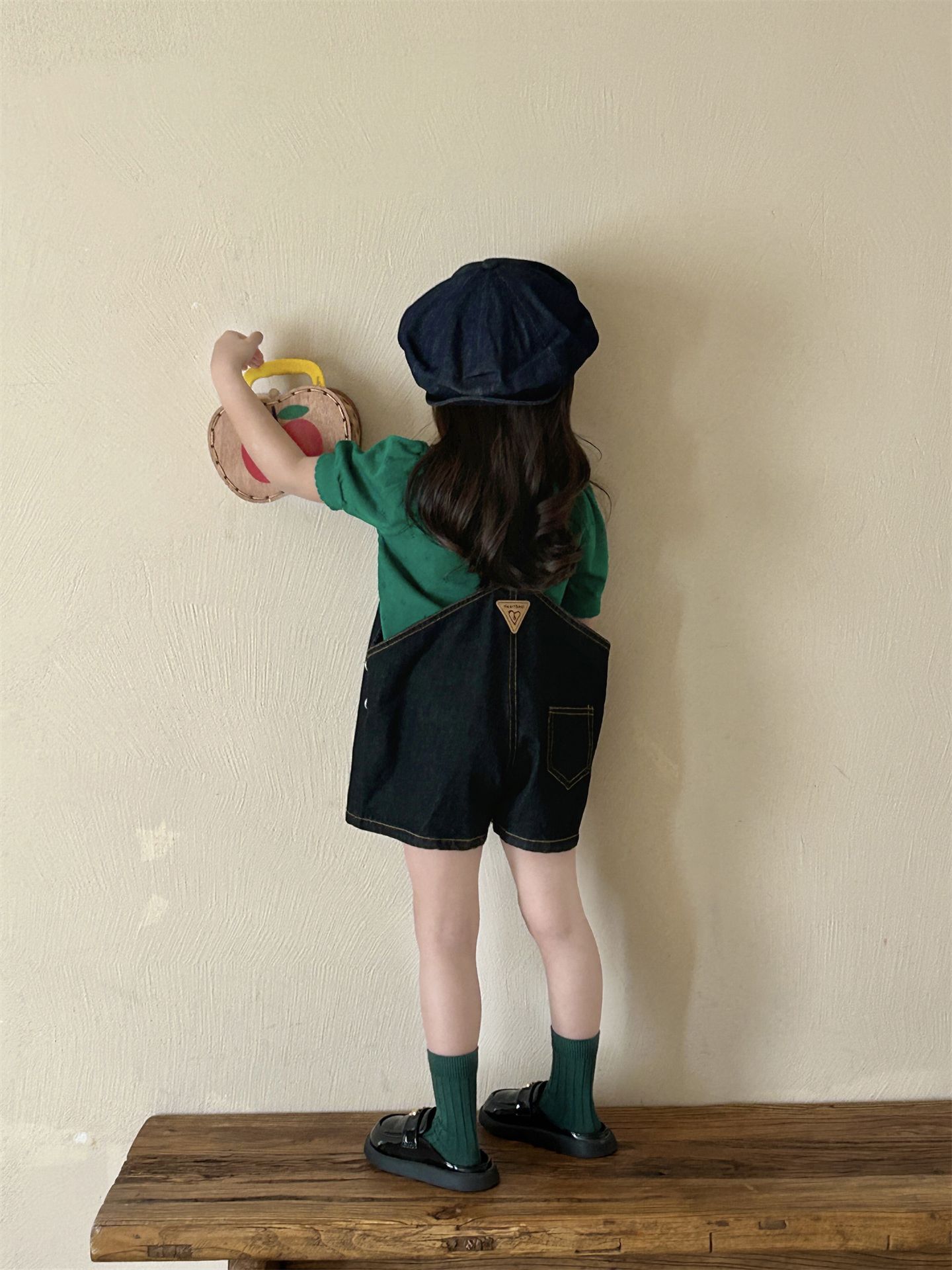 소녀 한국식 양동이 바지 2024 여름 새 어린이 아기 데님 양동이 짧은 니트 반소매 탑스토어 가기