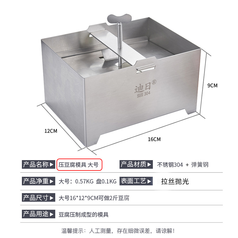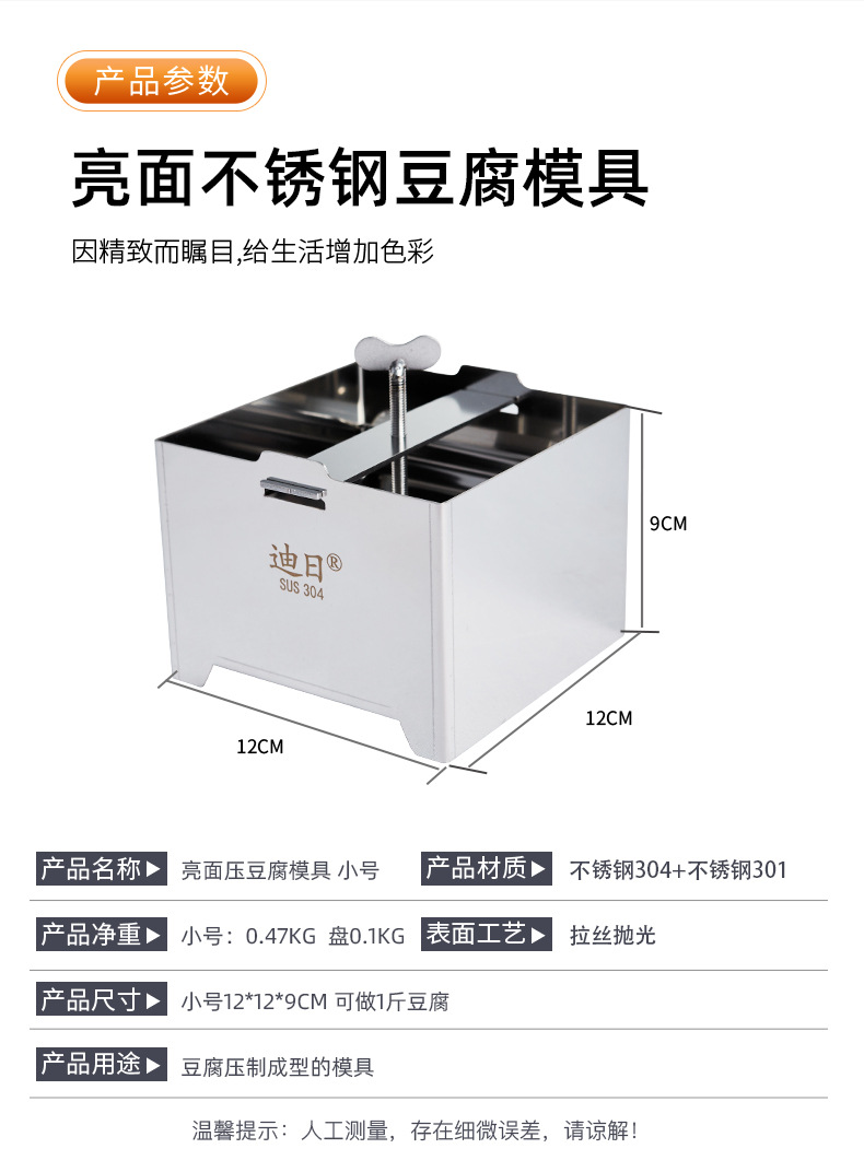 광택이 있는 압축 두부 몰드 304 식품 등급 스테인레스 스틸 두꺼운 수동 수제 사각 몰드 요구르트 필터