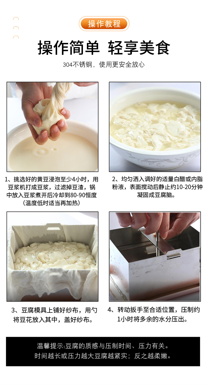 광택이 있는 압축 두부 몰드 304 식품 등급 스테인레스 스틸 두꺼운 수동 수제 사각 몰드 요구르트 필터스토어 가기