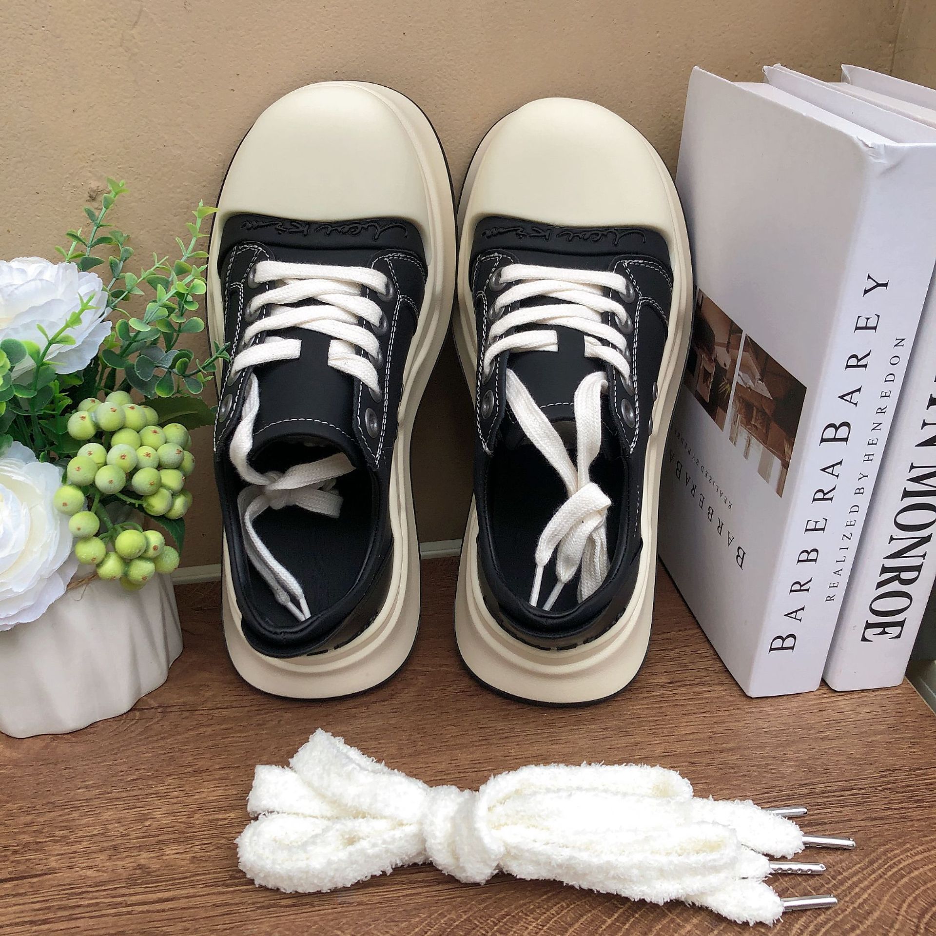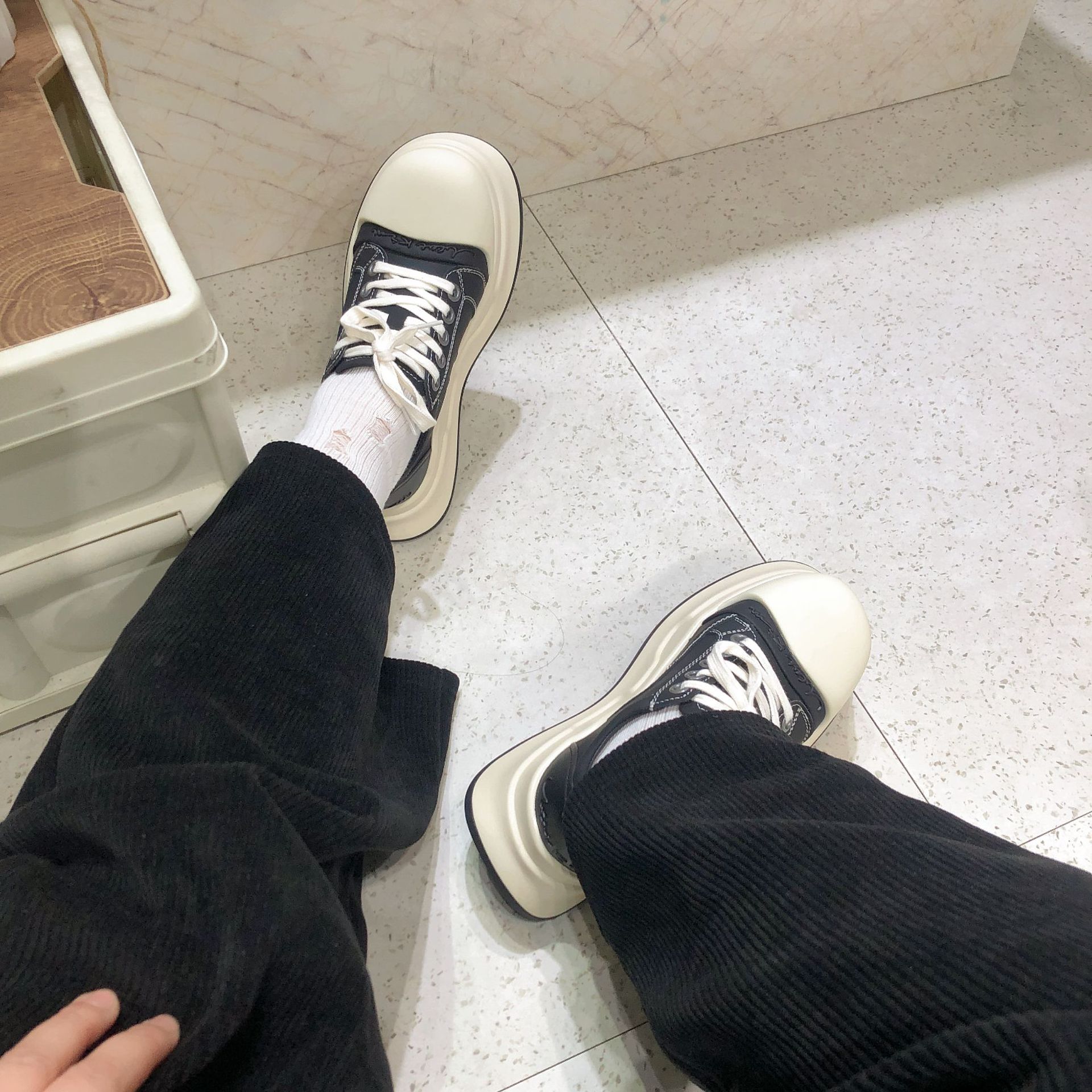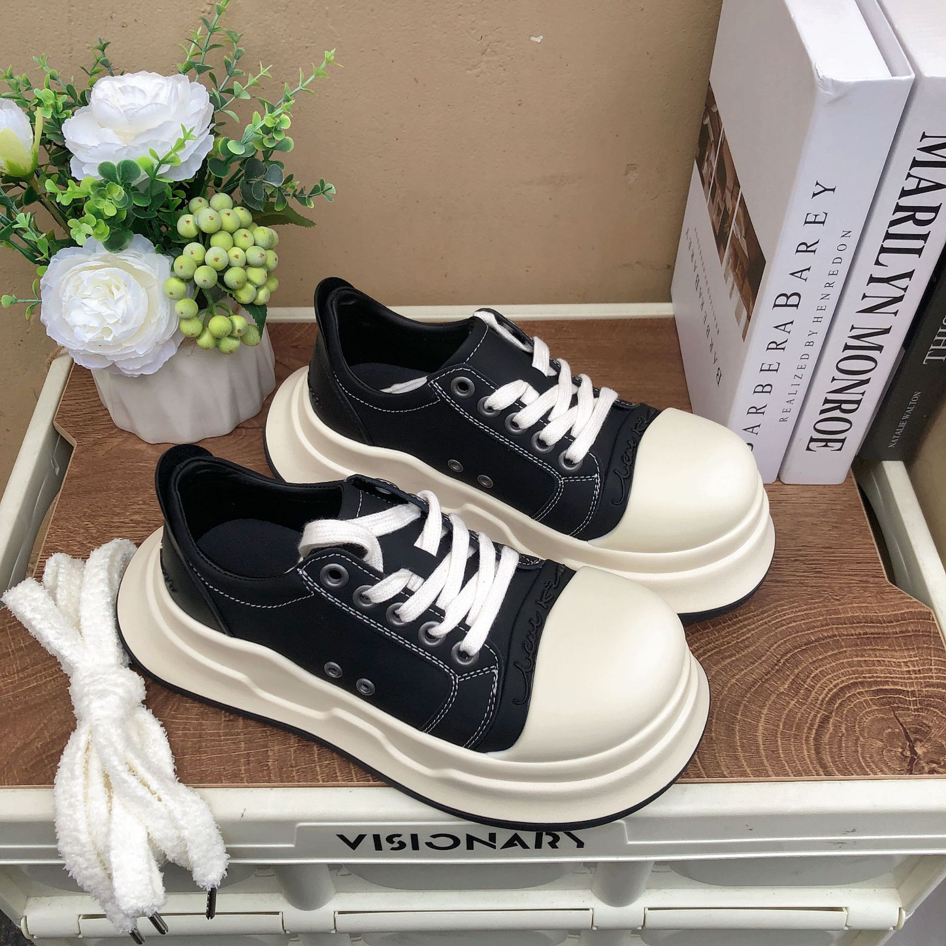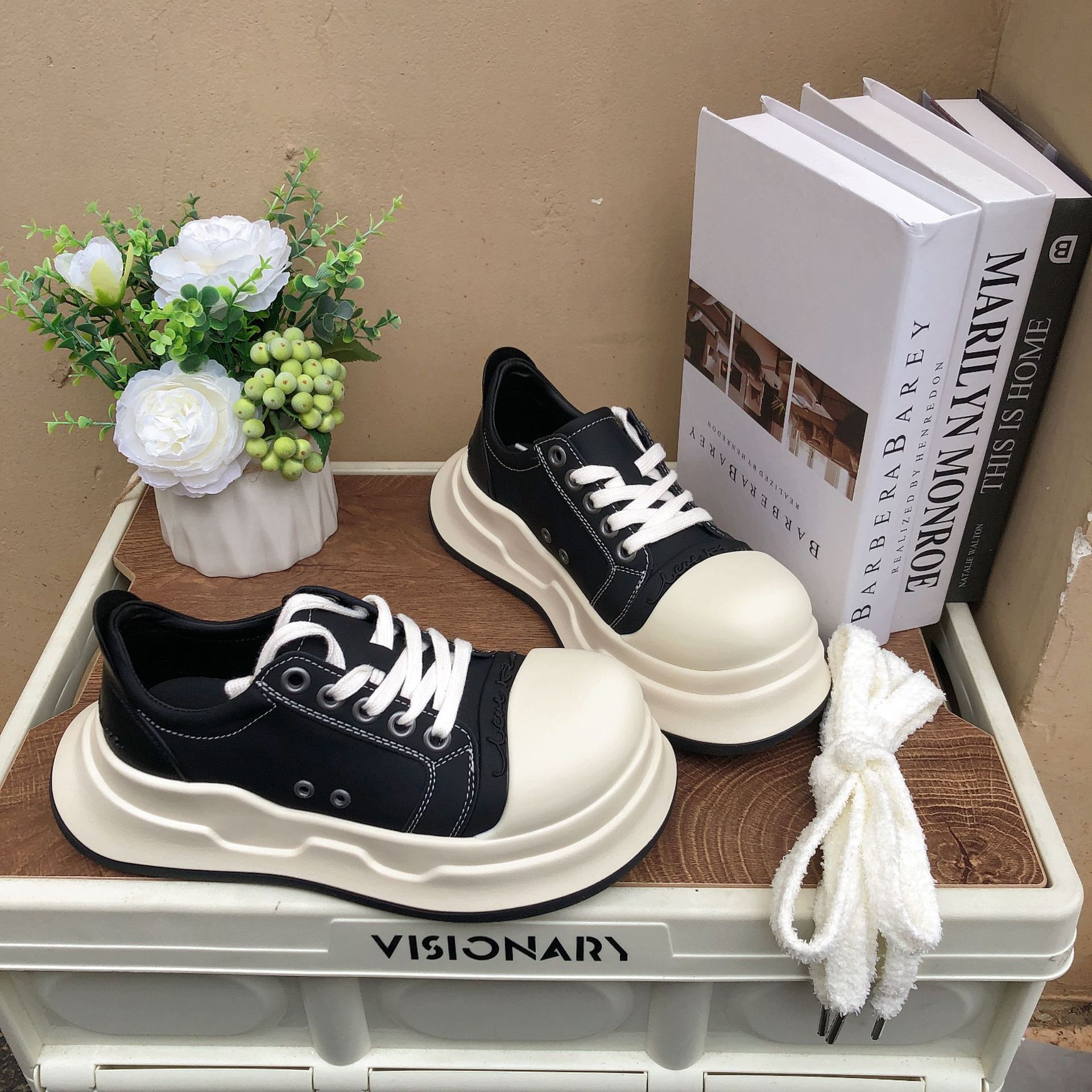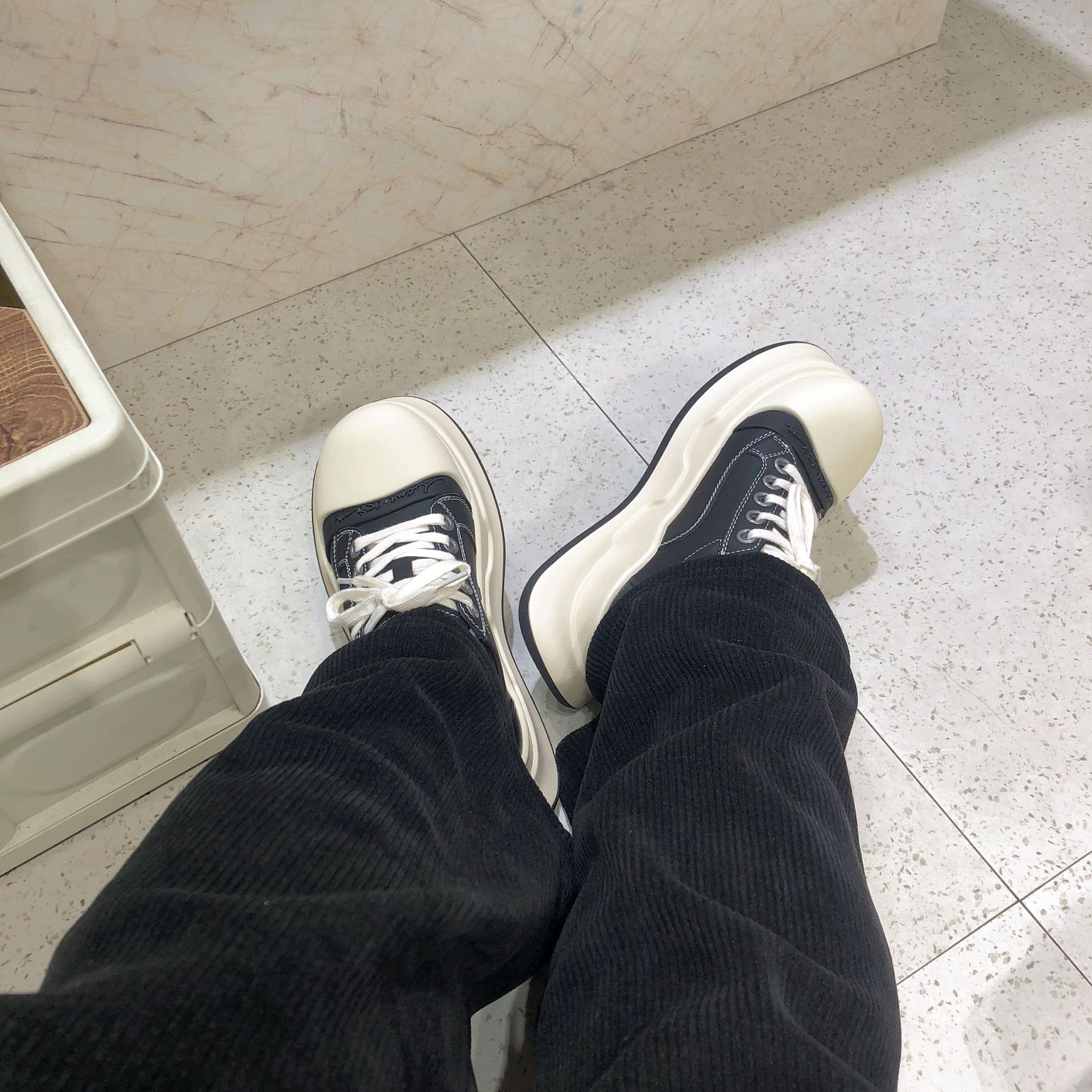 흑백 라운드 헤드 미키 큰 머리 신발 여성의 2024 봄과 여름 새로운 미운 귀여운 캔버스 신발 두꺼운 단독 증가 스포츠 캐주얼 신발스토어 가기