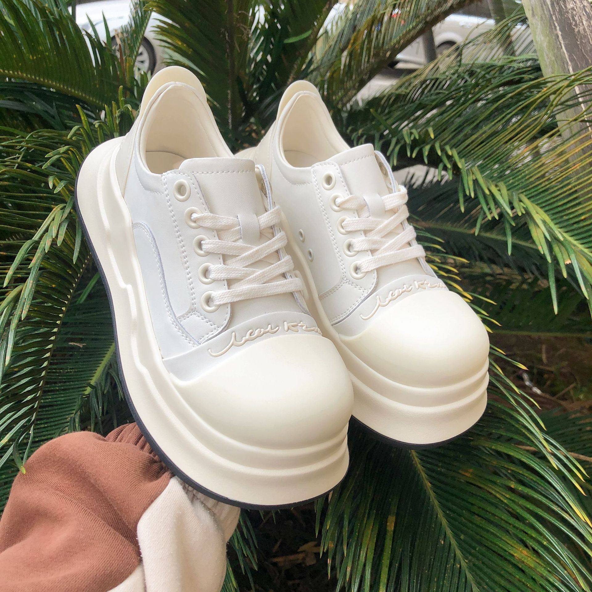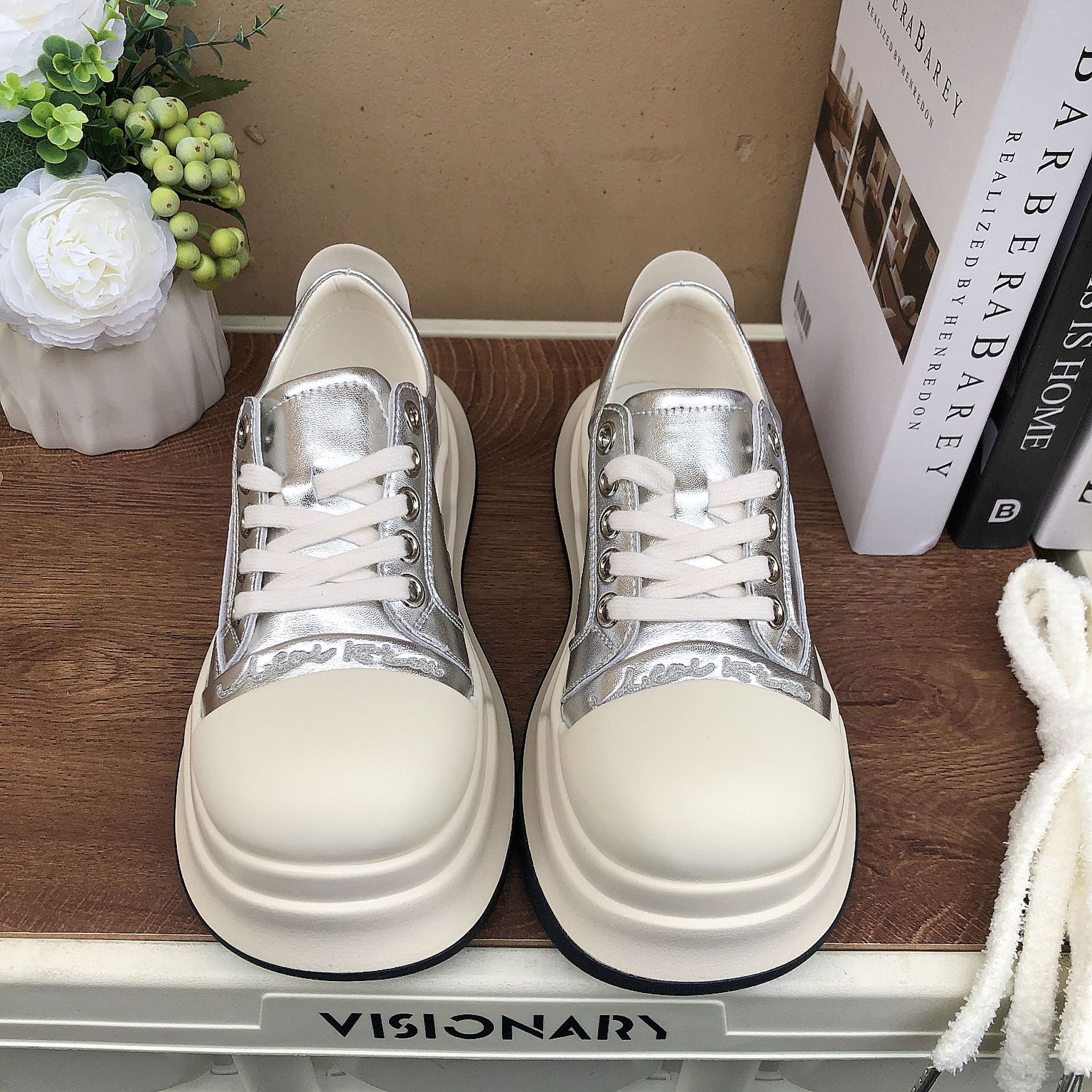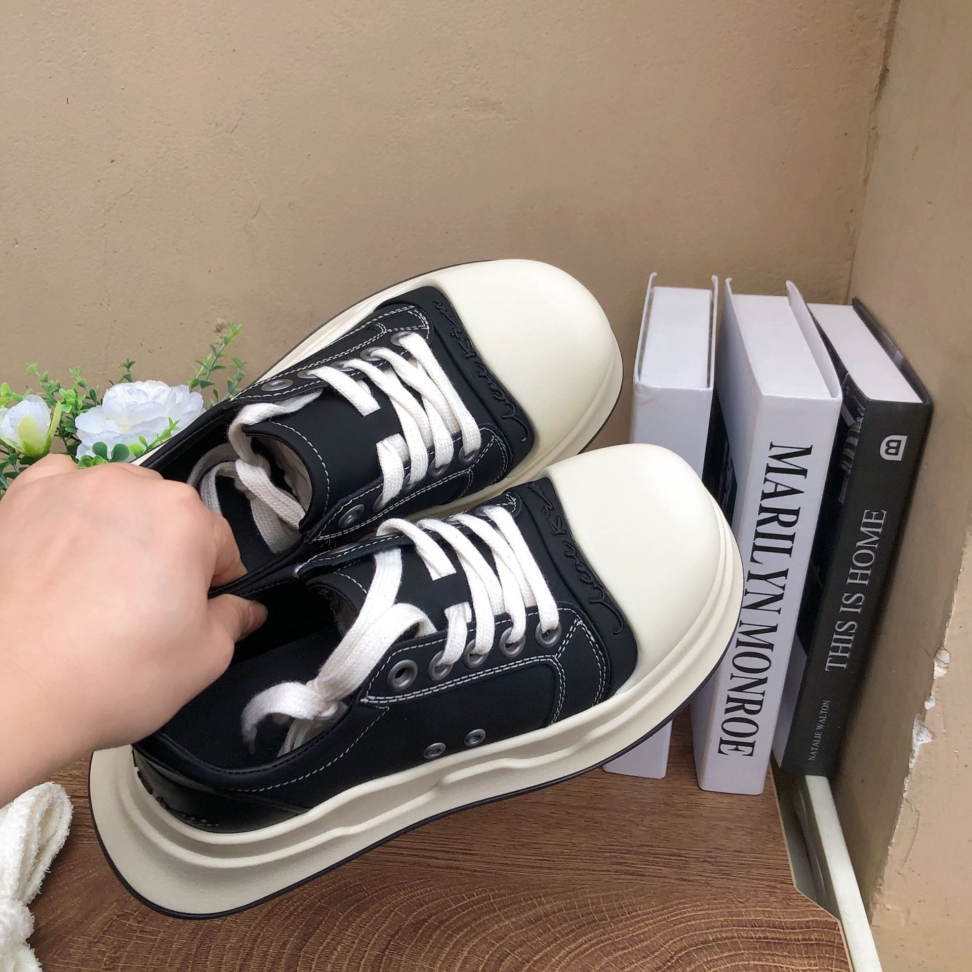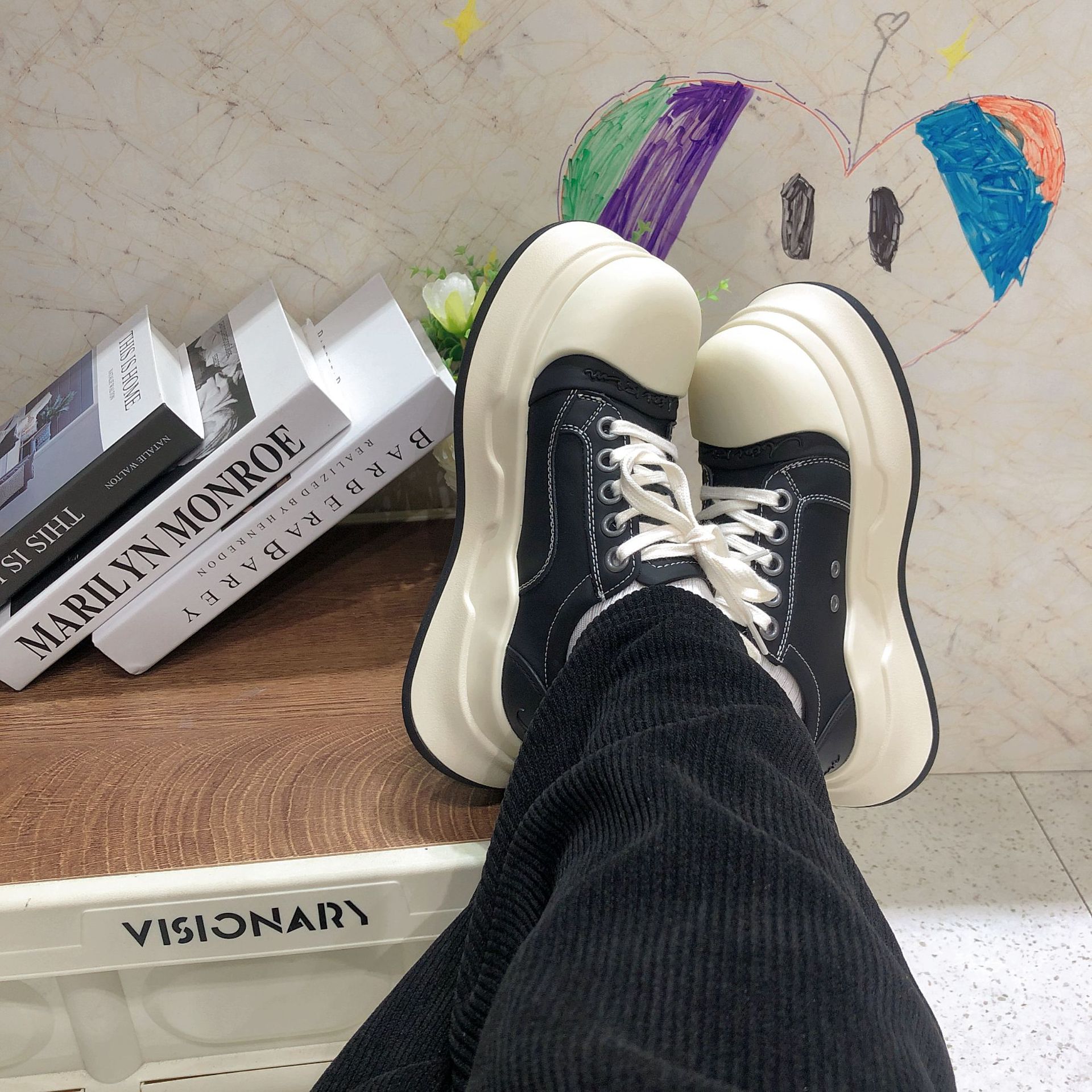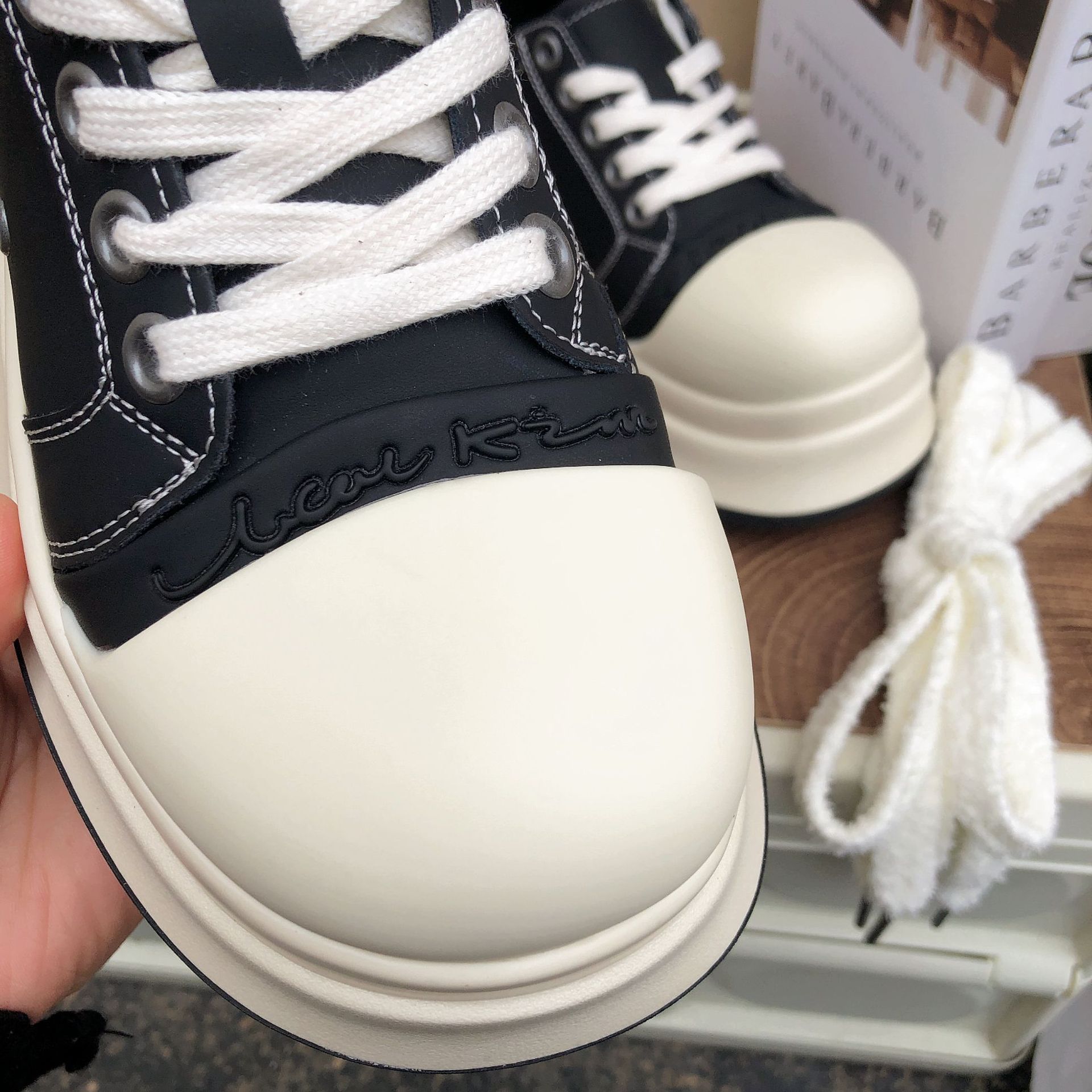 흑백 라운드 헤드 미키 큰 머리 신발 여성의 2024 봄과 여름 새로운 미운 귀여운 캔버스 신발 두꺼운 단독 증가 스포츠 캐주얼 신발스토어 가기
