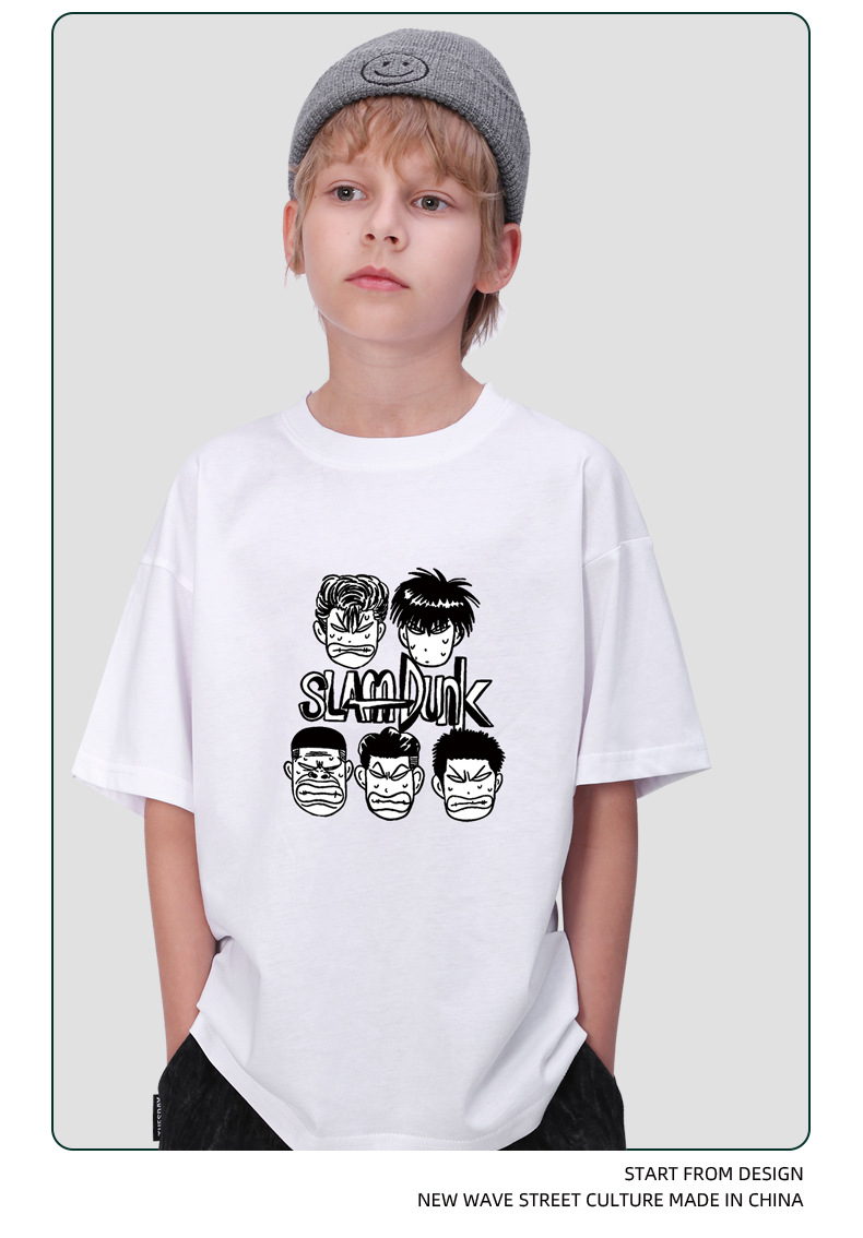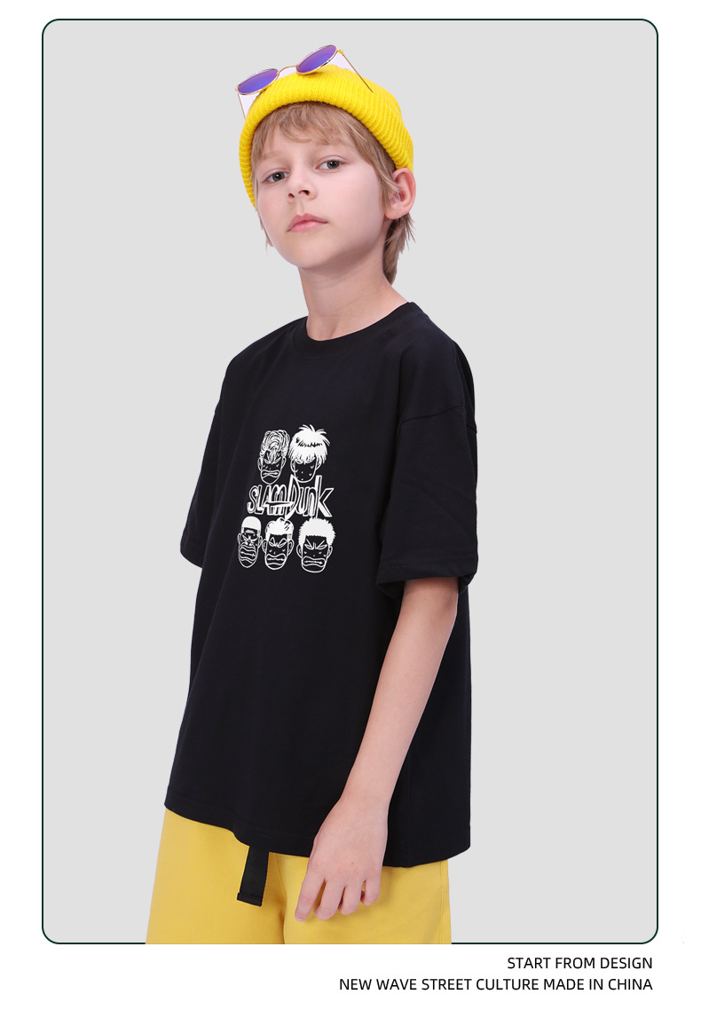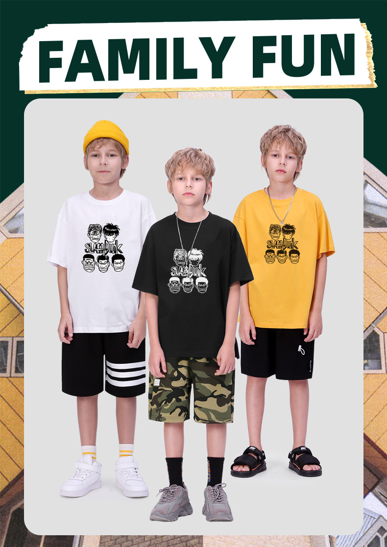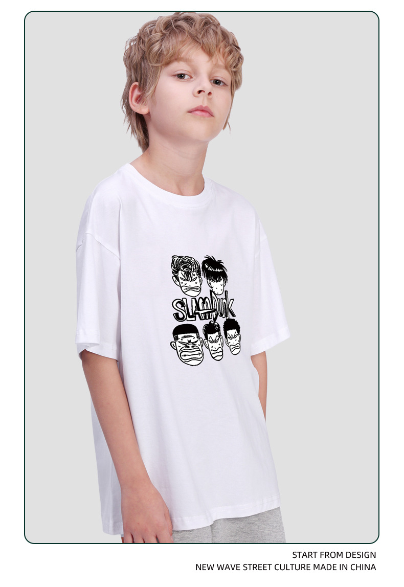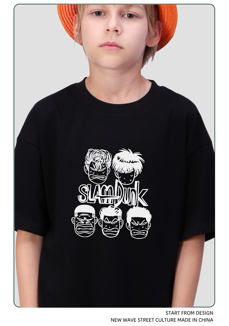아동용 반팔 티셔츠 2025 뉴 여름 탑 슬램 덩크 전체 분노 이모티콘 팩 프린트 부모-자식 착용