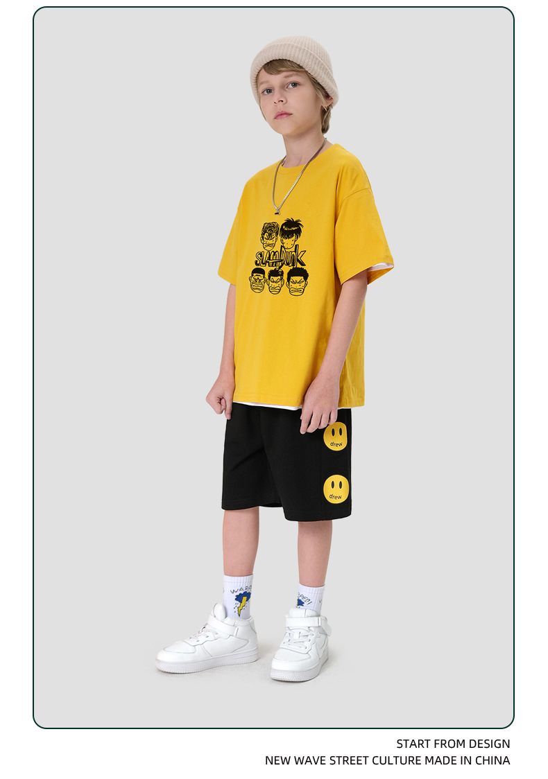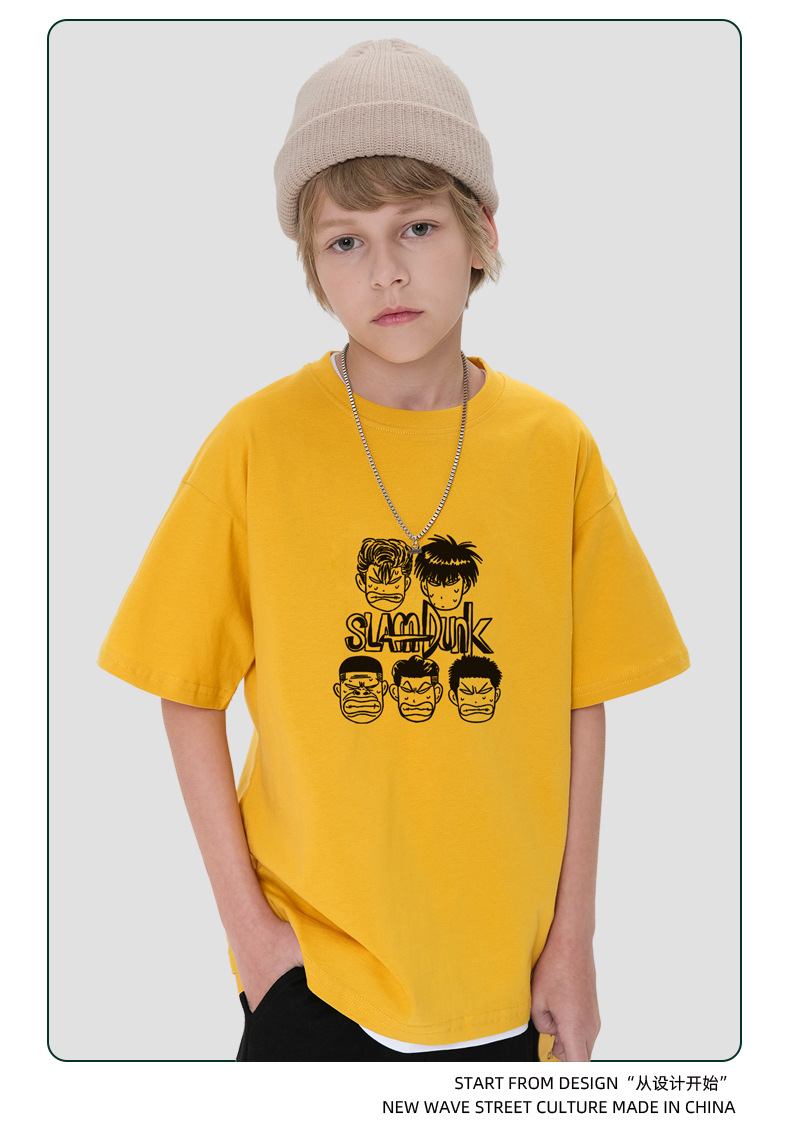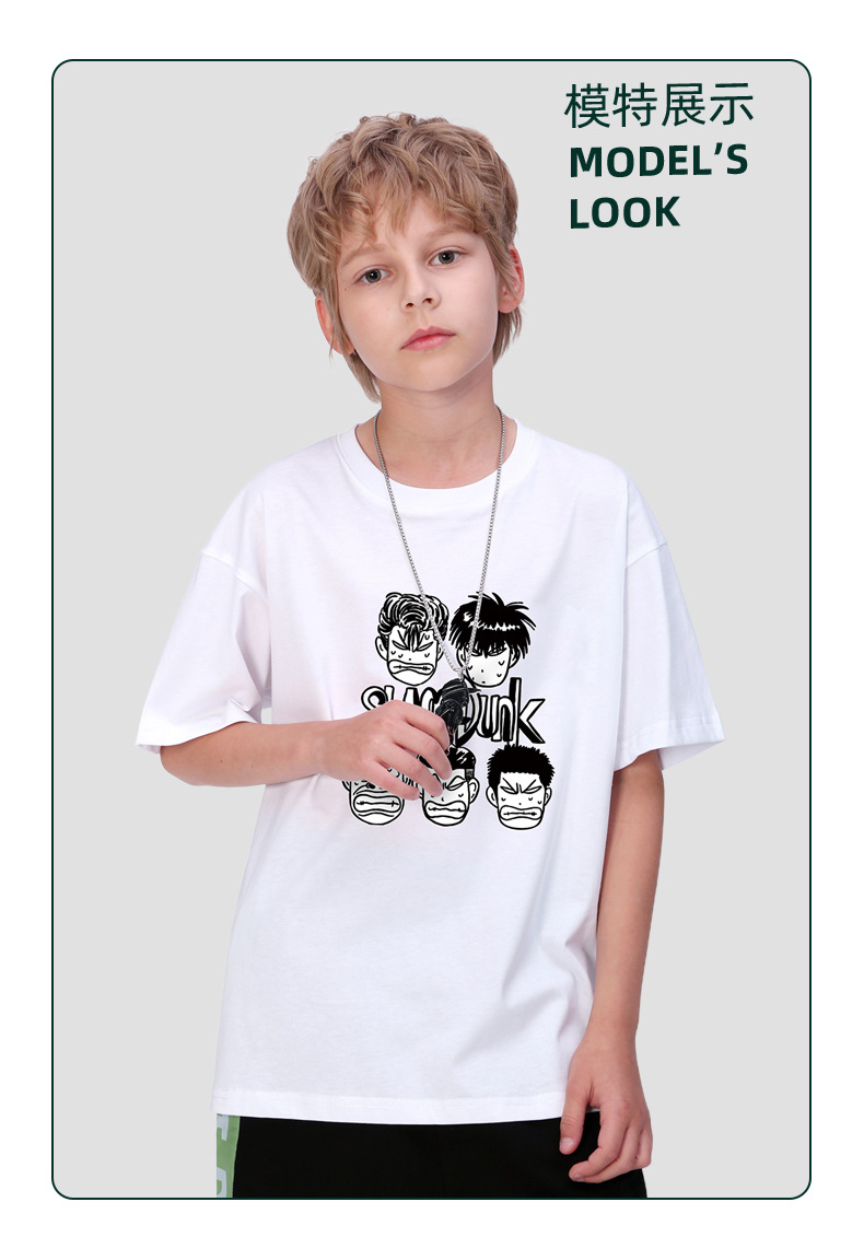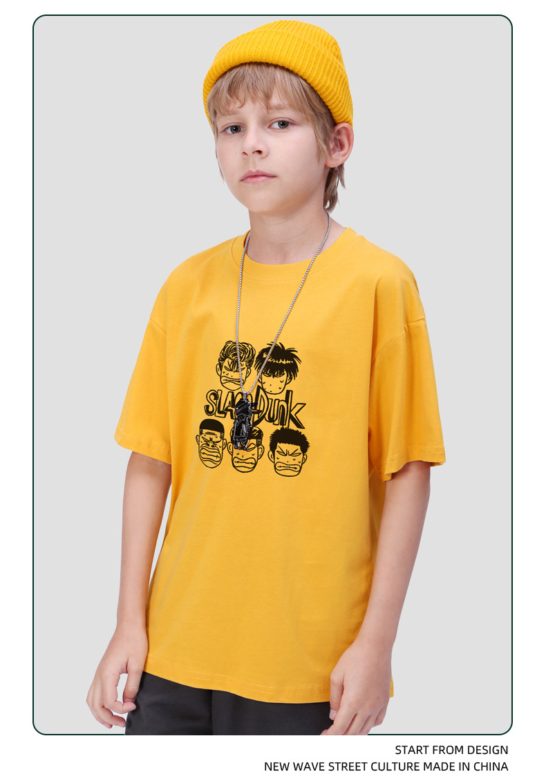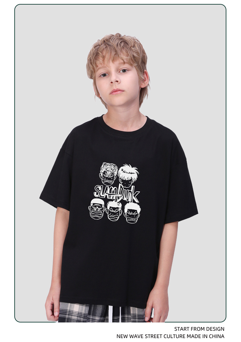 아동용 반팔 티셔츠 2025 뉴 여름 탑 슬램 덩크 전체 분노 이모티콘 팩 프린트 부모-자식 착용