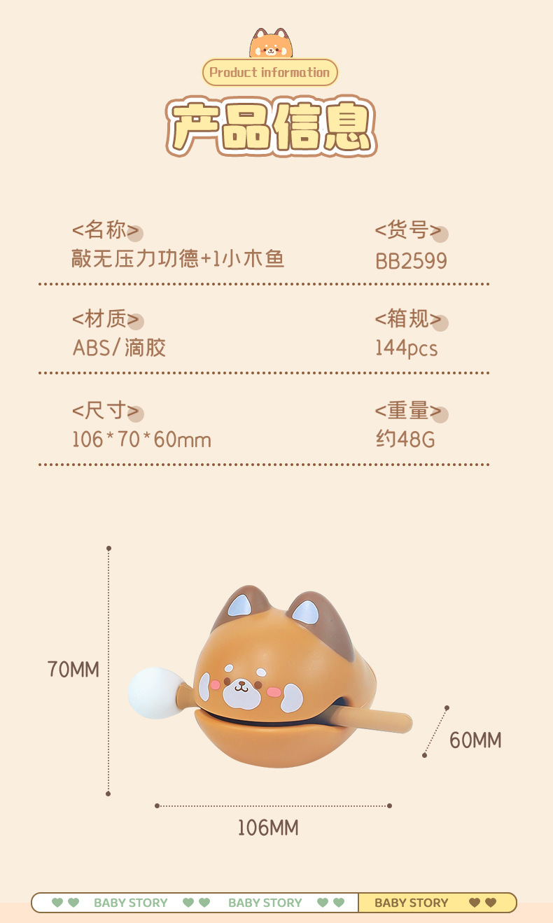 노크 압력 공로 1 작은 나무 물고기 감압 장식품 사무실 역 노크 감정 제어 치유 감압 장난감스토어 가기