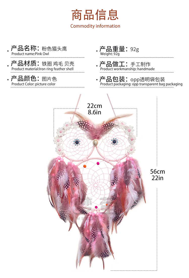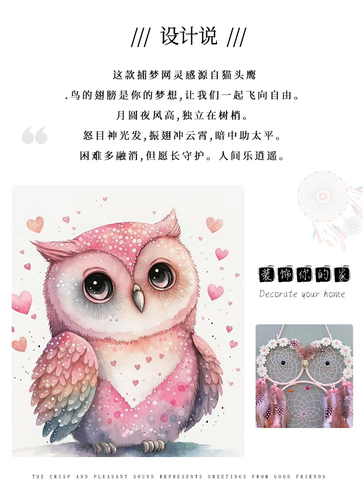 국경 간 새로운 명소 도매 핑크 스마트 새 올빼미 꿈 그물 유럽과 미국은 바람 홈 장식 펜던트에