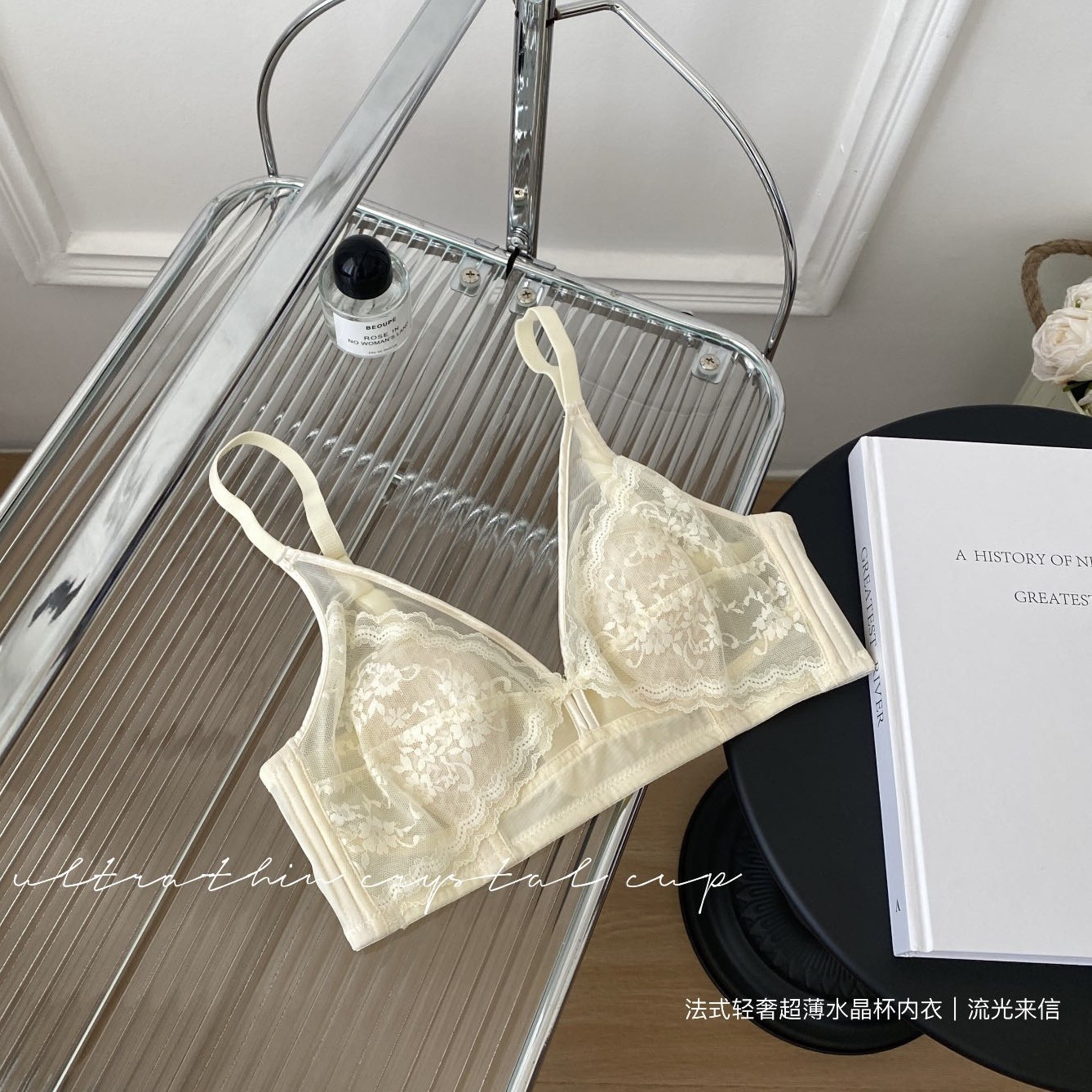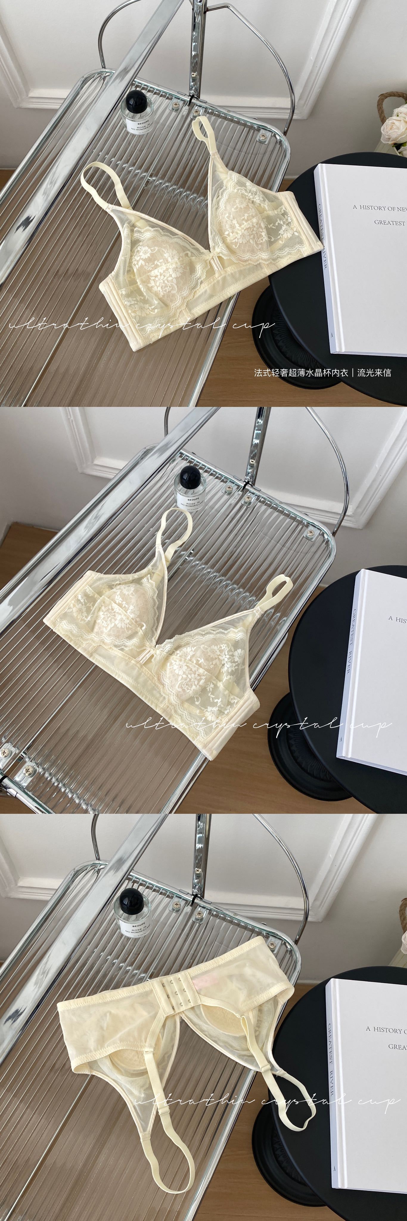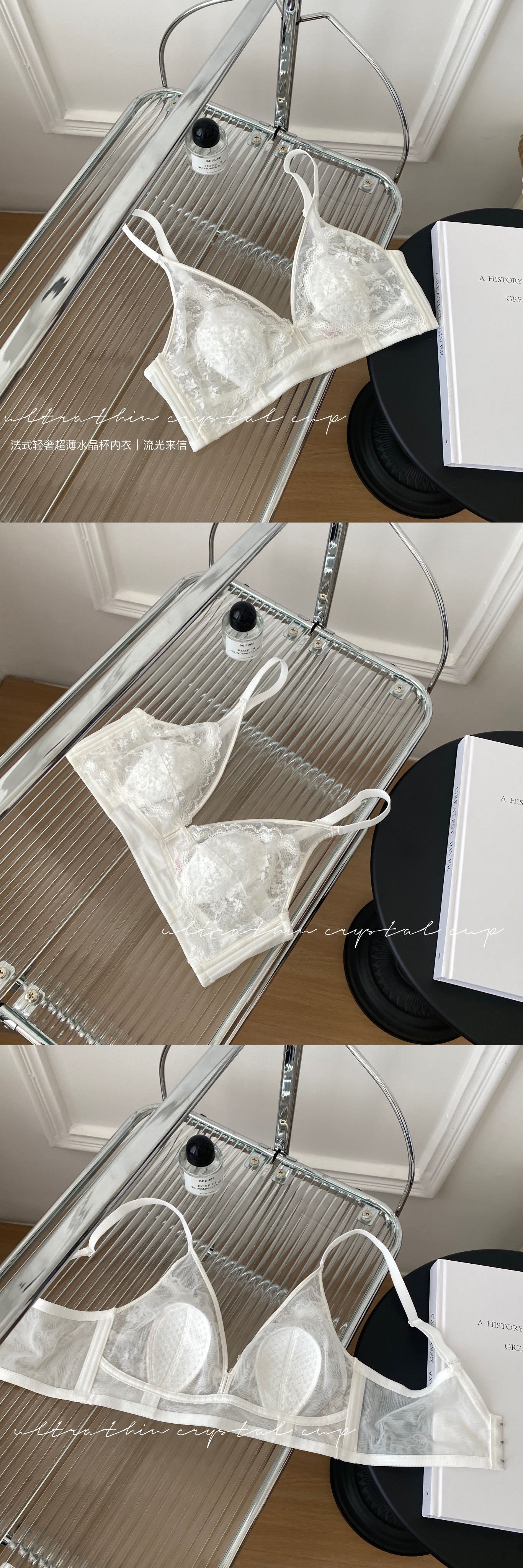 프랑스 스타일 라이트 럭셔리 레이스 속옷 여성용 크리스탈 컵 통기성 토끼 귀 여성용 큰 가슴 작은 가슴 브래지어스토어 가기