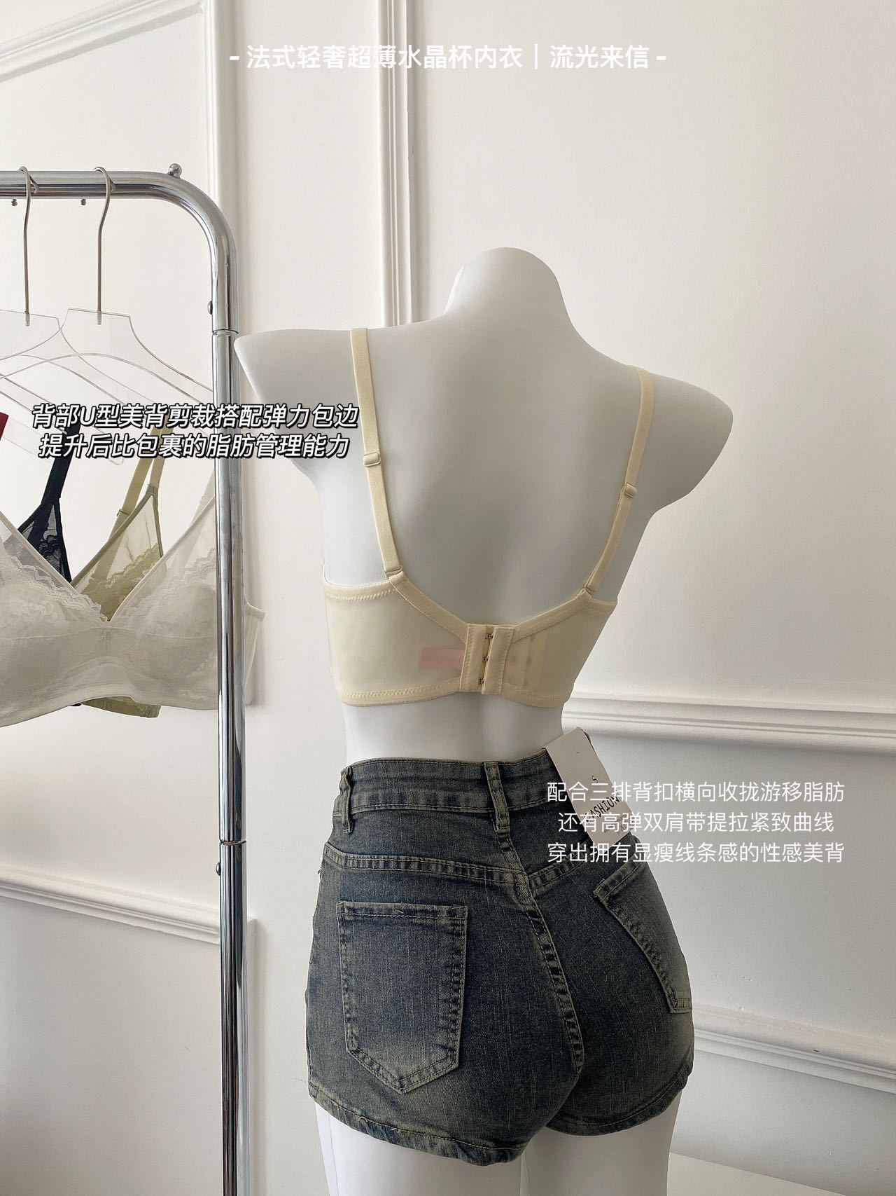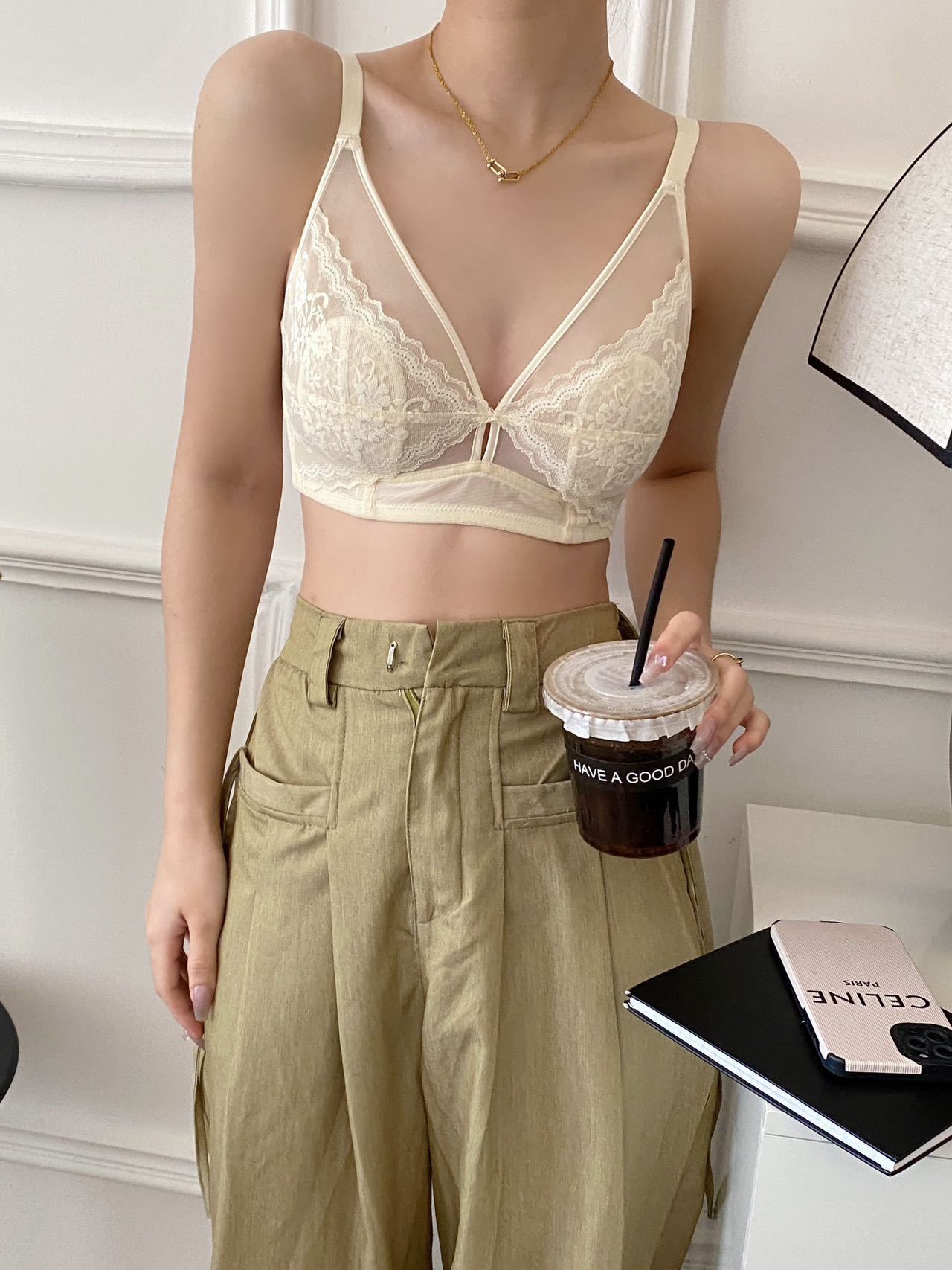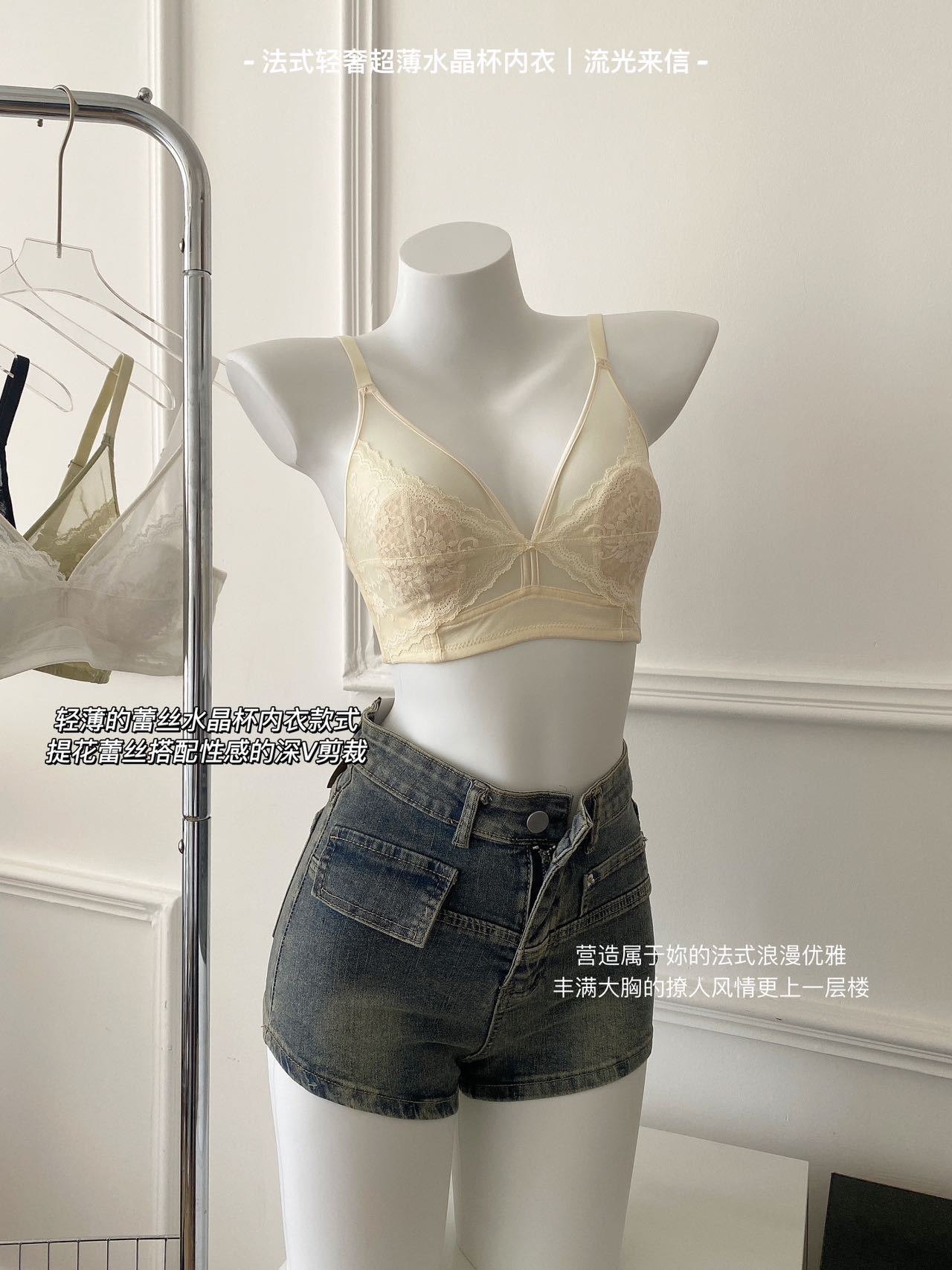 프랑스 스타일 라이트 럭셔리 레이스 속옷 여성용 크리스탈 컵 통기성 토끼 귀 여성용 큰 가슴 작은 가슴 브래지어스토어 가기