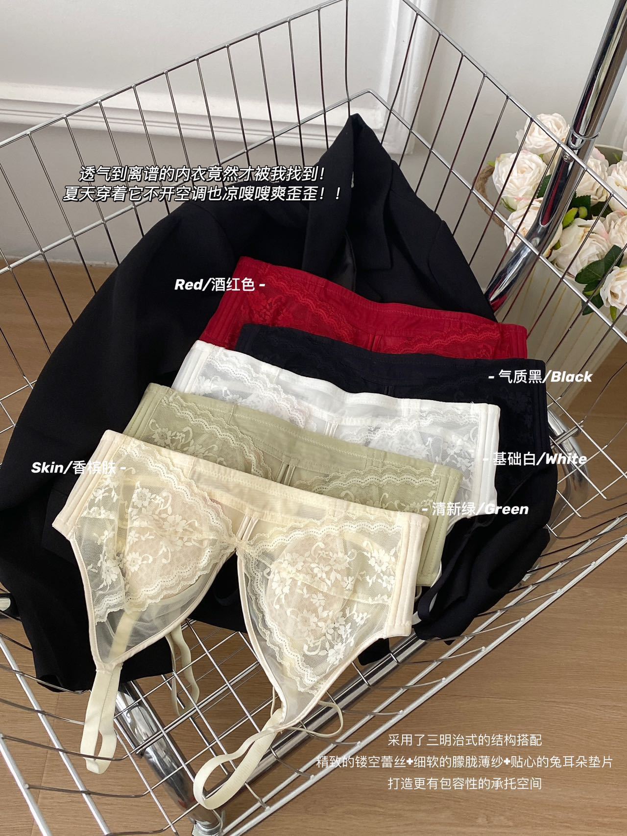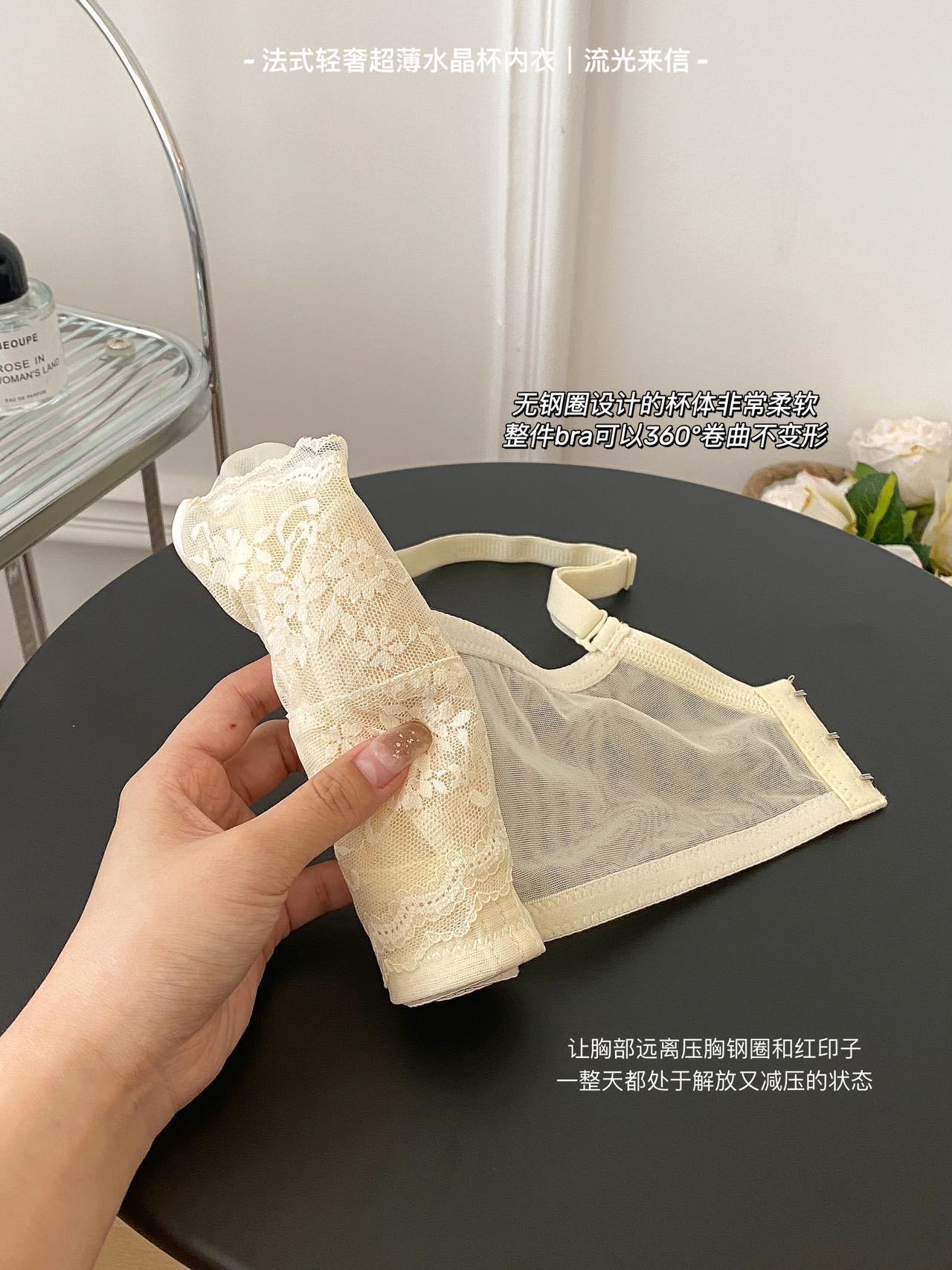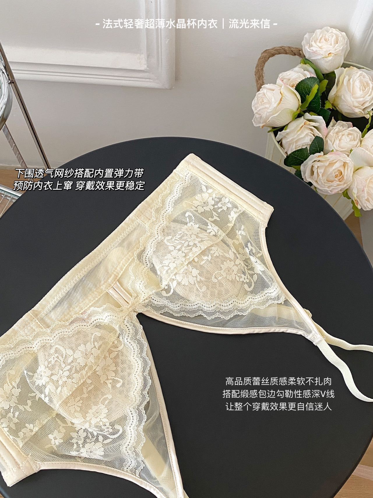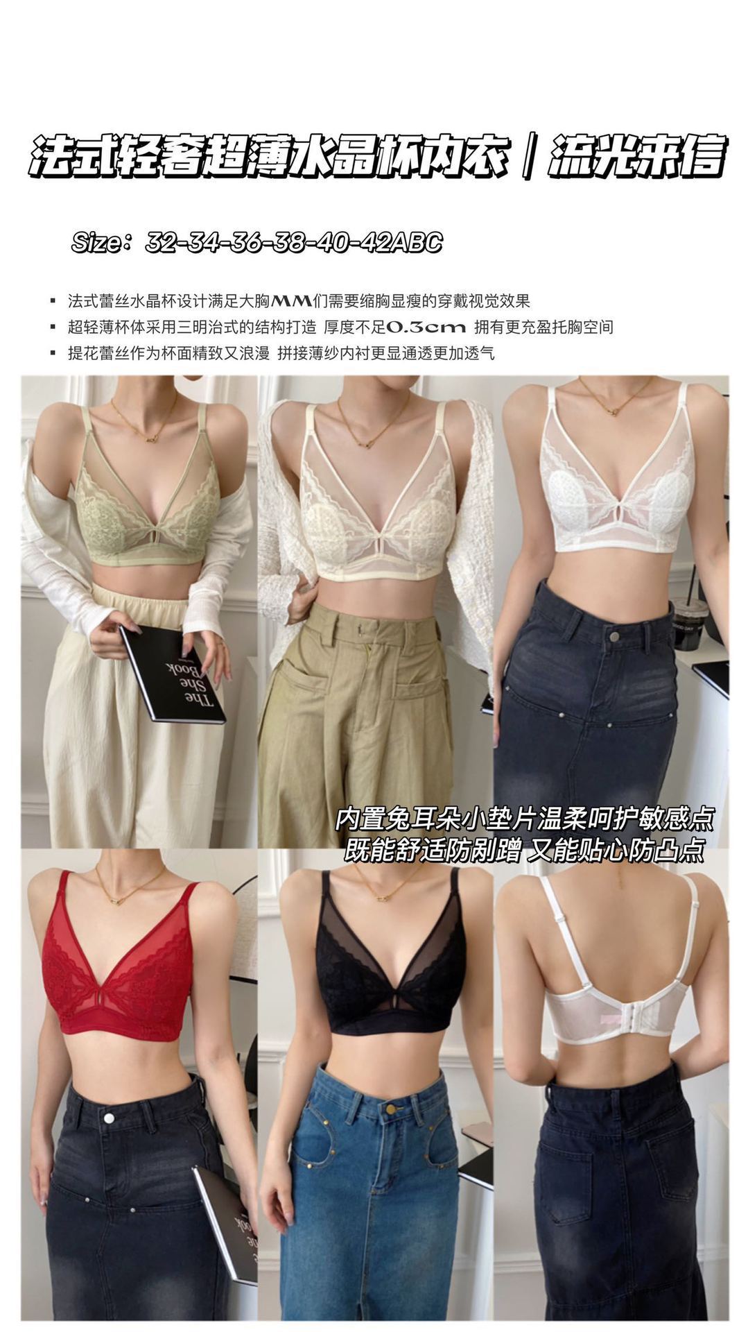 프랑스 스타일 라이트 럭셔리 레이스 속옷 여성용 크리스탈 컵 통기성 토끼 귀 여성용 큰 가슴 작은 가슴 브래지어