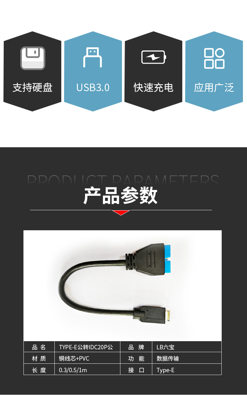 USB3.0 타입-E 남성-IDC20P 남성 컴퓨터 케이스 마더보드 어댑터 확장 케이블