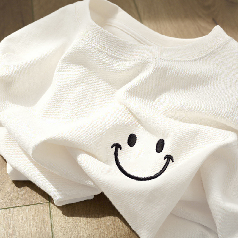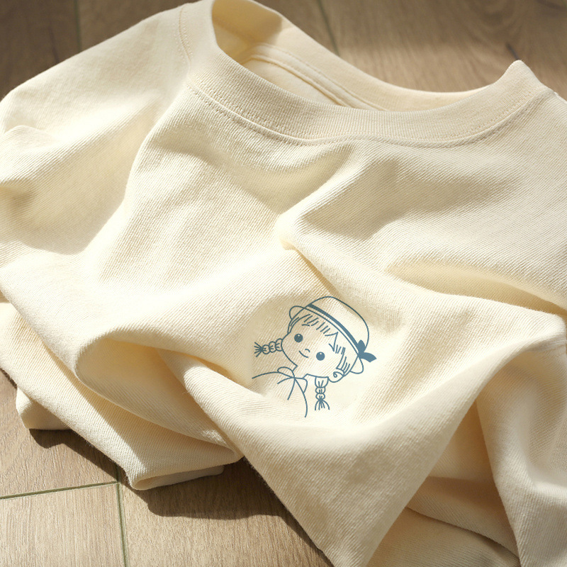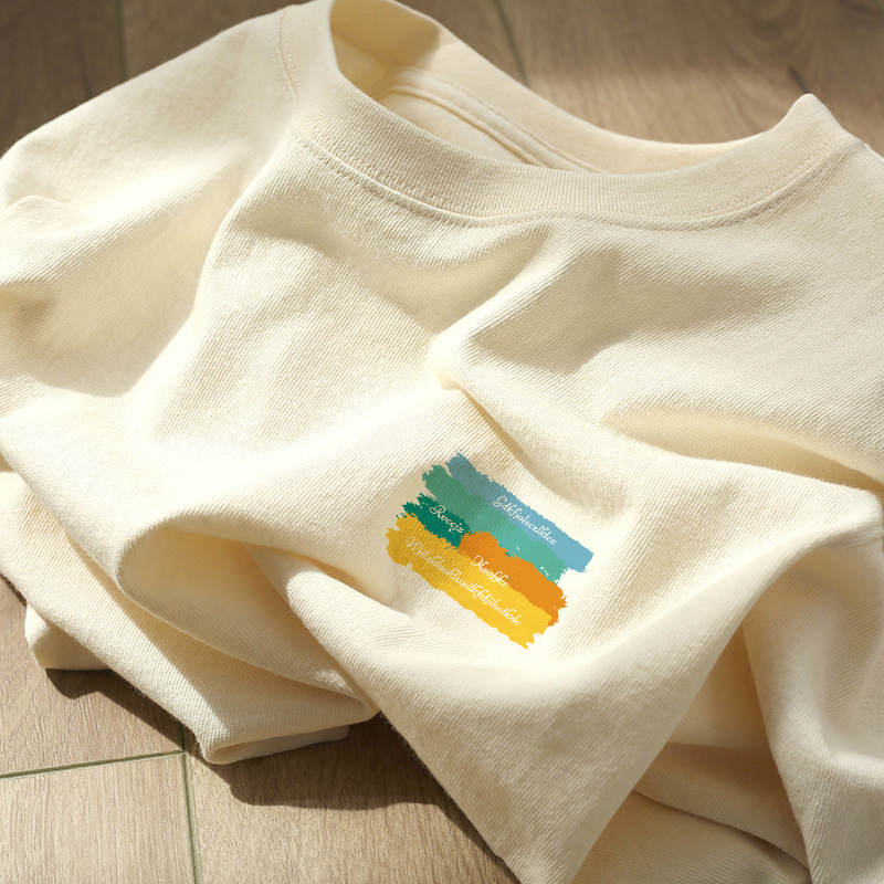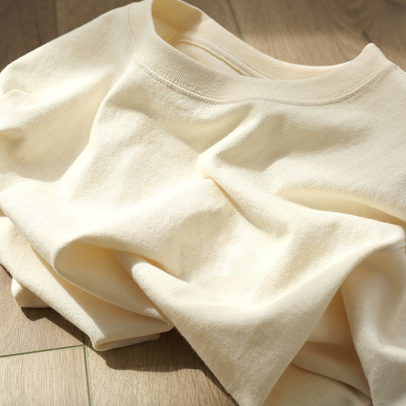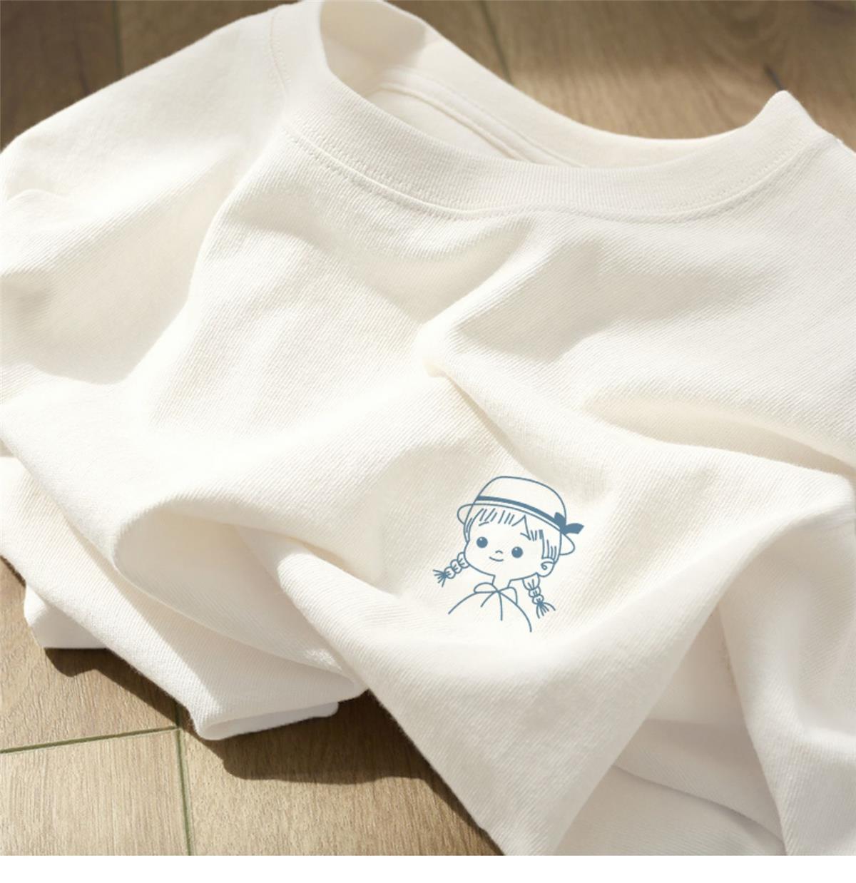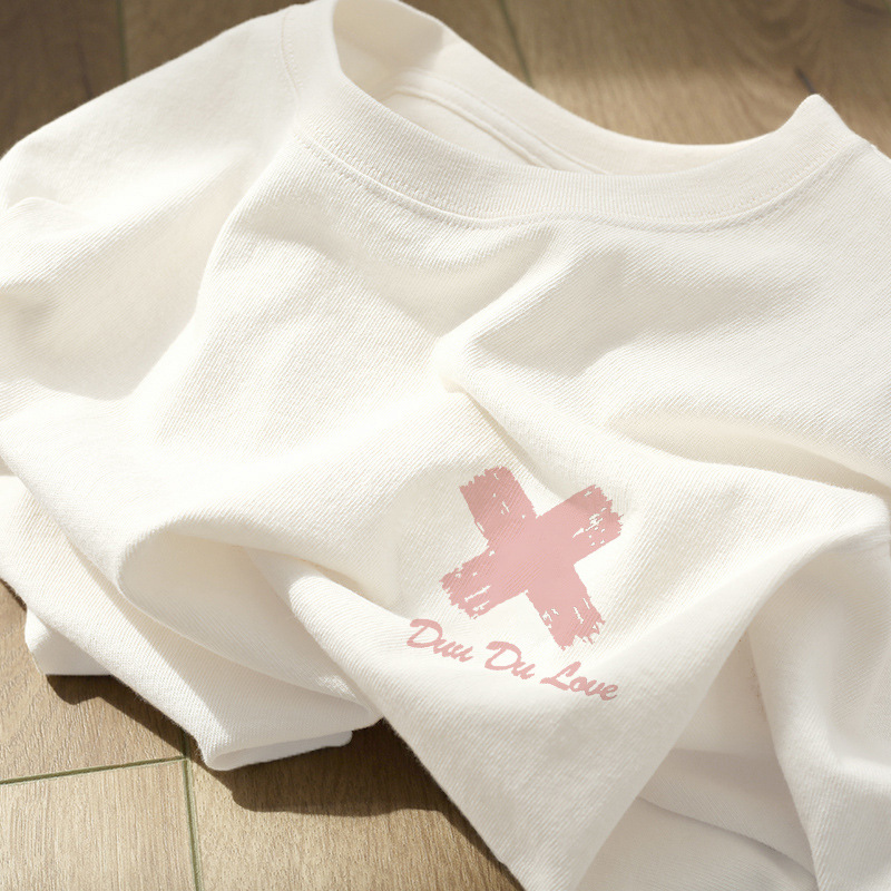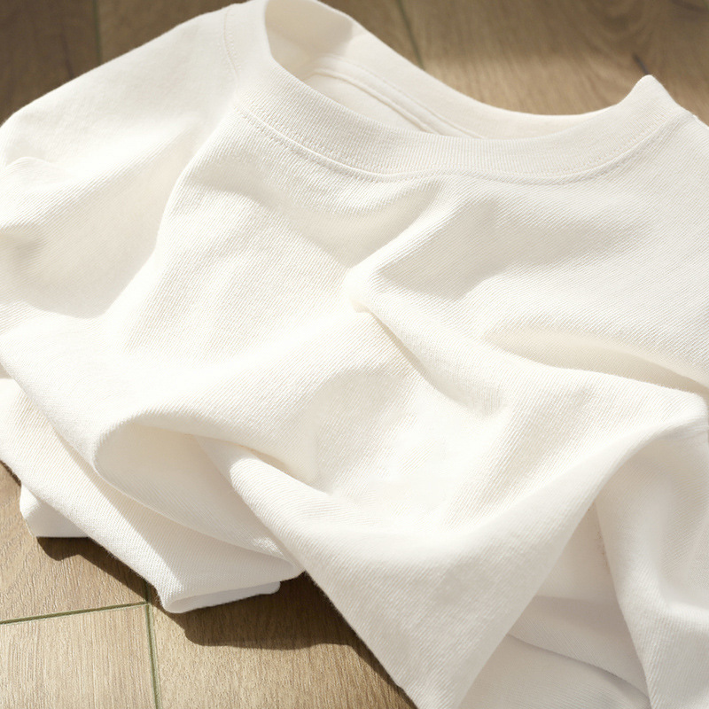 전국 패션 화이트 헤비 코튼 텍스처 반팔 티셔츠 여성 여름 아메리칸 스타일 레트로 하이 엔드 스타일 세련된 아름다운 탑스토어 가기