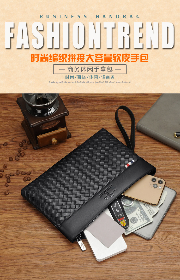 2024 새로운 지갑 남성용 클러치 백 대용량 봉투 봉투 플러그 클러치 백 소프트 가죽 텍스처 남성용 클램프 백