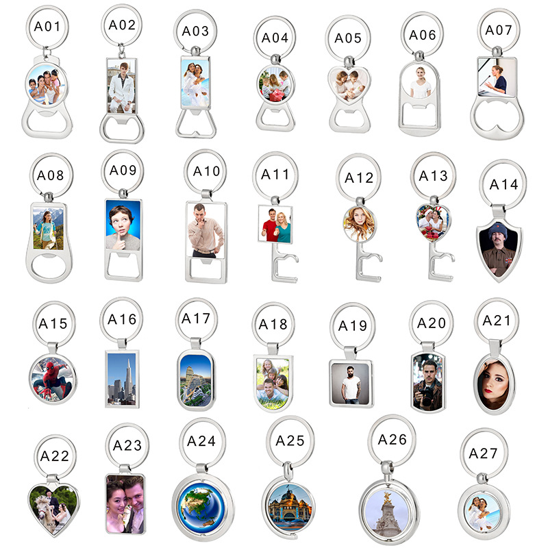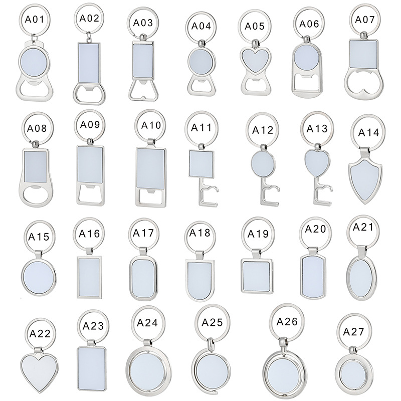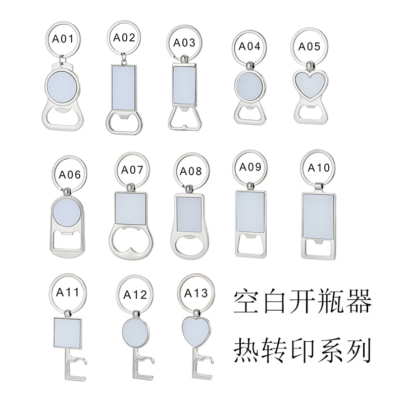 국경을 넘는 자동차 키 금속 병따개 블랭크 열전사 키체인 승화 장식품 DIY 패턴 로고