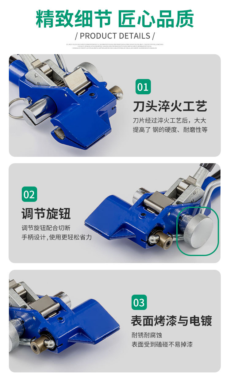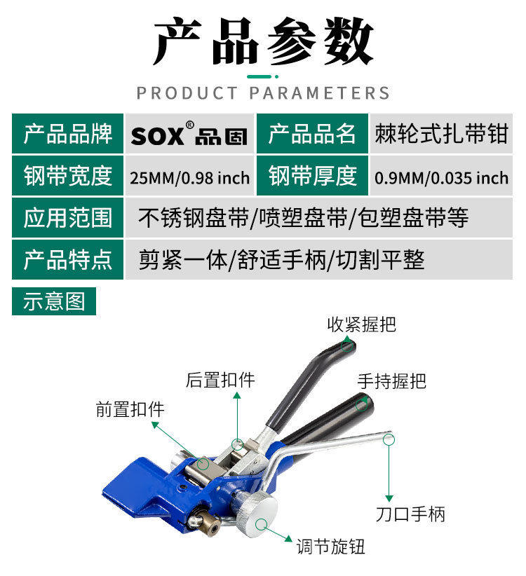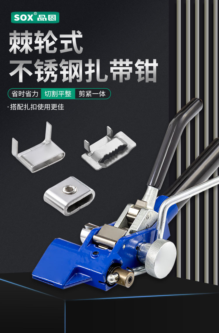 【产品应用】 适用于钢珠自锁式不锈钢扎带的紧固,收紧,切割