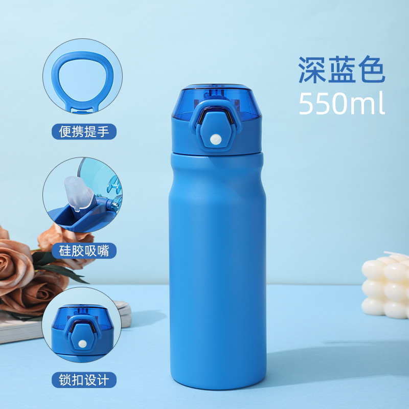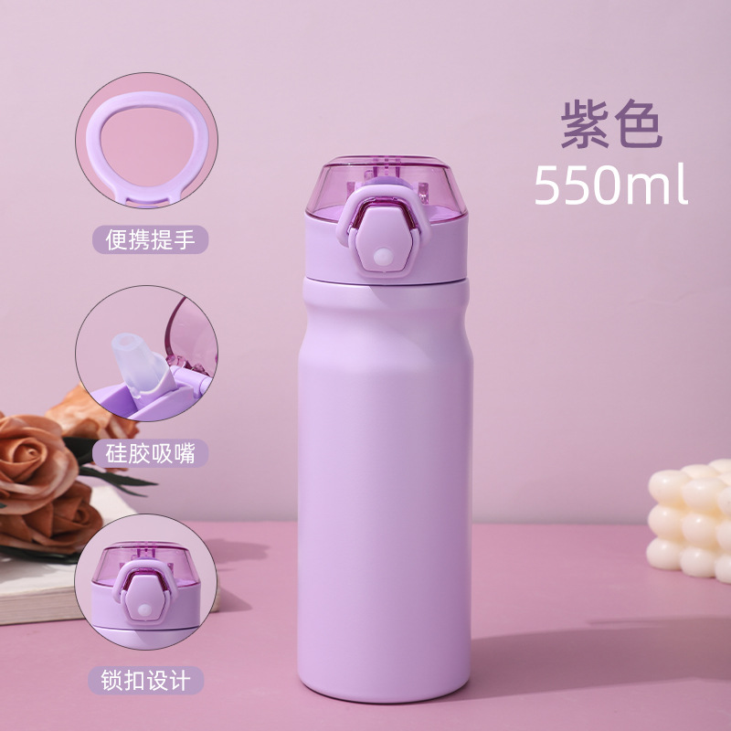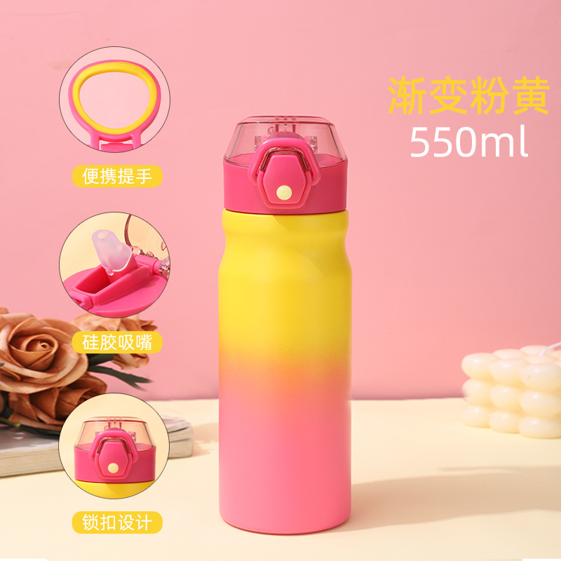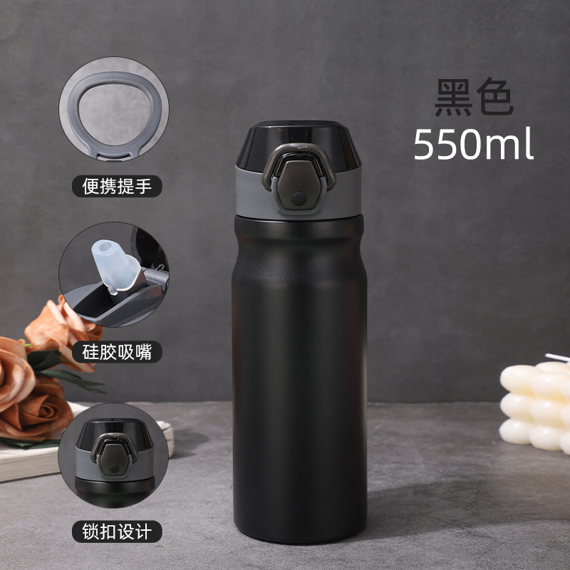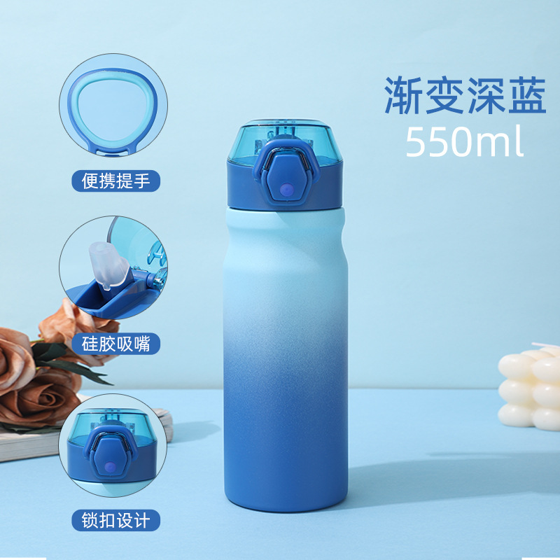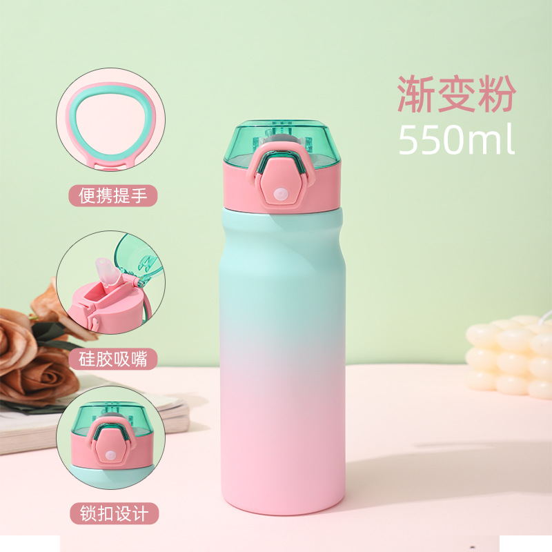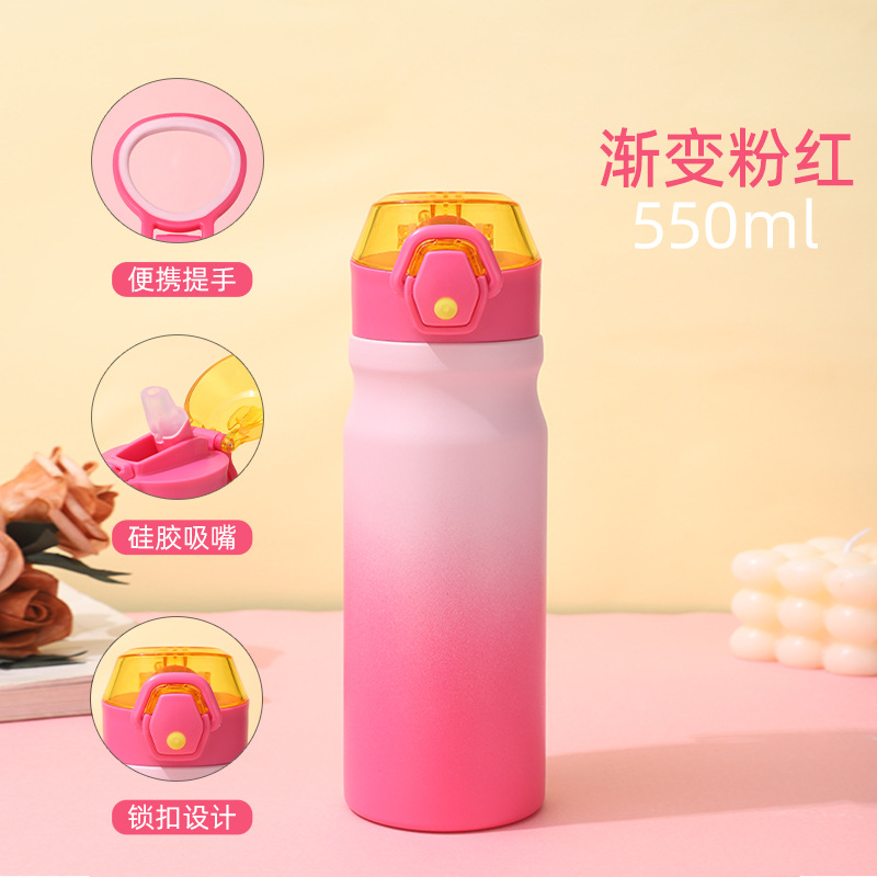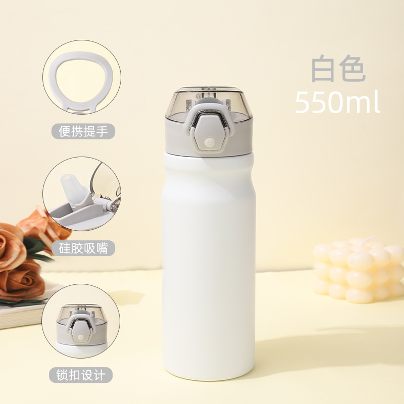 새로운 야외 스포츠 주전자 더블 레이어 304 스테인레스 스틸 공간 주전자 휴대용 대용량 밀짚 보온병 컵