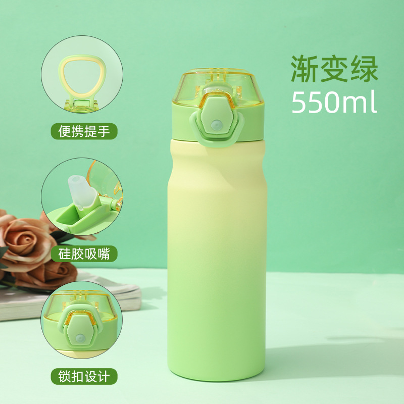 새로운 야외 스포츠 주전자 더블 레이어 304 스테인레스 스틸 공간 주전자 휴대용 대용량 밀짚 보온병 컵스토어 가기