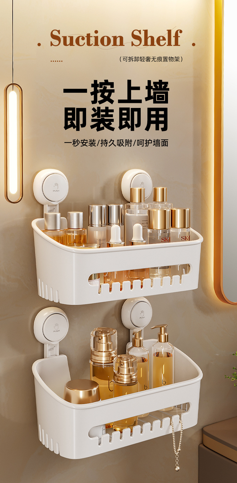 Taili 욕실 욕실 광장 저장 랙 흡입 컵 진공 펀치가없는 화장실 세면대 보관 랙스토어 가기