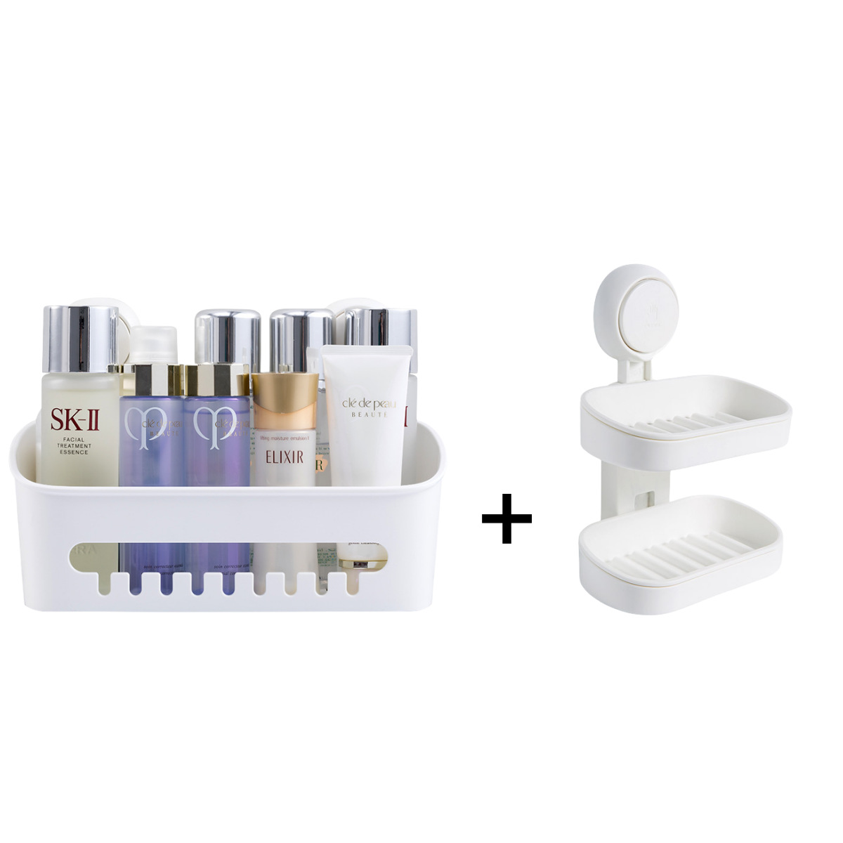 • 더블 욕실 슬리퍼 랙 * 1 흰색 유니버설 샤워 시트 * 1