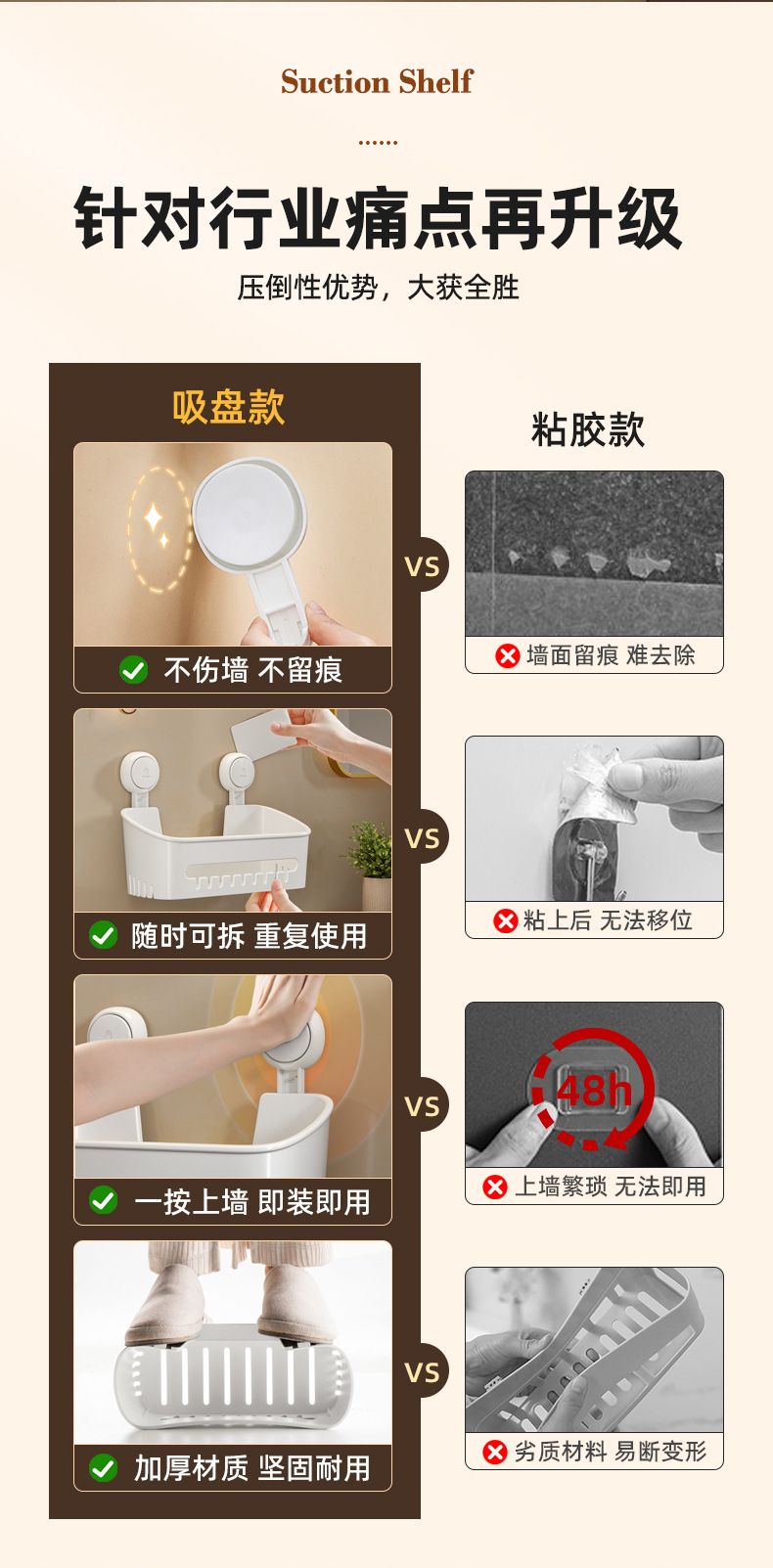 Taili 욕실 욕실 광장 저장 랙 흡입 컵 진공 펀치가없는 화장실 세면대 보관 랙