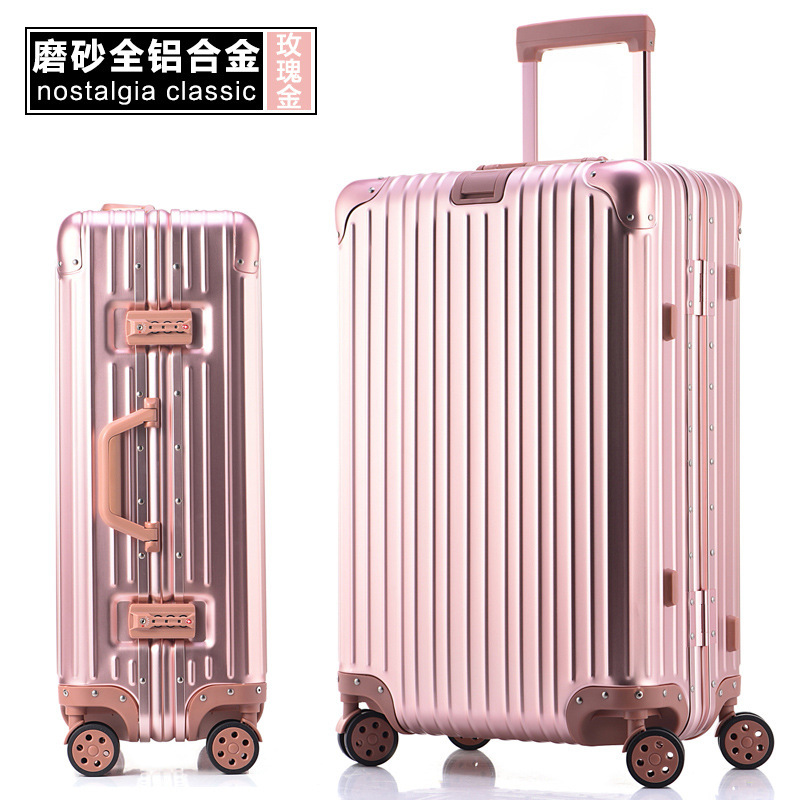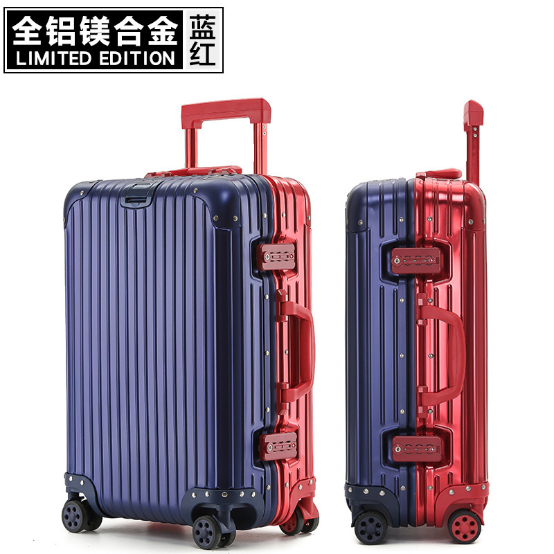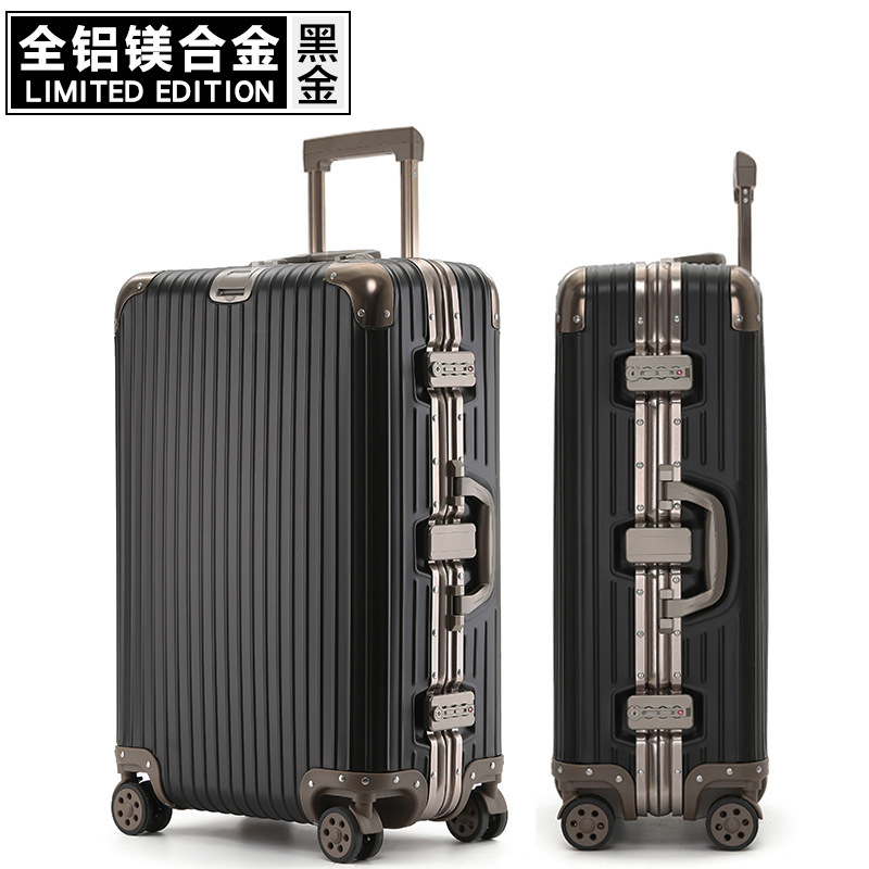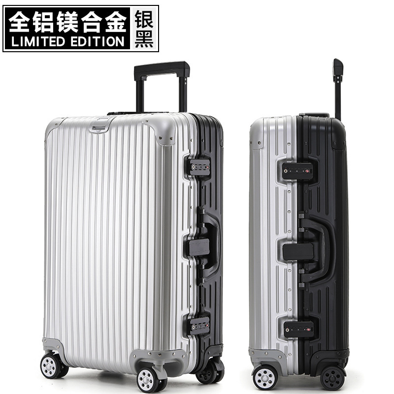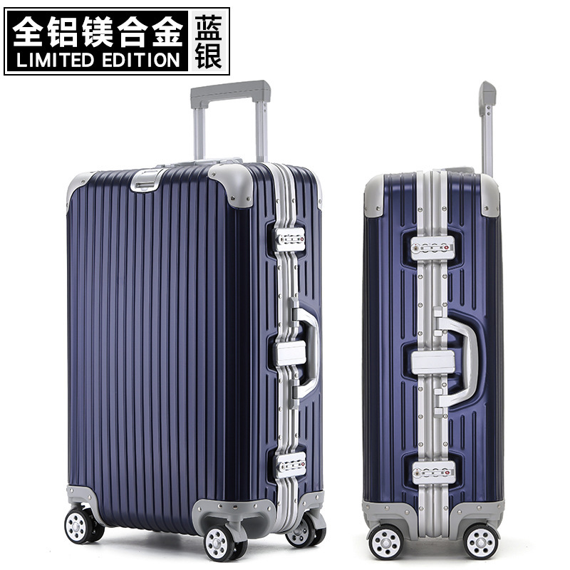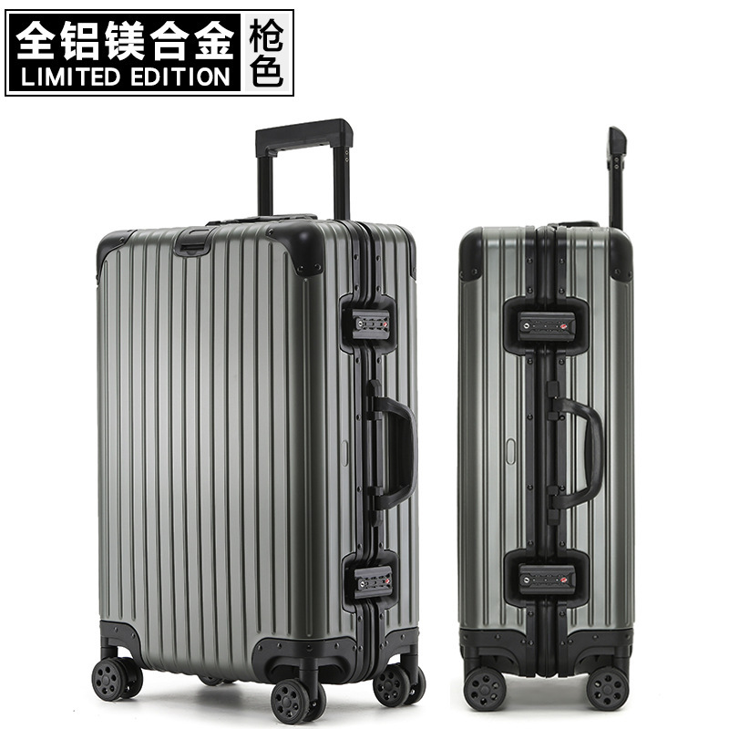 모든 알루미늄 마그네슘 합금 수하물 케이스 여성 유니버설 휠 20 인치 탑승 가방 남성 금속 가방 24 세대