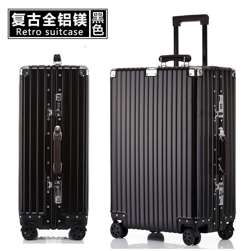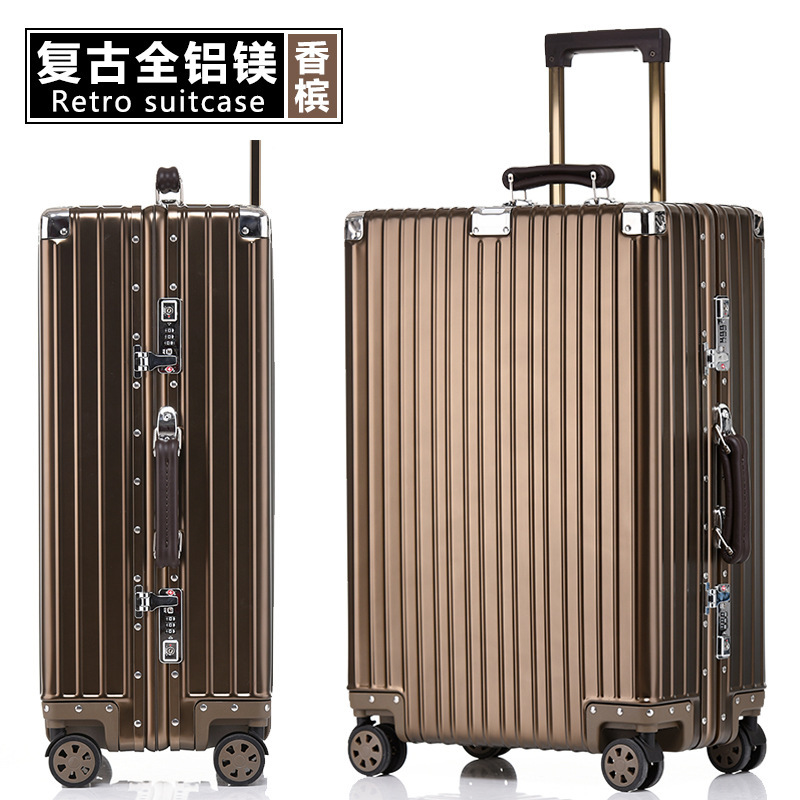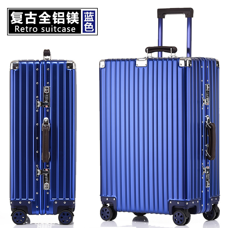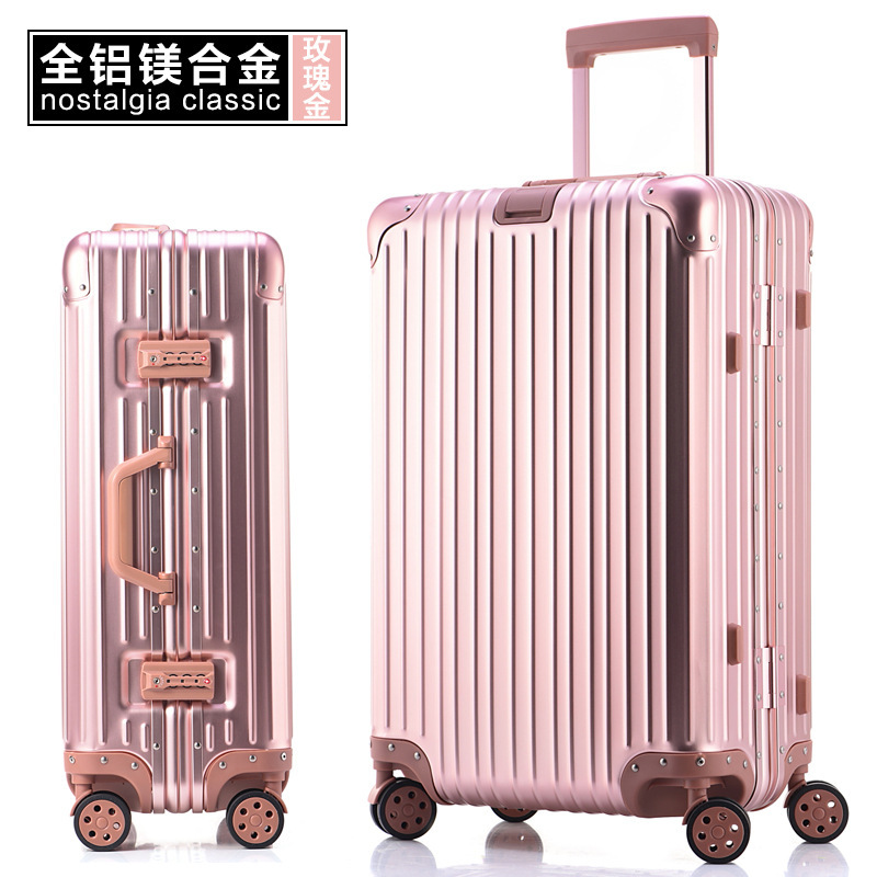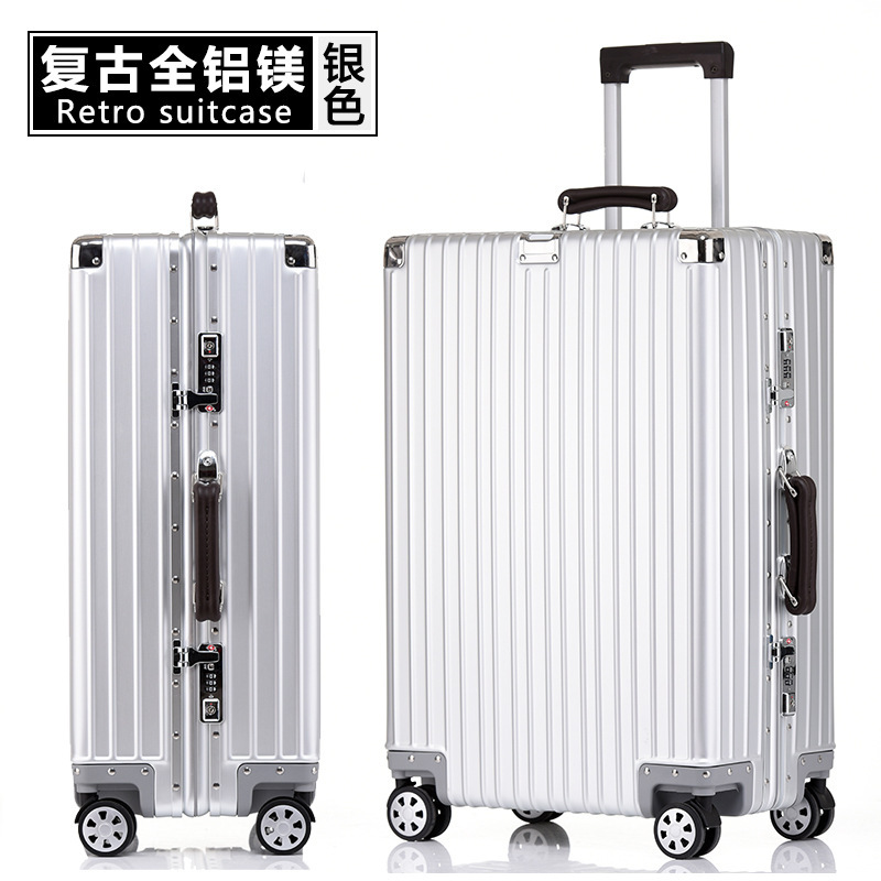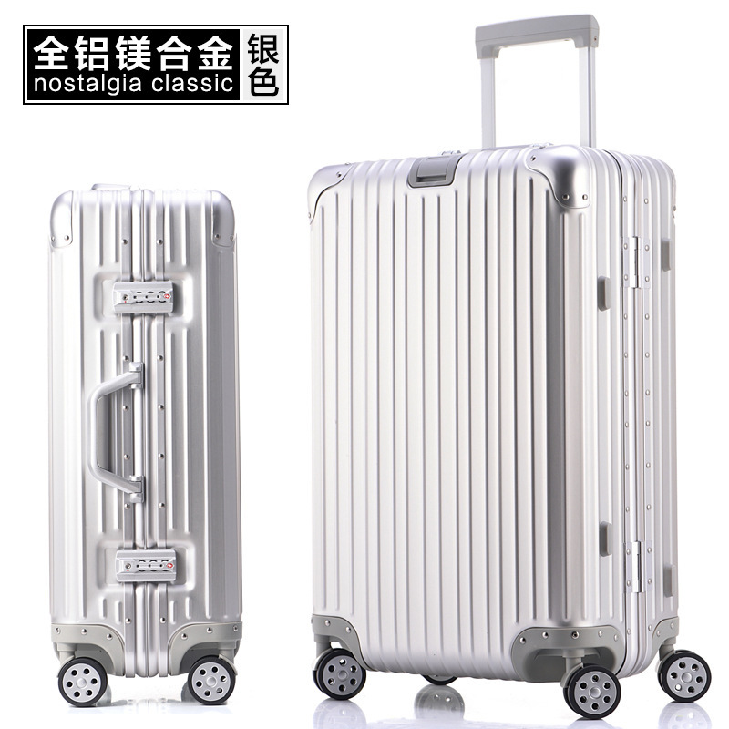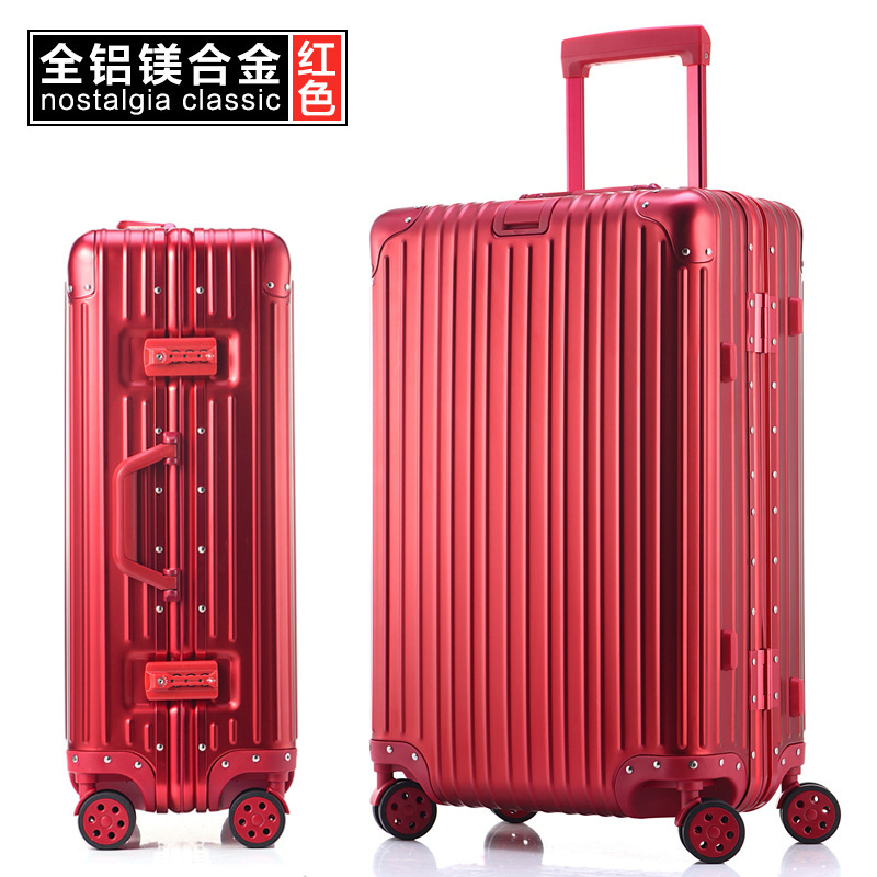 모든 알루미늄 마그네슘 합금 수하물 케이스 여성 유니버설 휠 20 인치 탑승 가방 남성 금속 가방 24 세대스토어 가기