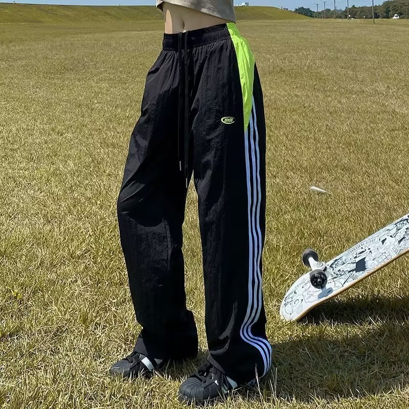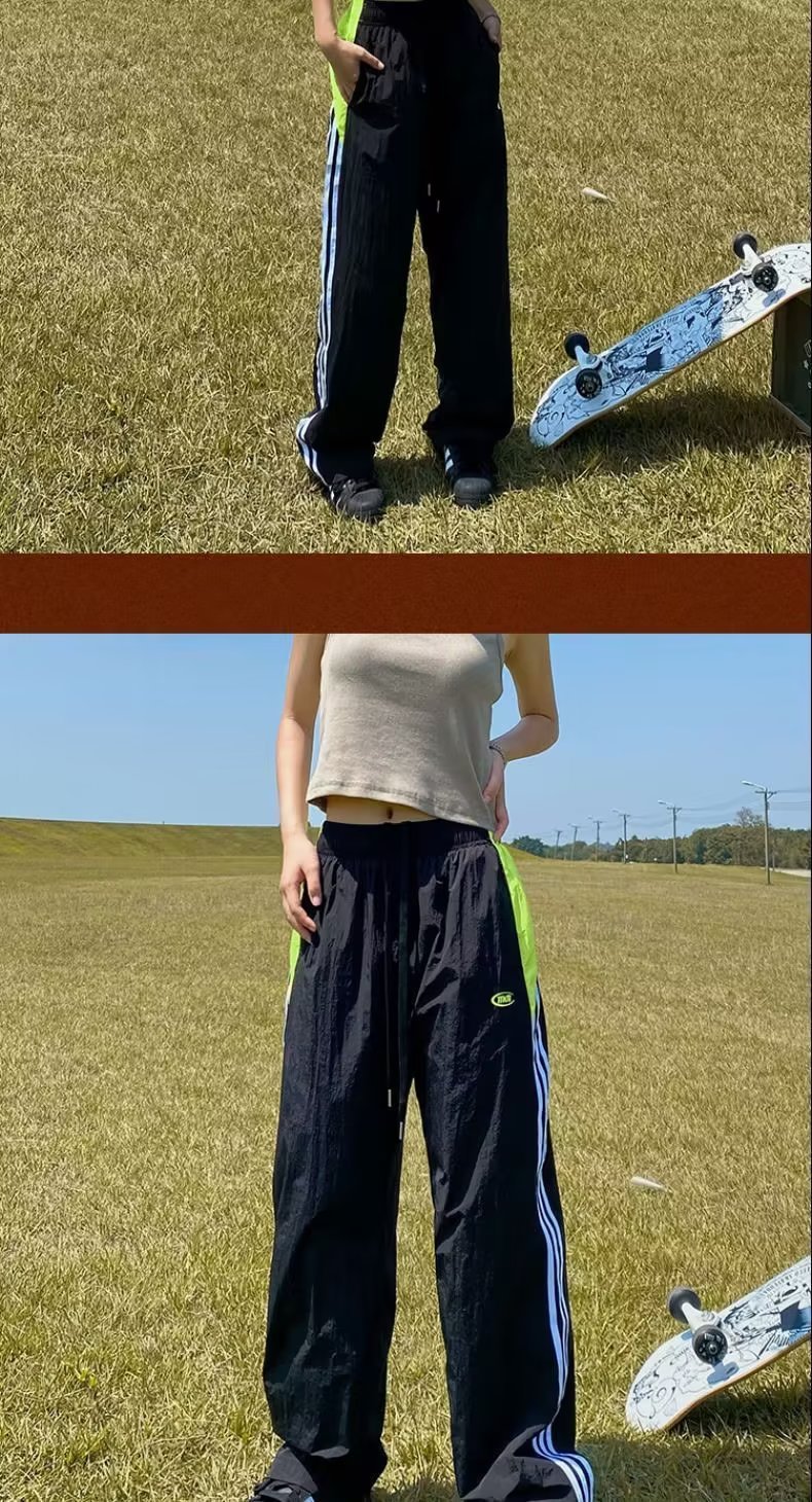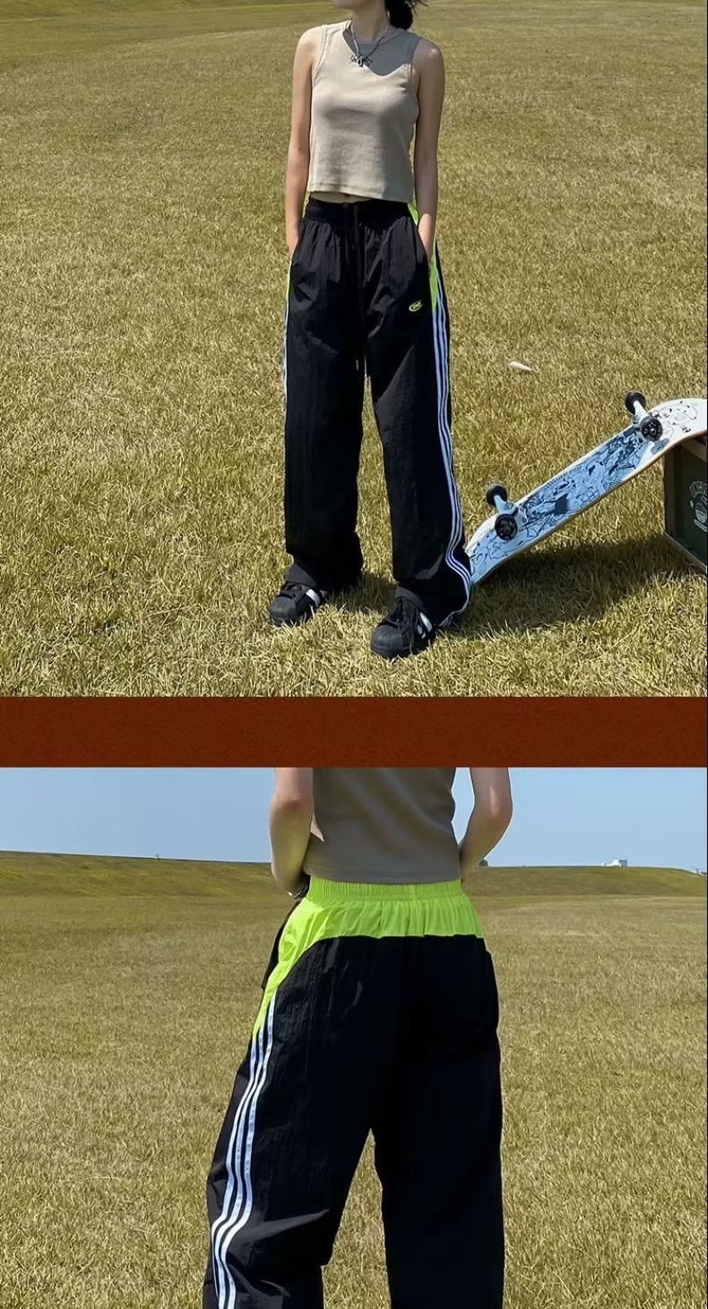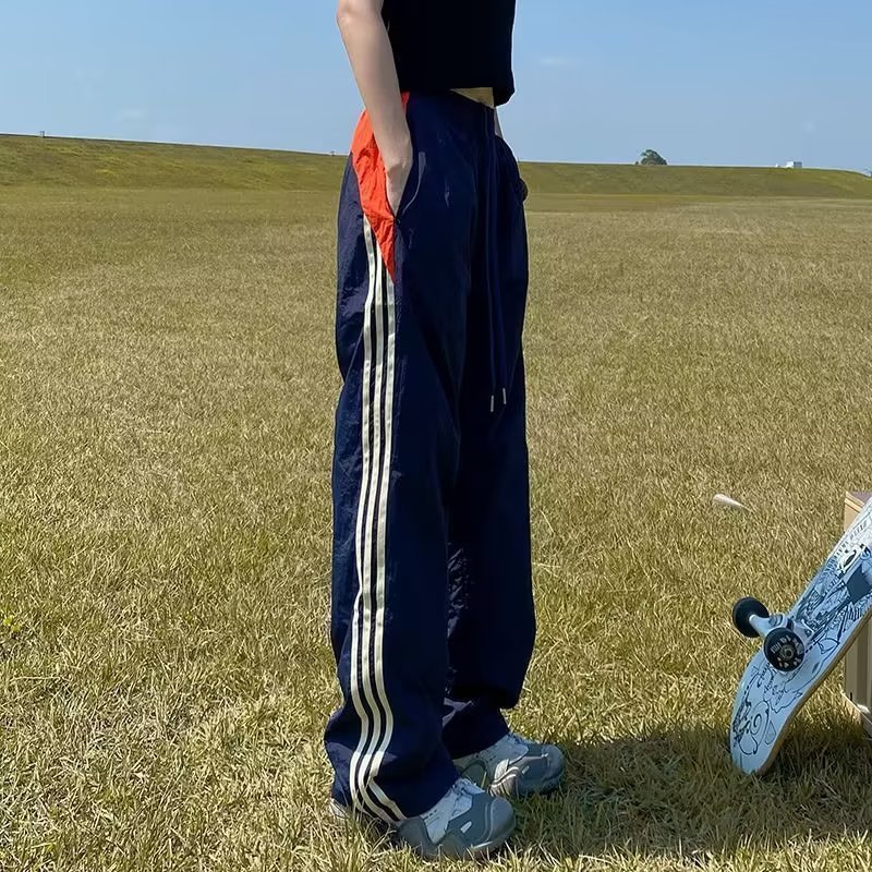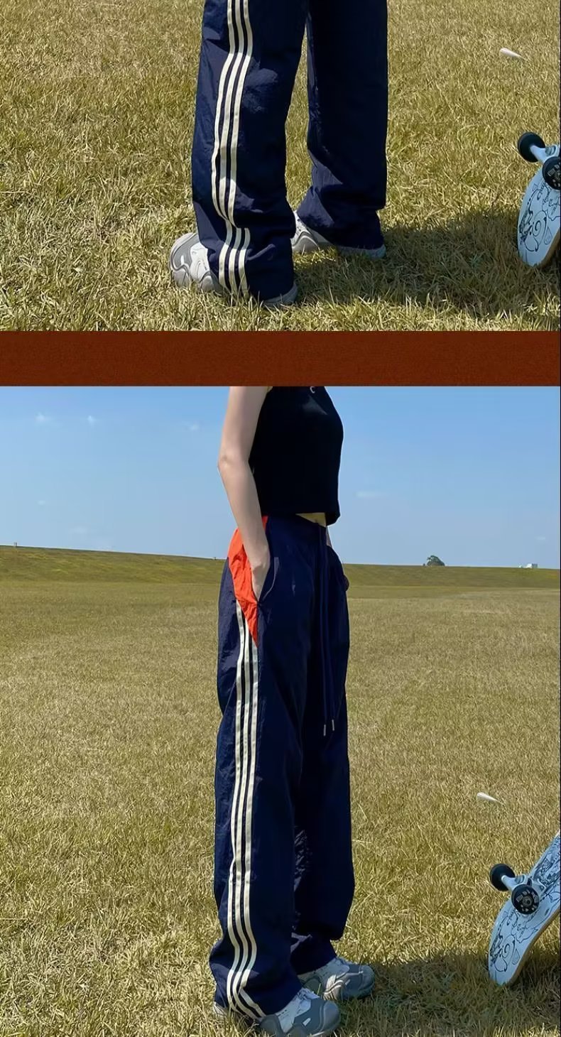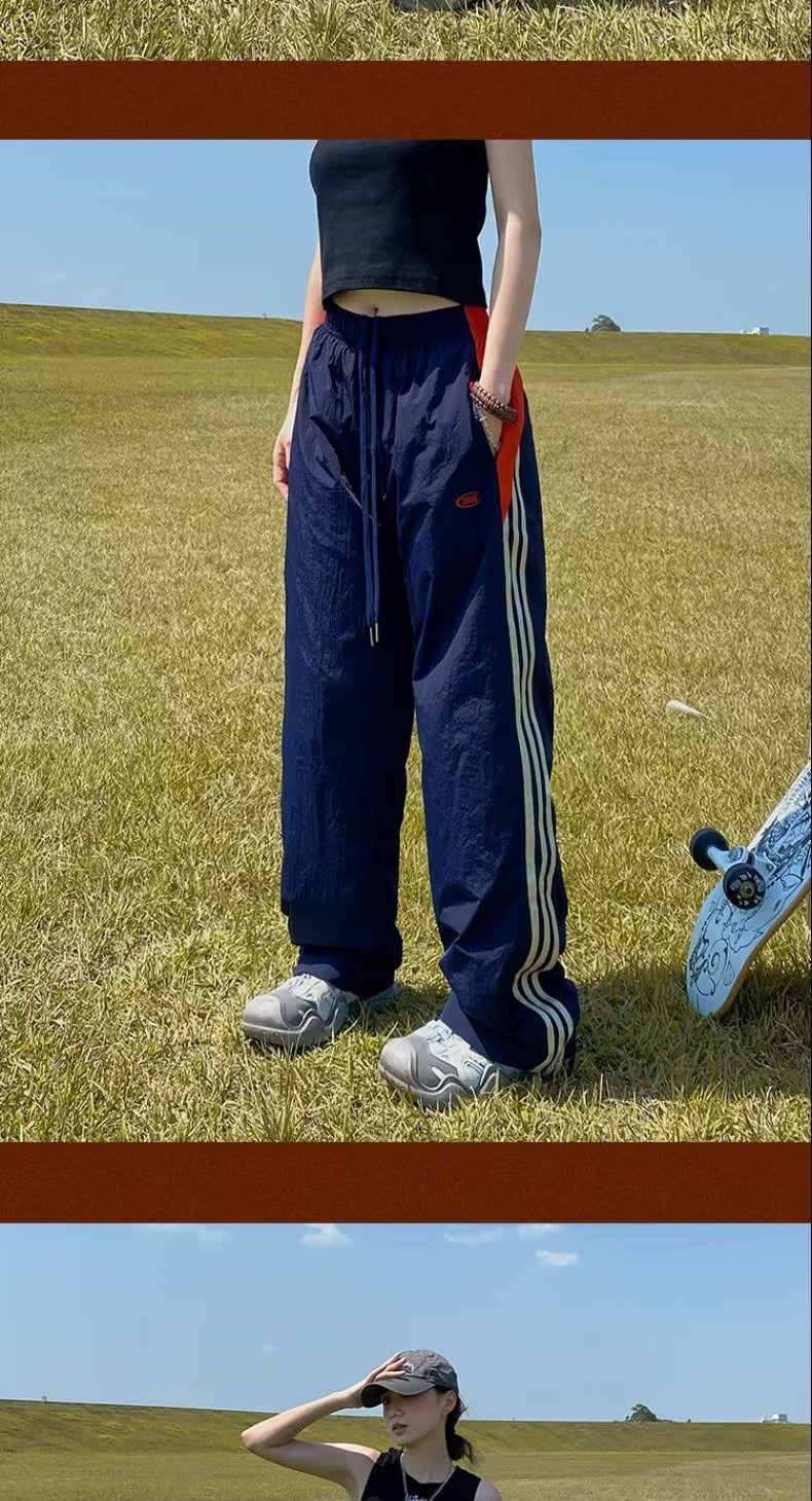 아메리칸 스타일 레트로 컬러 스트라이프 스포츠 러쉬 팬츠 남자 여름 Ns 스트리트 루즈 캐주얼 낙하산 선수 스트레이트 롱 팬츠스토어 가기