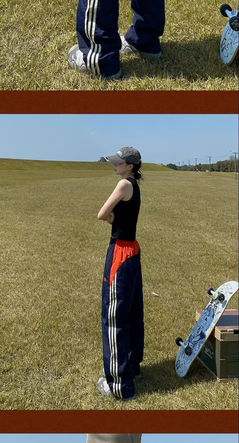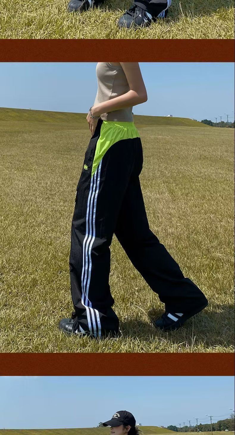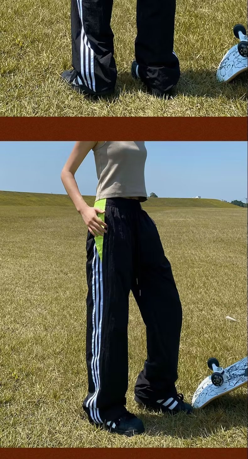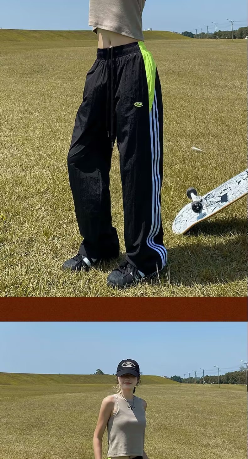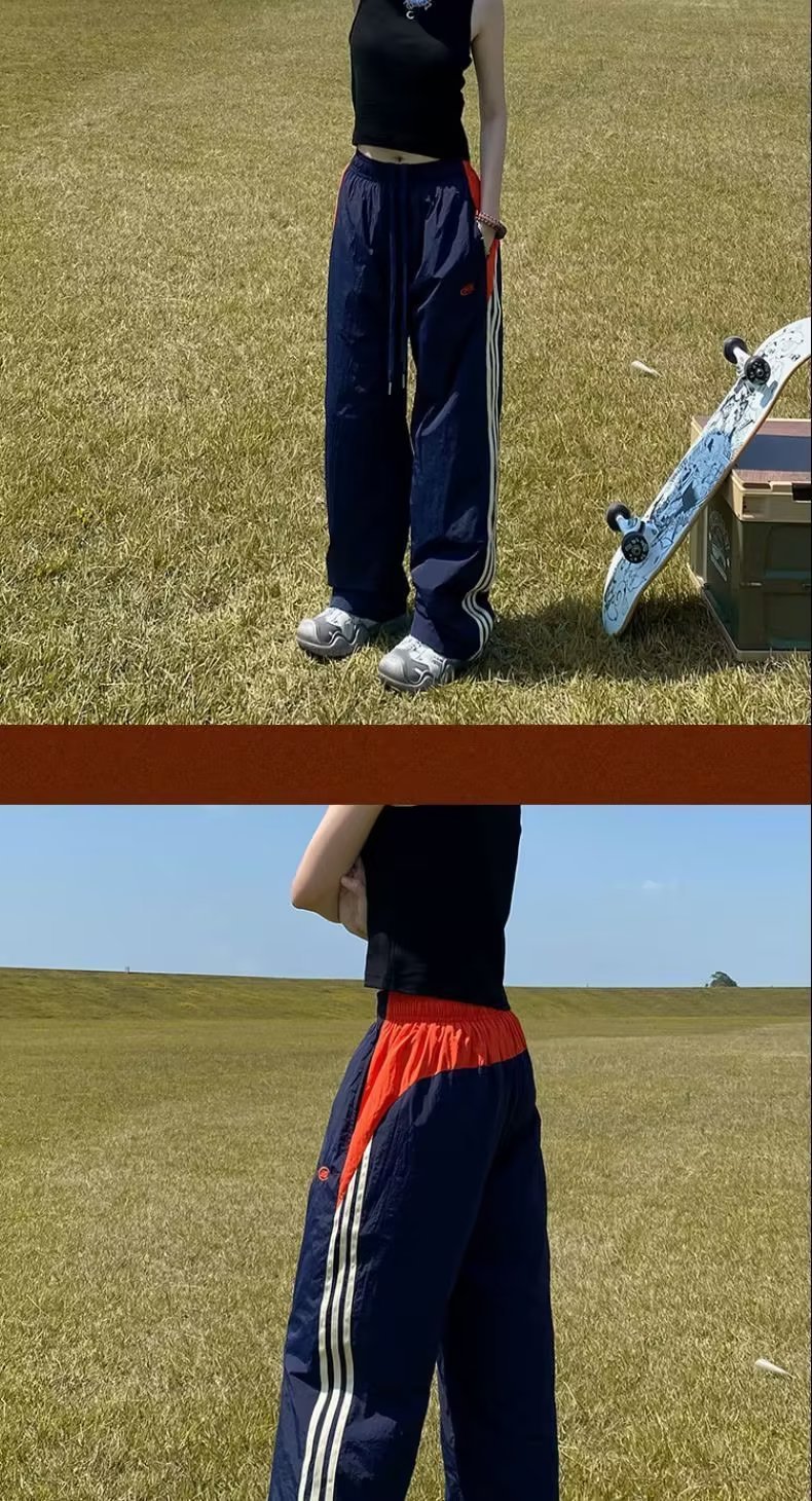 아메리칸 스타일 레트로 컬러 스트라이프 스포츠 러쉬 팬츠 남자 여름 Ns 스트리트 루즈 캐주얼 낙하산 선수 스트레이트 롱 팬츠스토어 가기