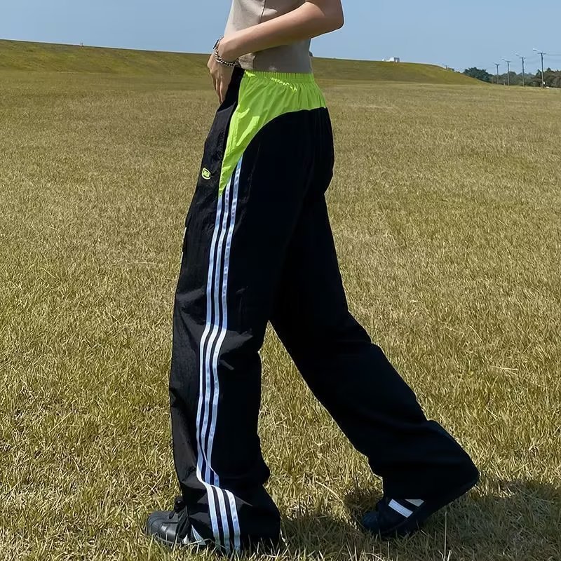 아메리칸 스타일 레트로 컬러 스트라이프 스포츠 러쉬 팬츠 남자 여름 Ns 스트리트 루즈 캐주얼 낙하산 선수 스트레이트 롱 팬츠