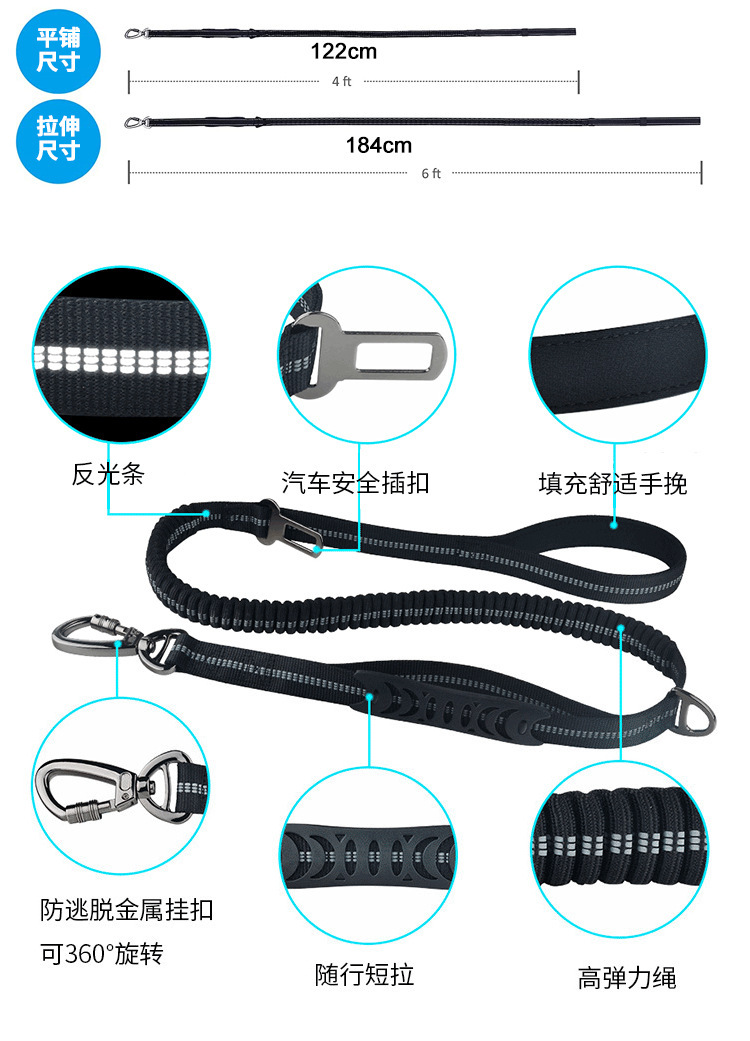 애완 동물 개 자동차 안전 벨트 견인 로프 버퍼 탄성 반사 안전 견인 애완 동물 용품