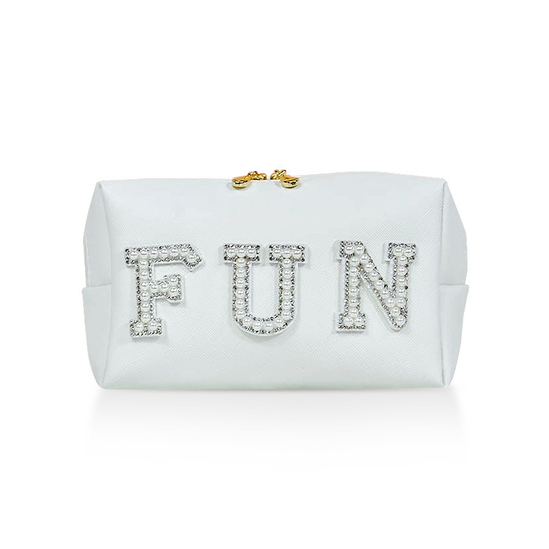 국경 간 뜨거운 판매 PU 화이트 펄 화장품 가방 높은 색상 가치 메이크업 여성 손 가방 여행 휴대용 방수 보관 가방