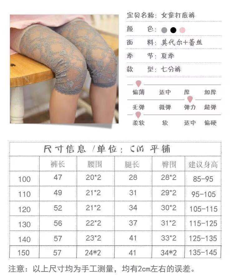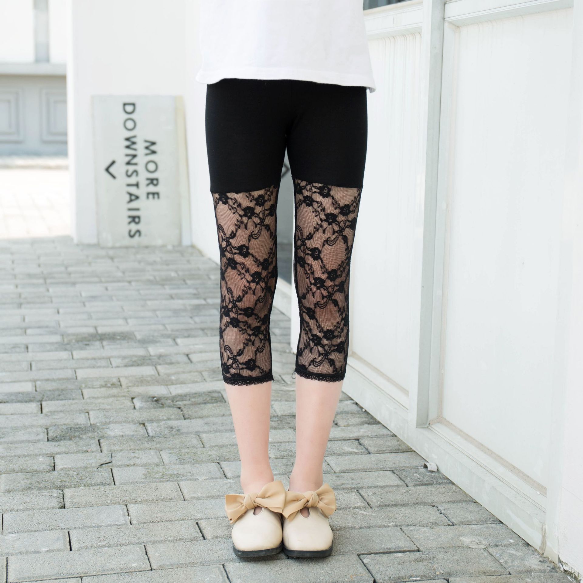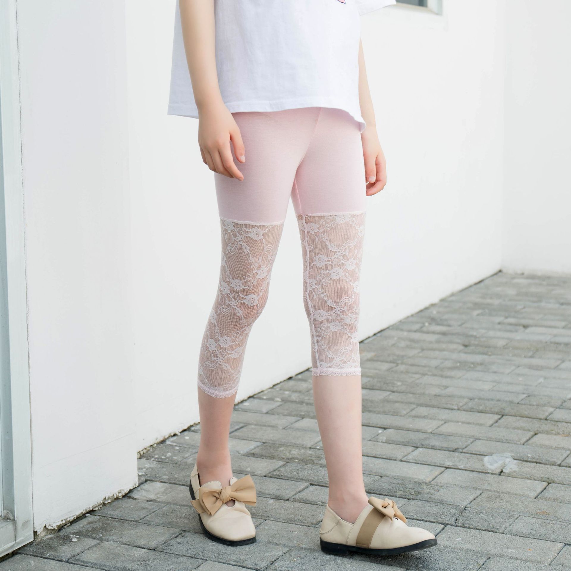 봄과 여름 소녀 레이스 크롭 바지 얇은 귀여운 아름다운 모달 레이스 대형 어린이 레깅스 도매스토어 가기