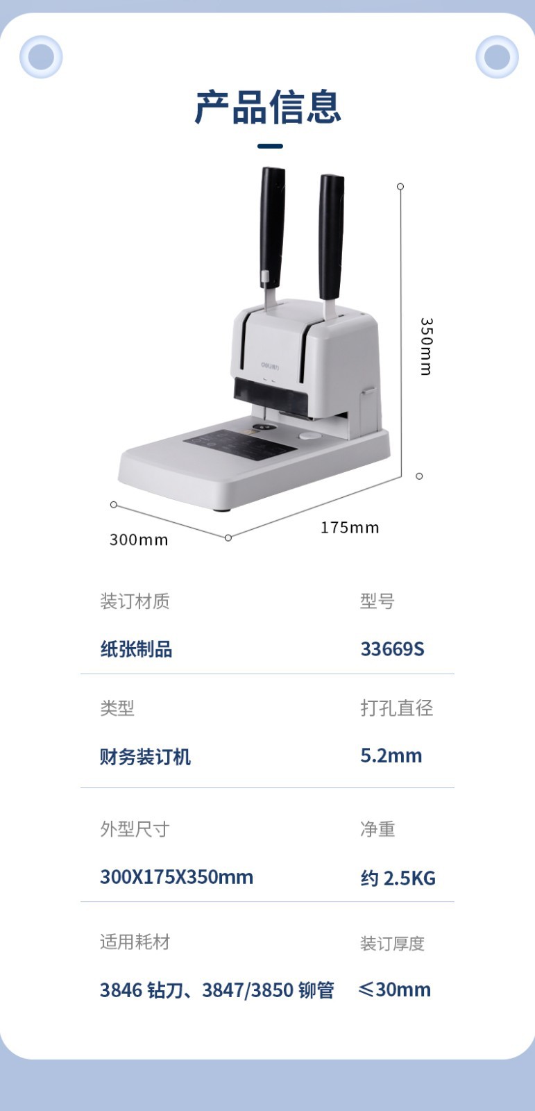 델리 33669S 금융 바우처 바인딩 머신 회계 아카이브 사무실 홈 수동 펀칭 머신 완전 자동 핫 멜트